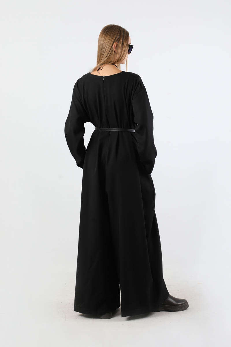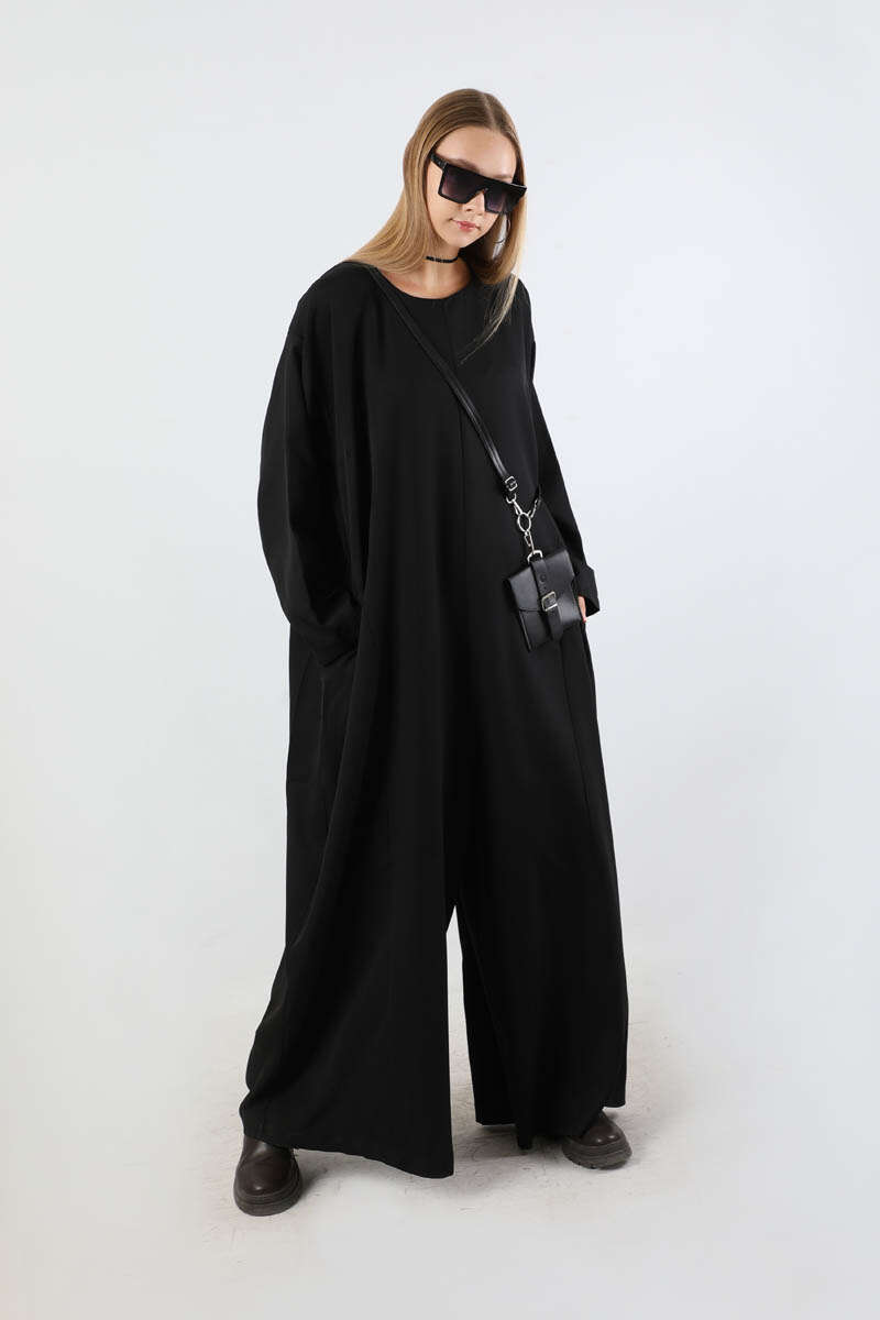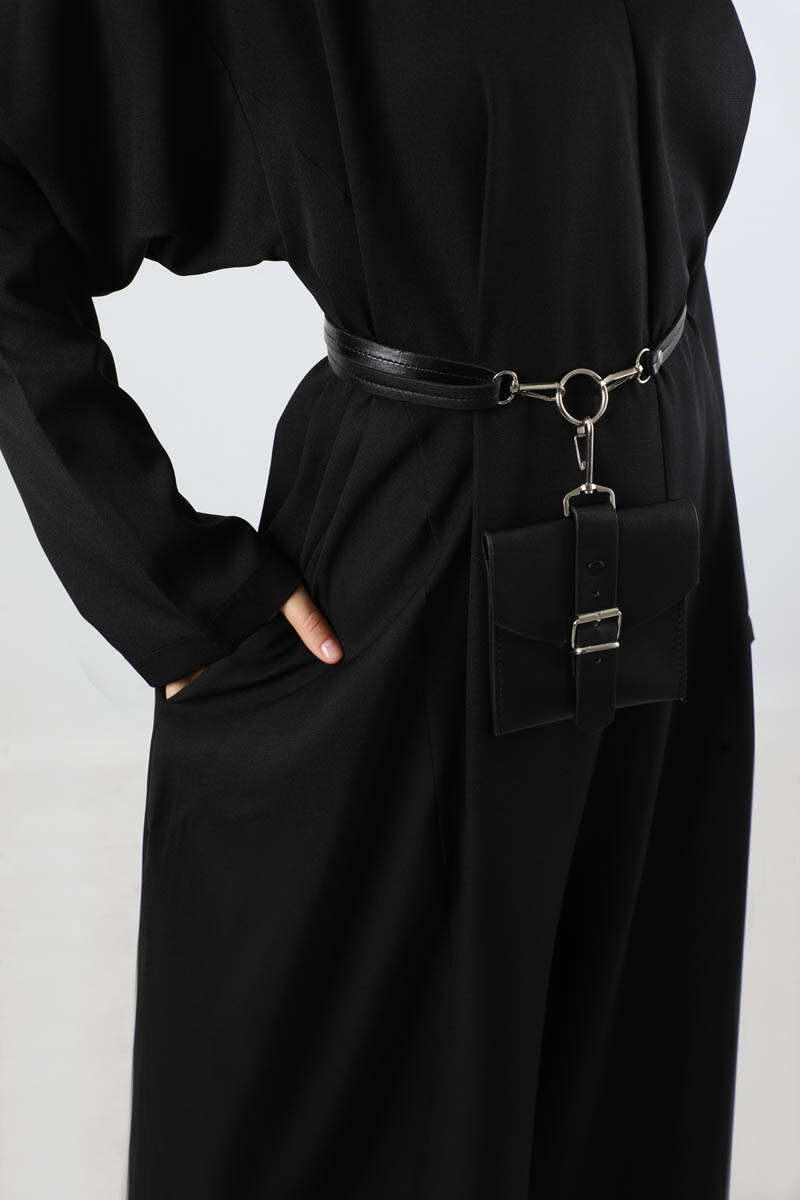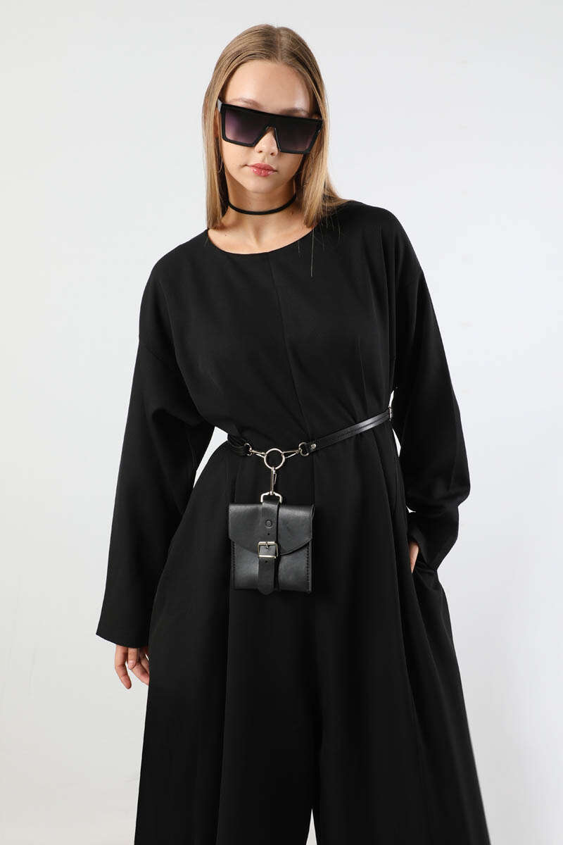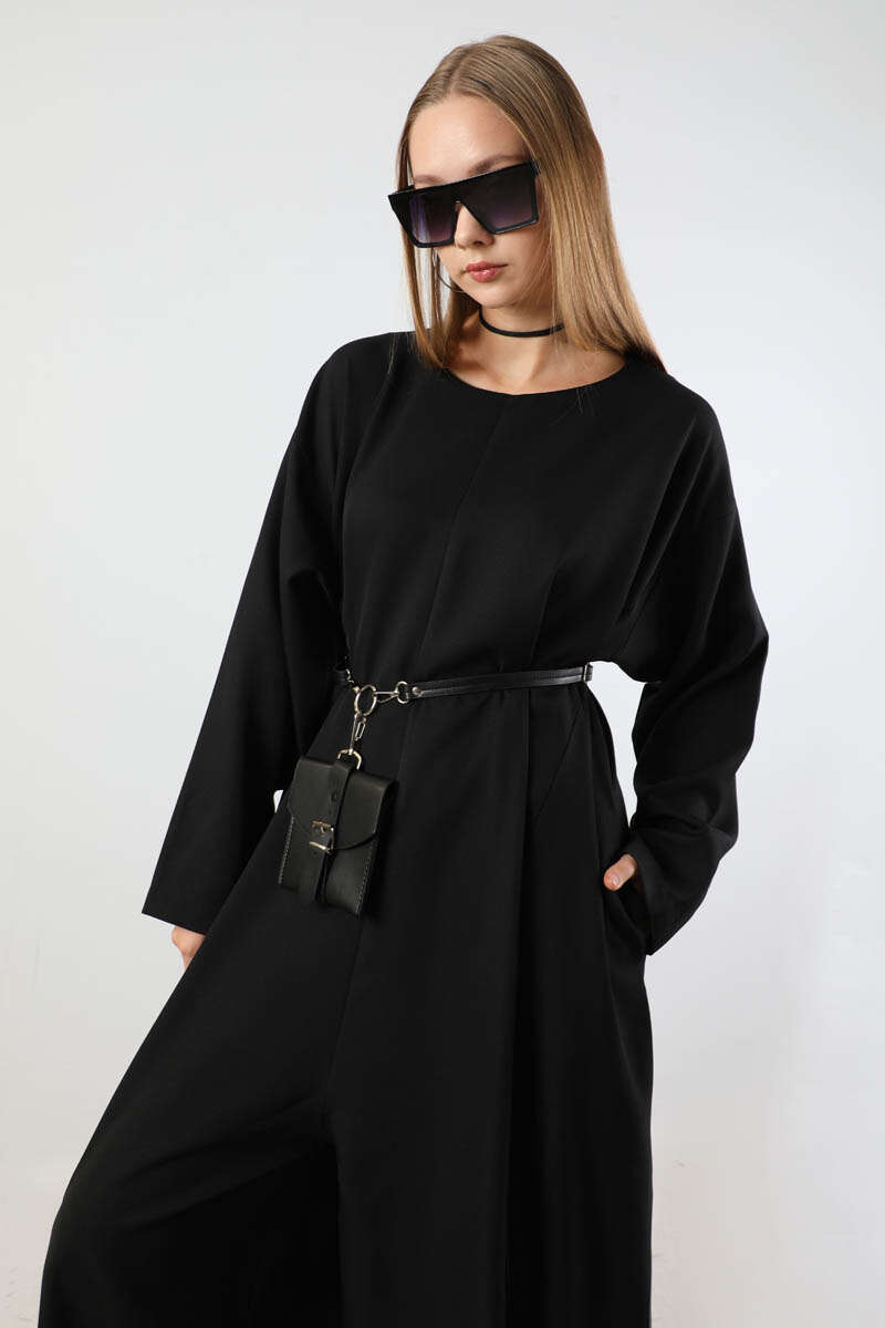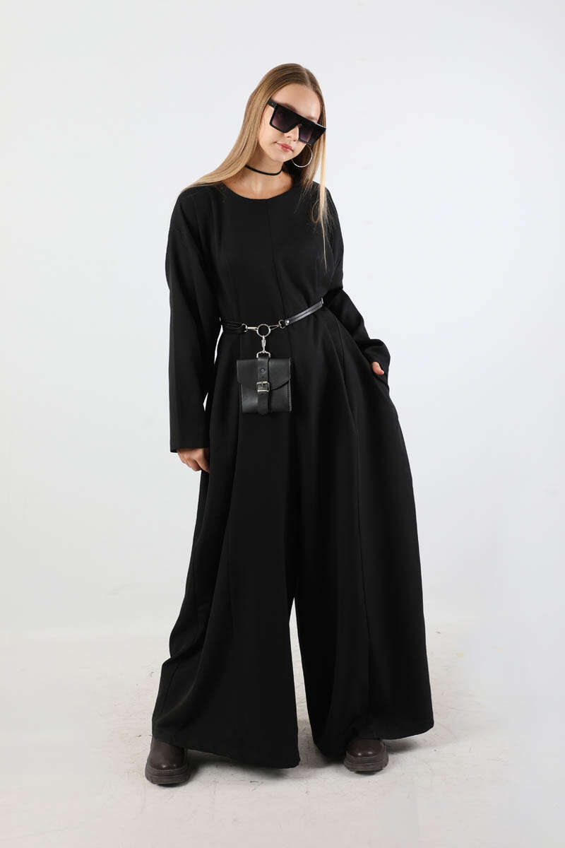 Çanta Aksesuarlı Oversize Tulum Siyah. Salaş paçalıdır. Düşük omuzludur. Yandan ceplidir. Bisiklet yakalıdır. Arkadan fermuarlıdır. Çanta Aksesuar Kemer detaylıdır. Günlük kullanım ve özel günlerinizde tercih edebilirsiniz.