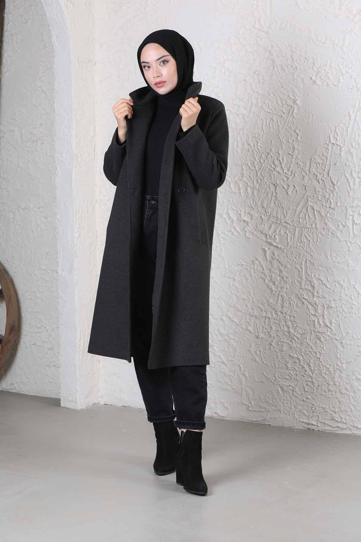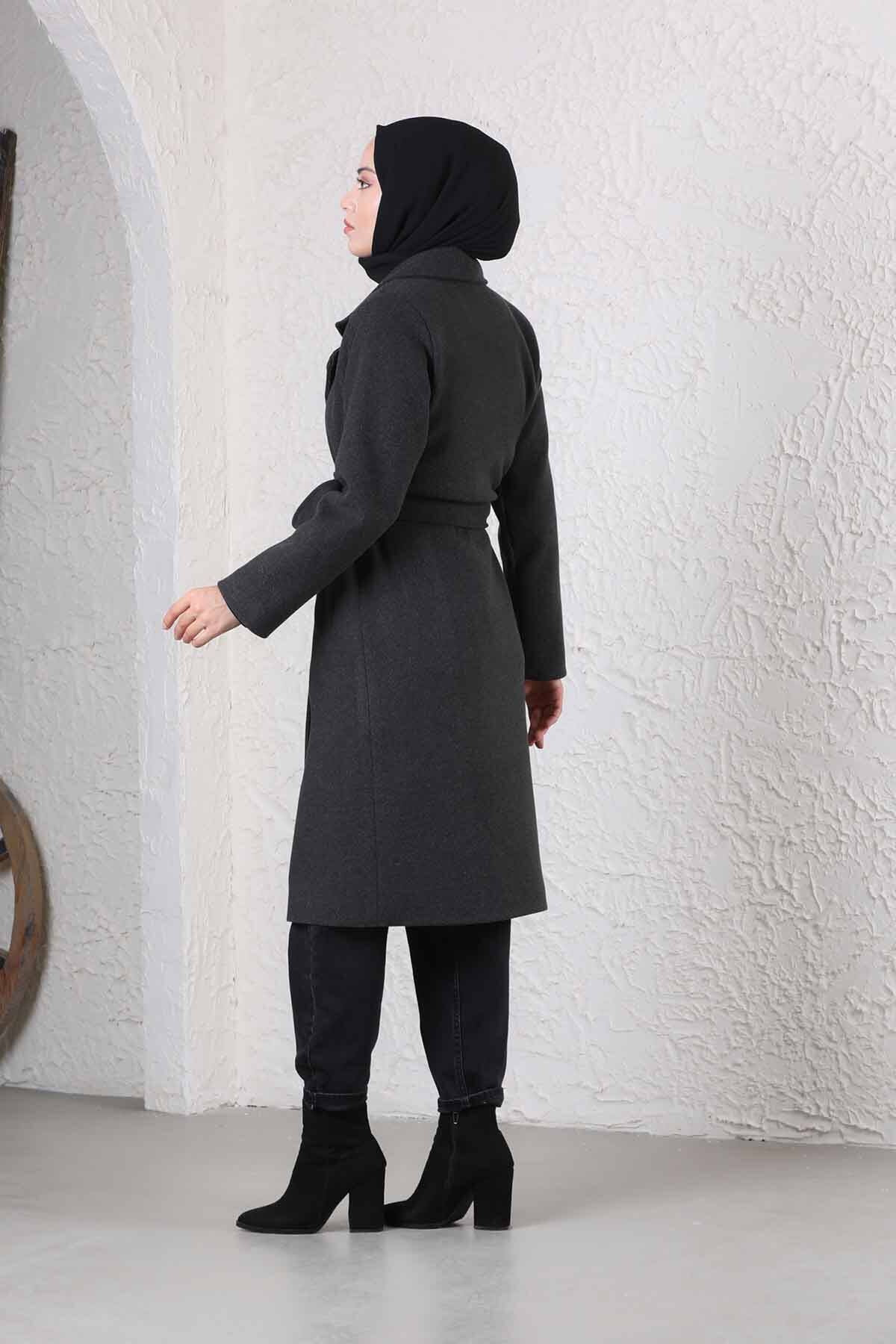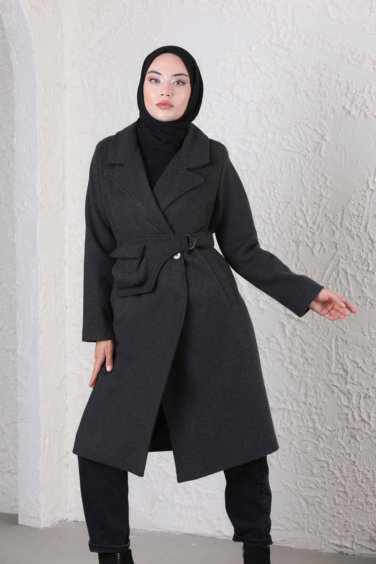 Çantalı Kaşe Kaban Füme