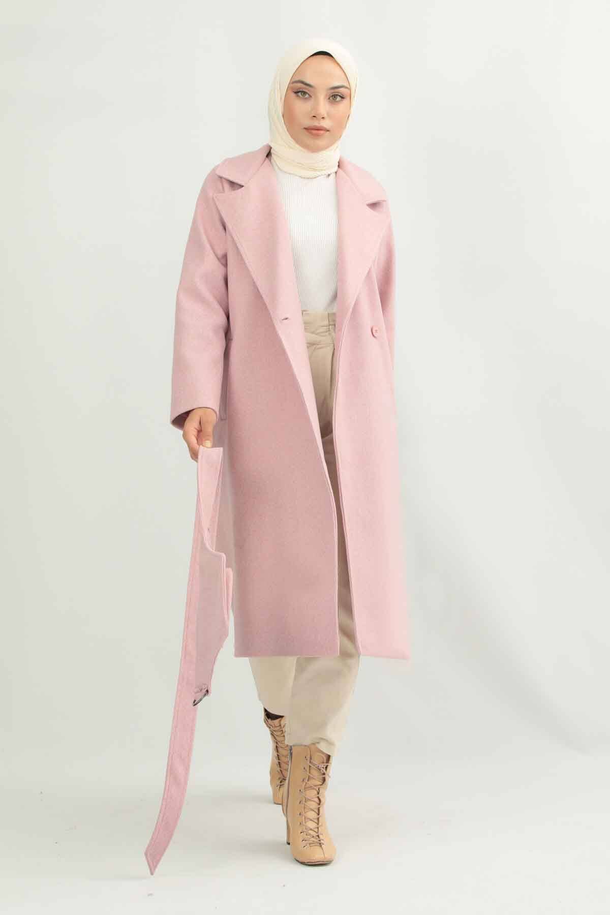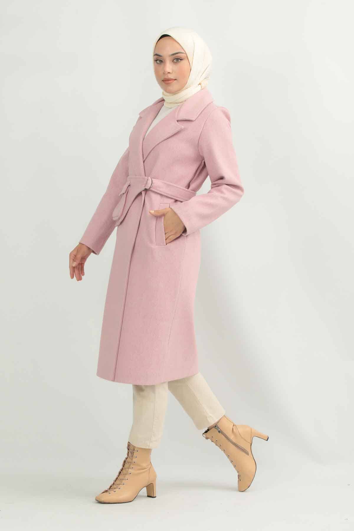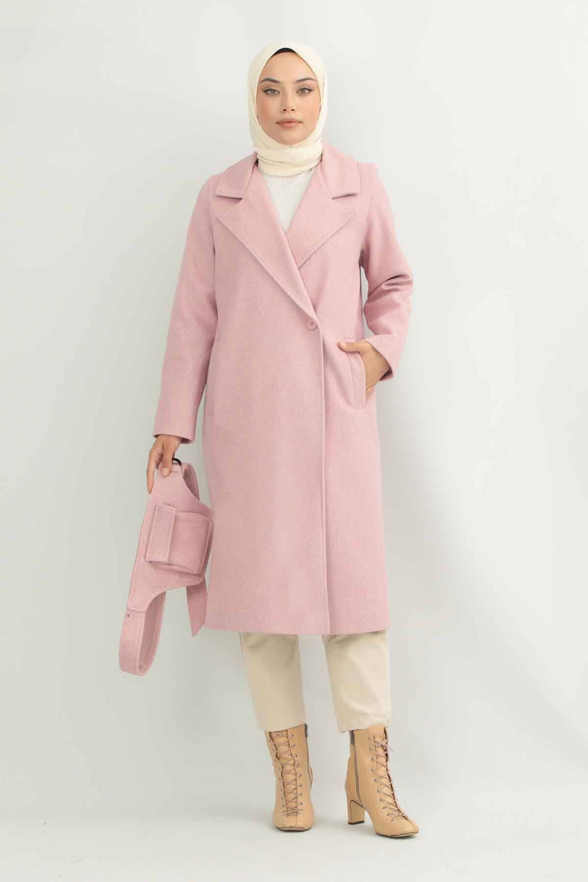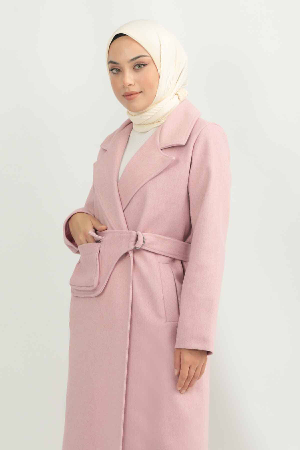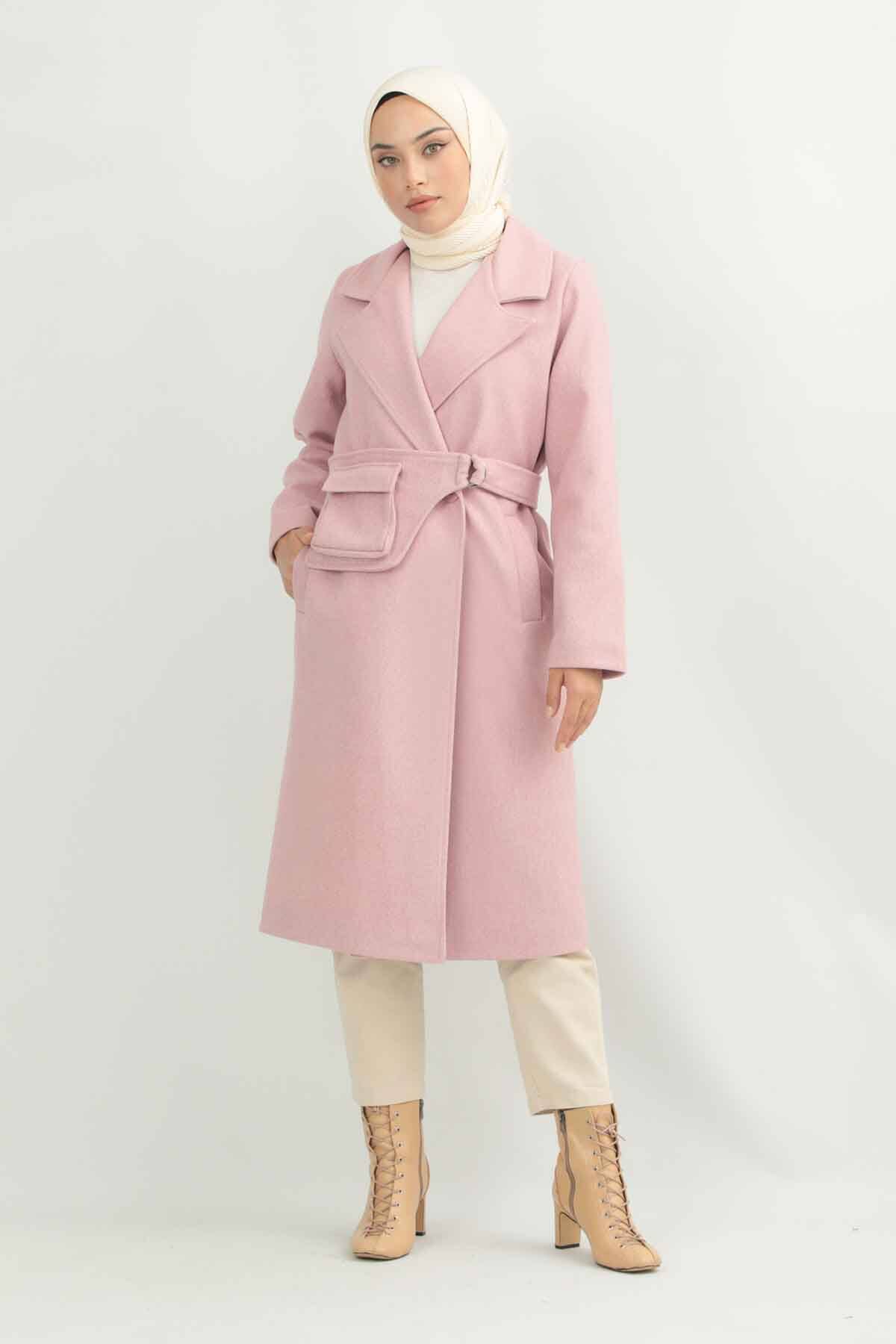 Çantalı Kaşe Kaban Pembe. Seyyar çanttalı kemeri mevcuttu, telefon cüzdan için koymak için uygun ve rahattır. Astarlıdır. Yandan iki cebi bulunmaktadır. Kruvaze kapamadır.