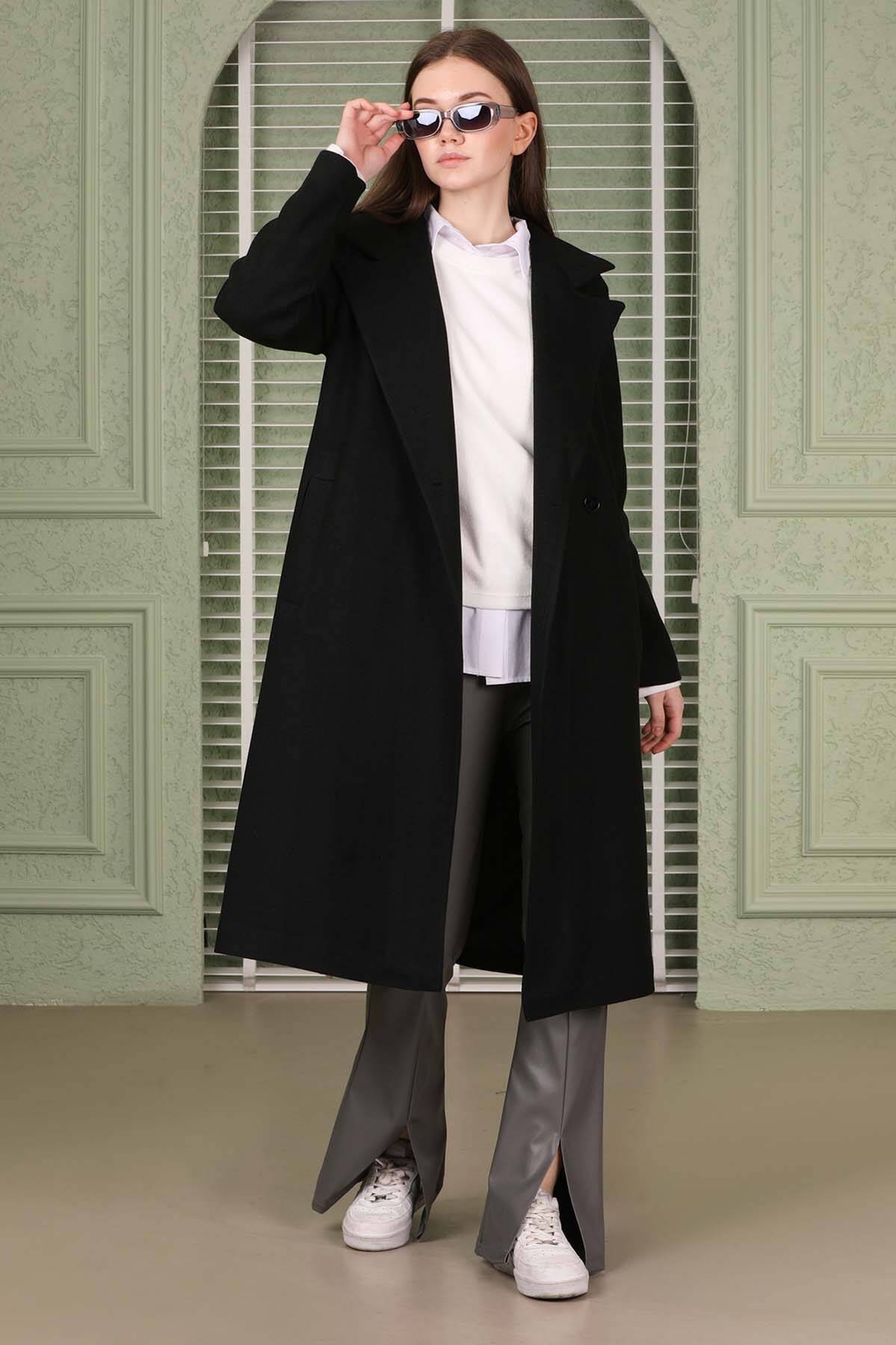 Çantalı Kaşe Kaban Siyah