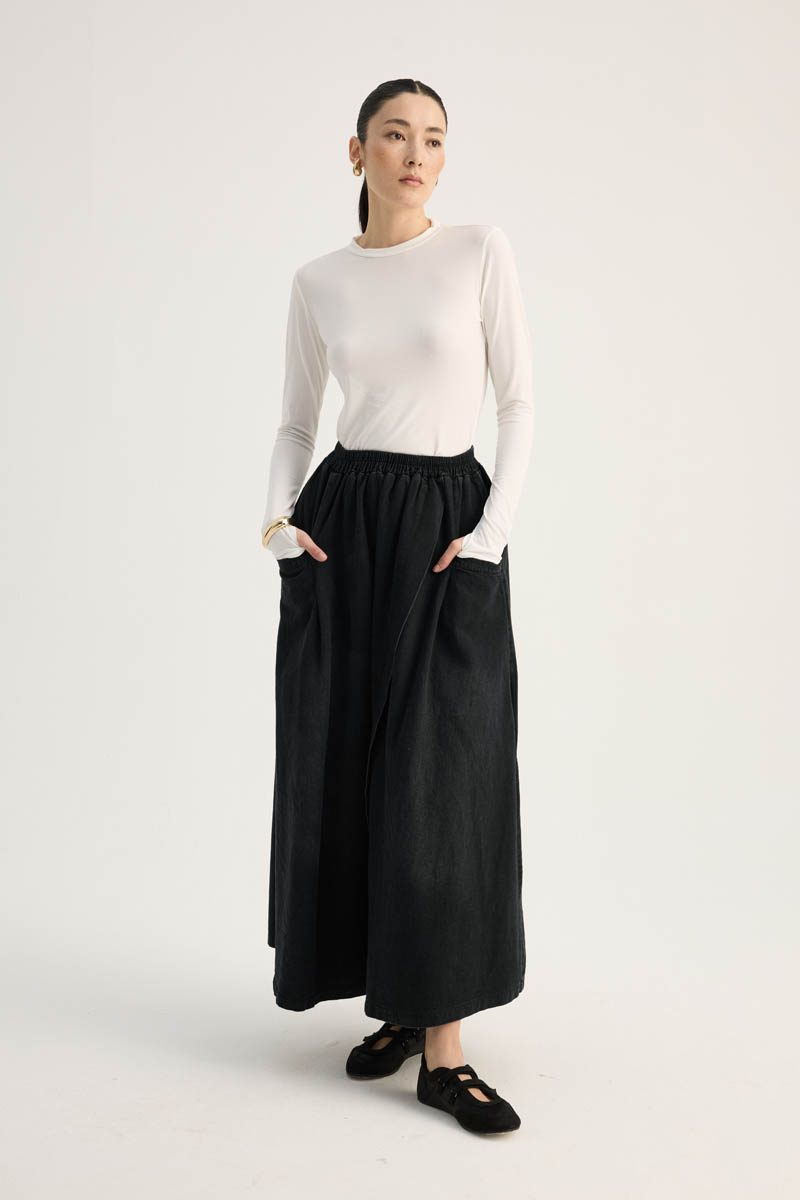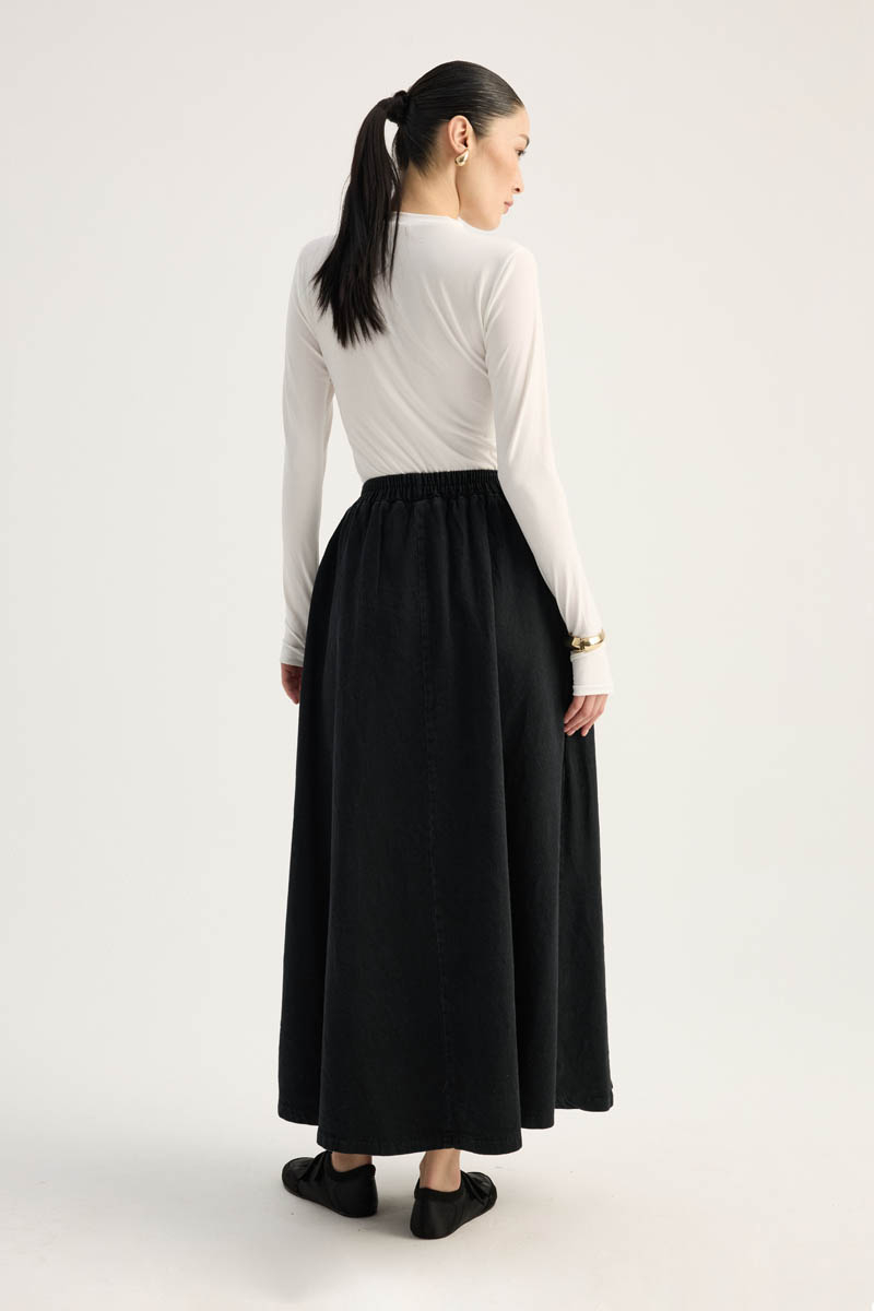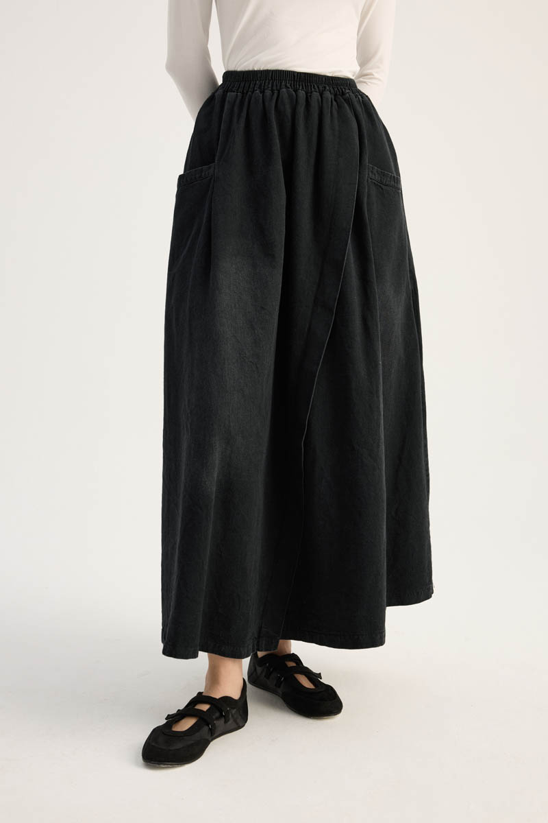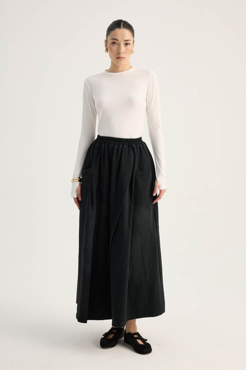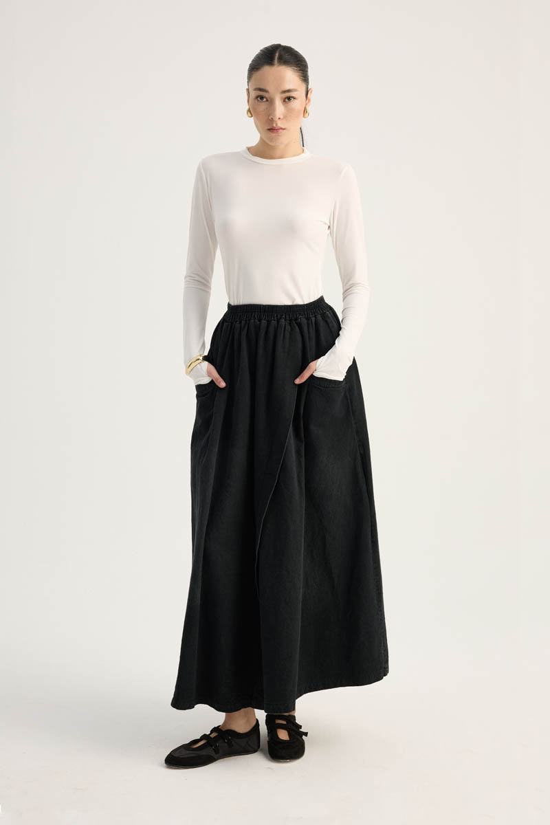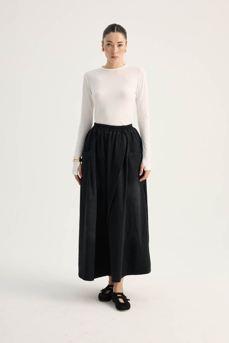 Çapraz Detaylı Denim Etek Siyah. Yüksek beldir, eteği çapraz parça detaylıdır, Verev dikişli beli lastiklidir, yandan ceplidir, fermuarsızdır, astarsızdır. Günlük kullanım ve özel günlerinizde tercih edebilirsiniz.