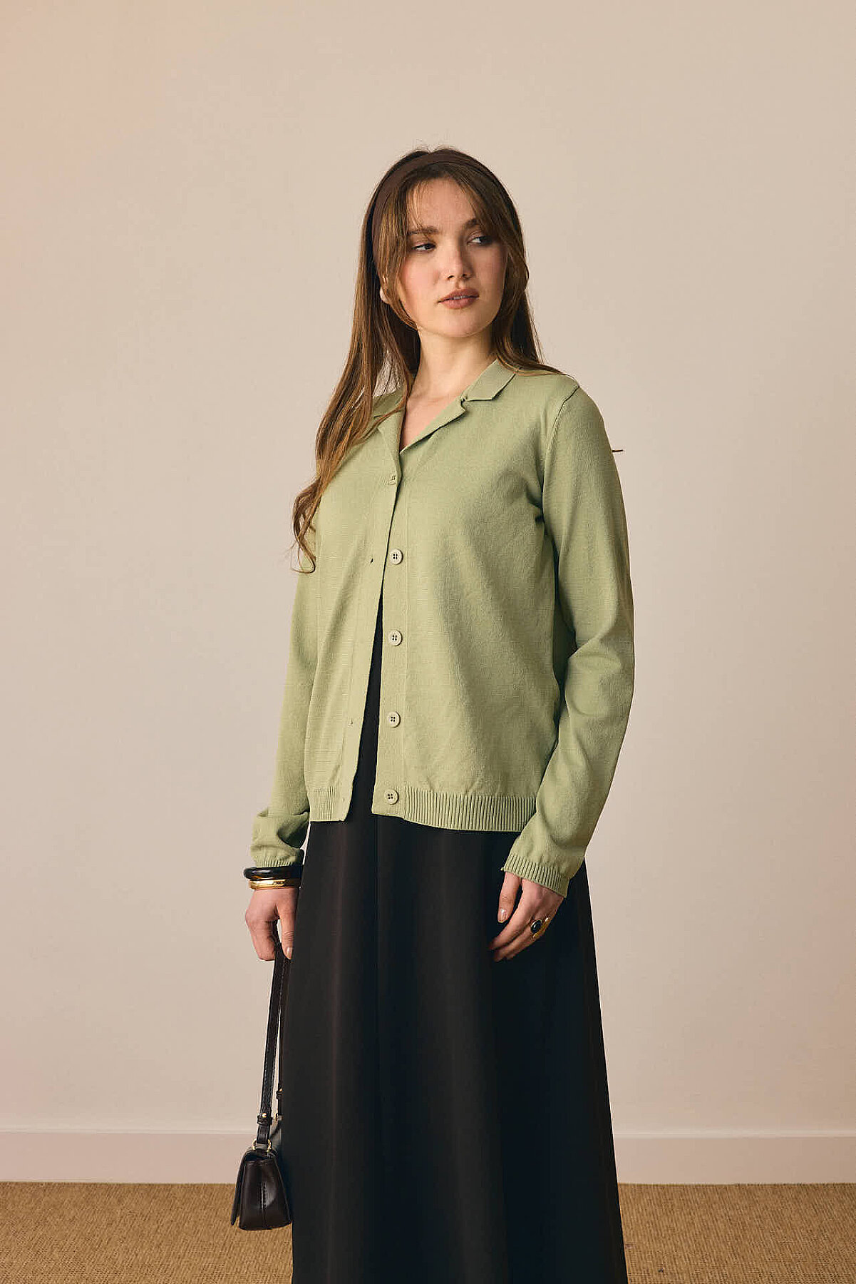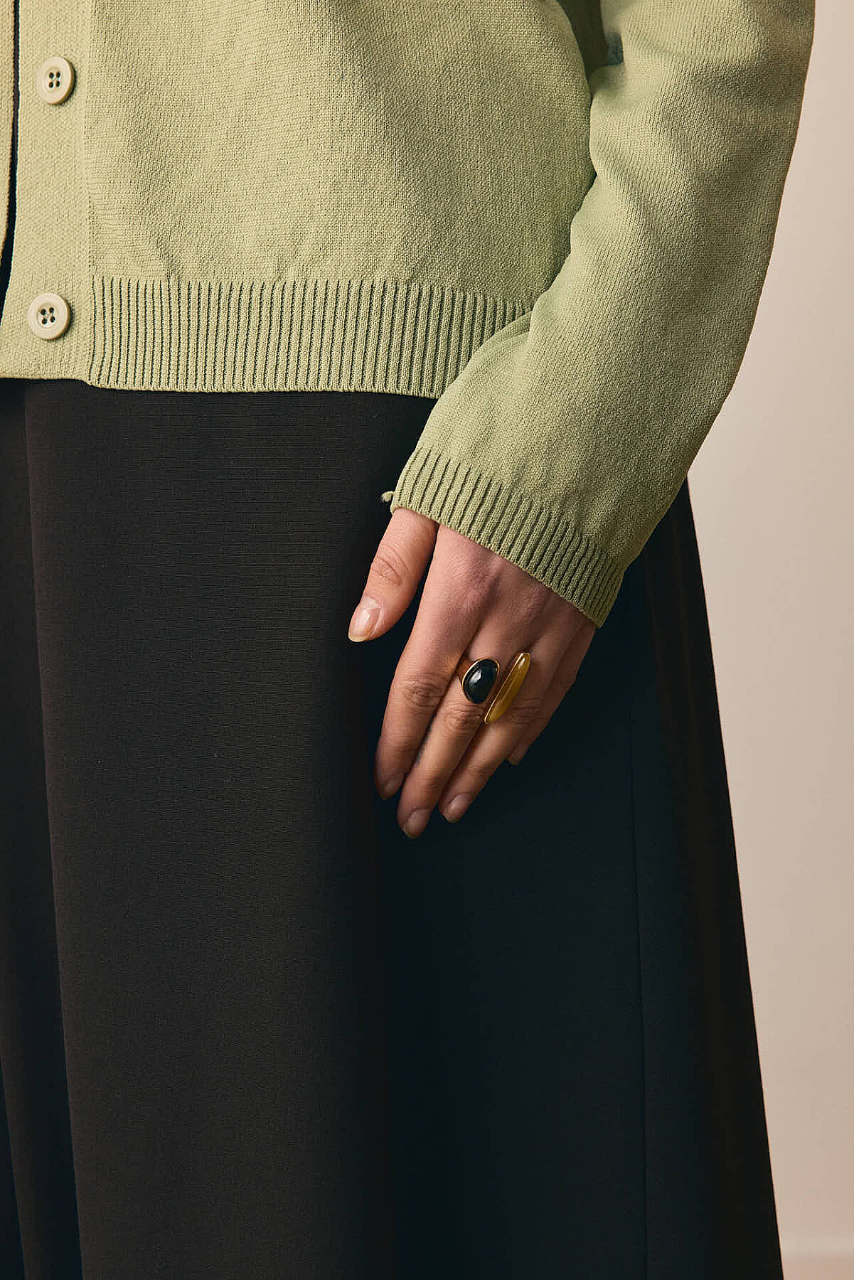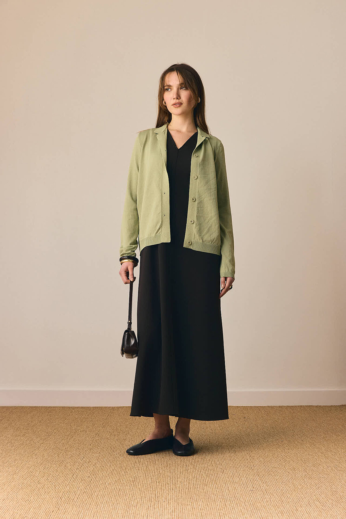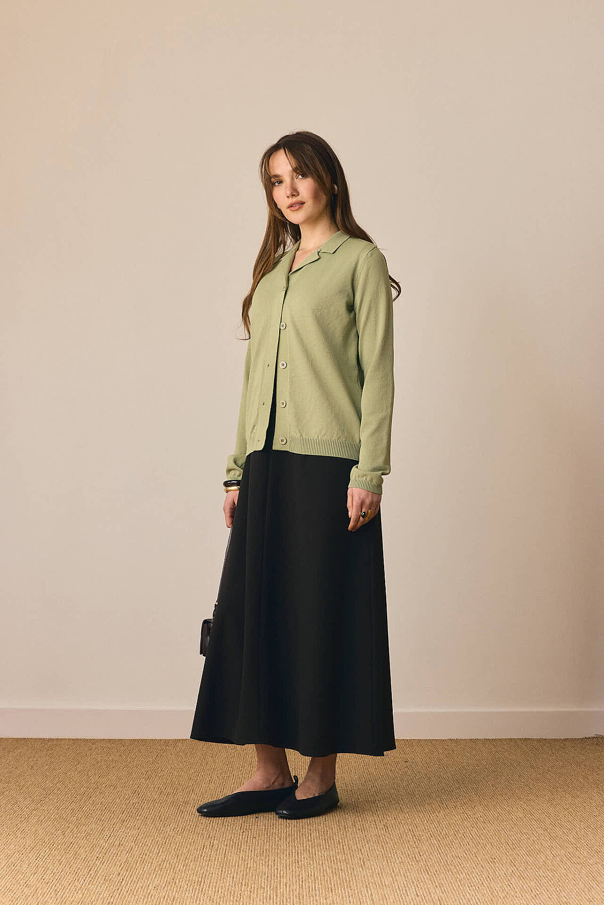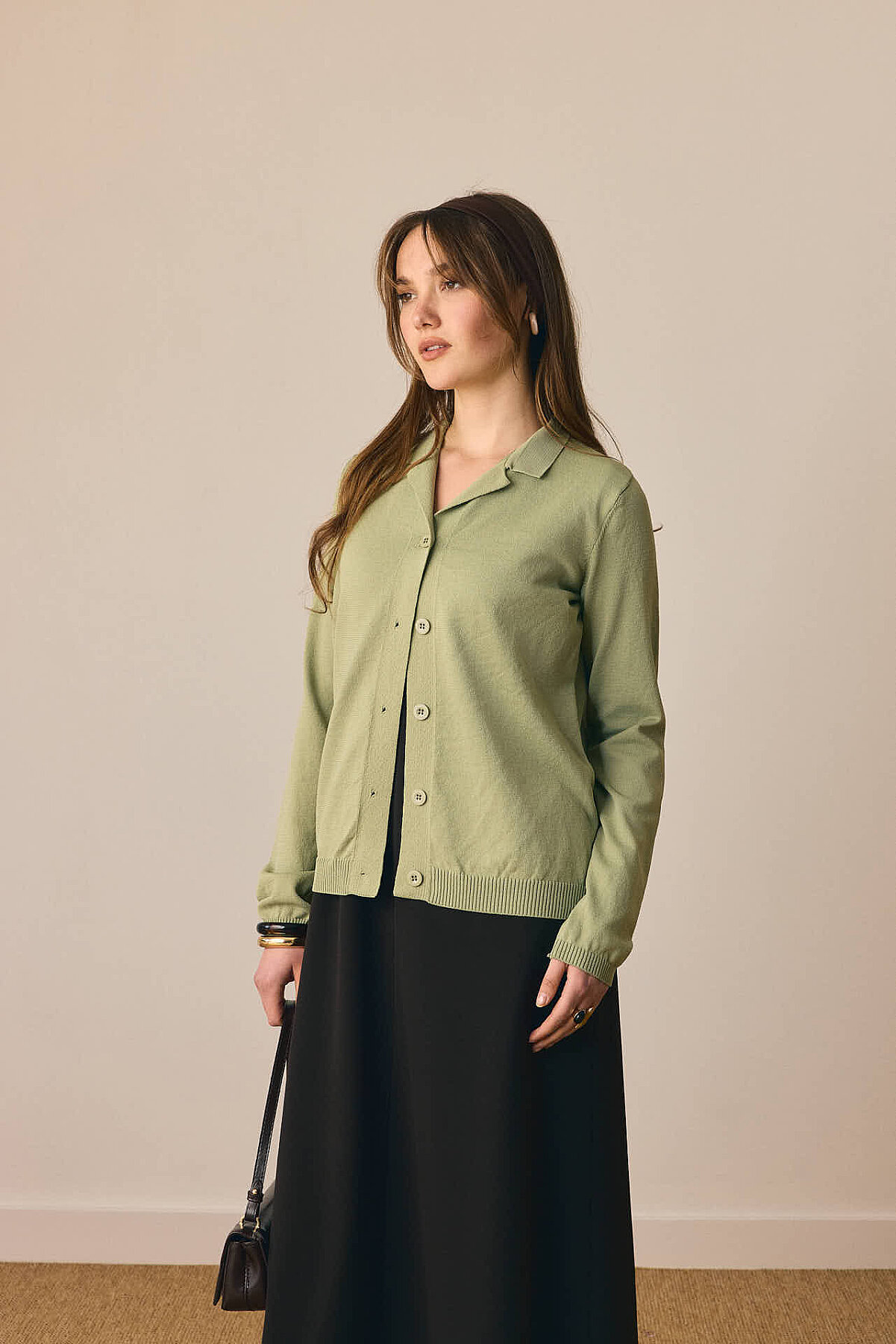 Yumuşak tuşeli yüzeyi ve net duruşuyla öne çıkan Ceket Yaka Hırka, sade şıklığı güçlü bir form ile buluşturur. Ceket yaka detayı tasarıma düzenli ve dengeli bir görünüm kazandırırken, fit kalıbı silueti toparlayarak daha net bir duruş sağlar. Günlük kombinlerden daha klasik görünümlere kadar farklı stillerle kolayca uyum sağlayan zamansız bir parçadır.