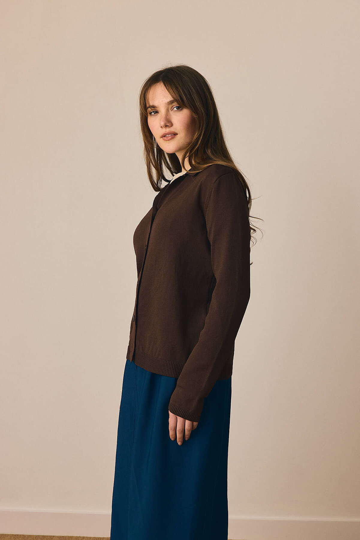 Yumuşak tuşeli yüzeyi ve net duruşuyla öne çıkan Ceket Yaka Hırka, sade şıklığı güçlü bir form ile buluşturur. Ceket yaka detayı tasarıma düzenli ve dengeli bir görünüm kazandırırken, fit kalıbı silueti toparlayarak daha net bir duruş sağlar. Günlük kombinlerden daha klasik görünümlere kadar farklı stillerle kolayca uyum sağlayan zamansız bir parçadır.
