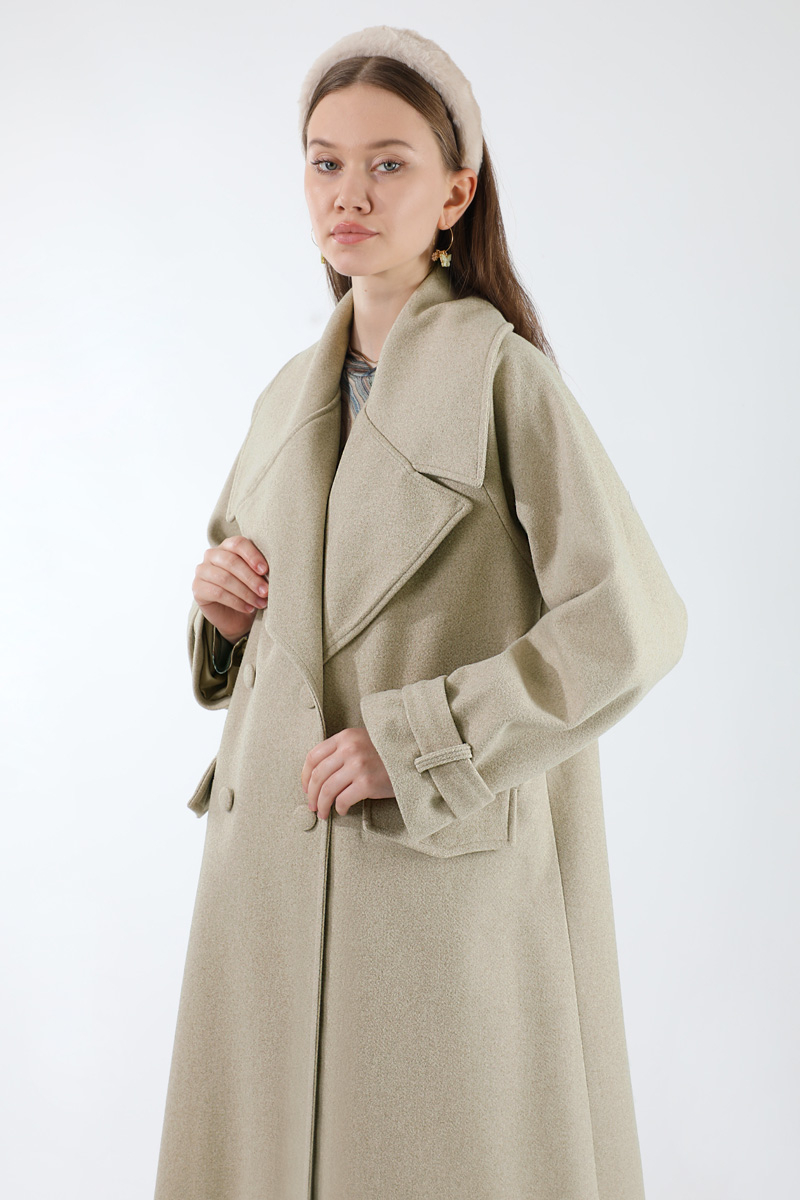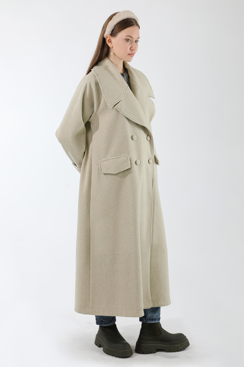 Cepleri Düğmeli Kruvaze Kaban Taş. Geniş Ceket Yakalıdır. Reglan kolludur. Kol kemer aksesuarlıdır. Arka robadan A pile düğme detaylıdır. Astarlıdır. Günlük kullanım ve özel günlerinizde tercih edebilirsiniz.