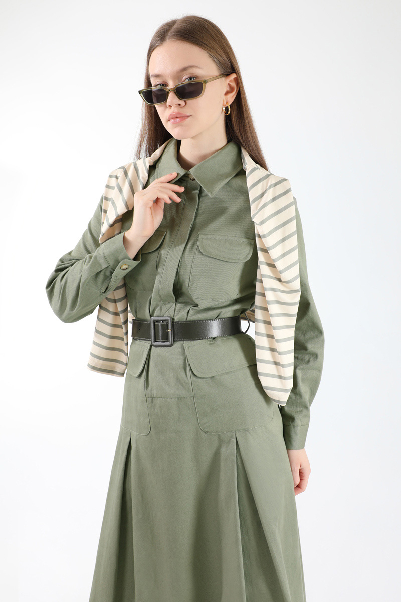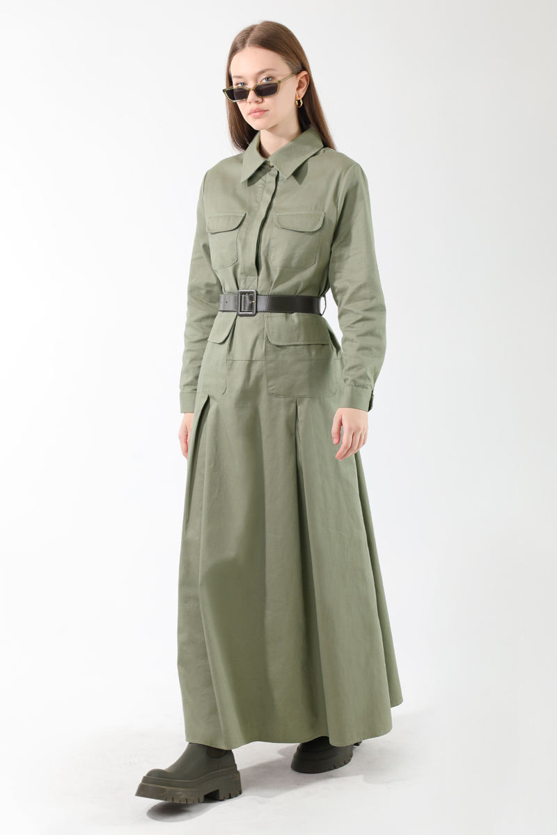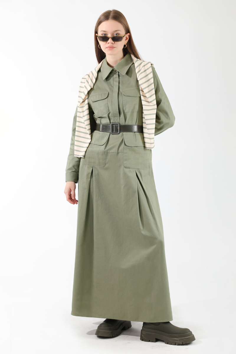 Cepli A Pile Elbise Mint. Gömlek yakalıdır. Eteği çift A Pilelidir. Manşeti düğmelidir. Çift cep detaylıdır. Gizli düğmelidir. Kuşaklıdır. Günlük kullanım ve özel günlerinizde tercih edebilirsiniz.