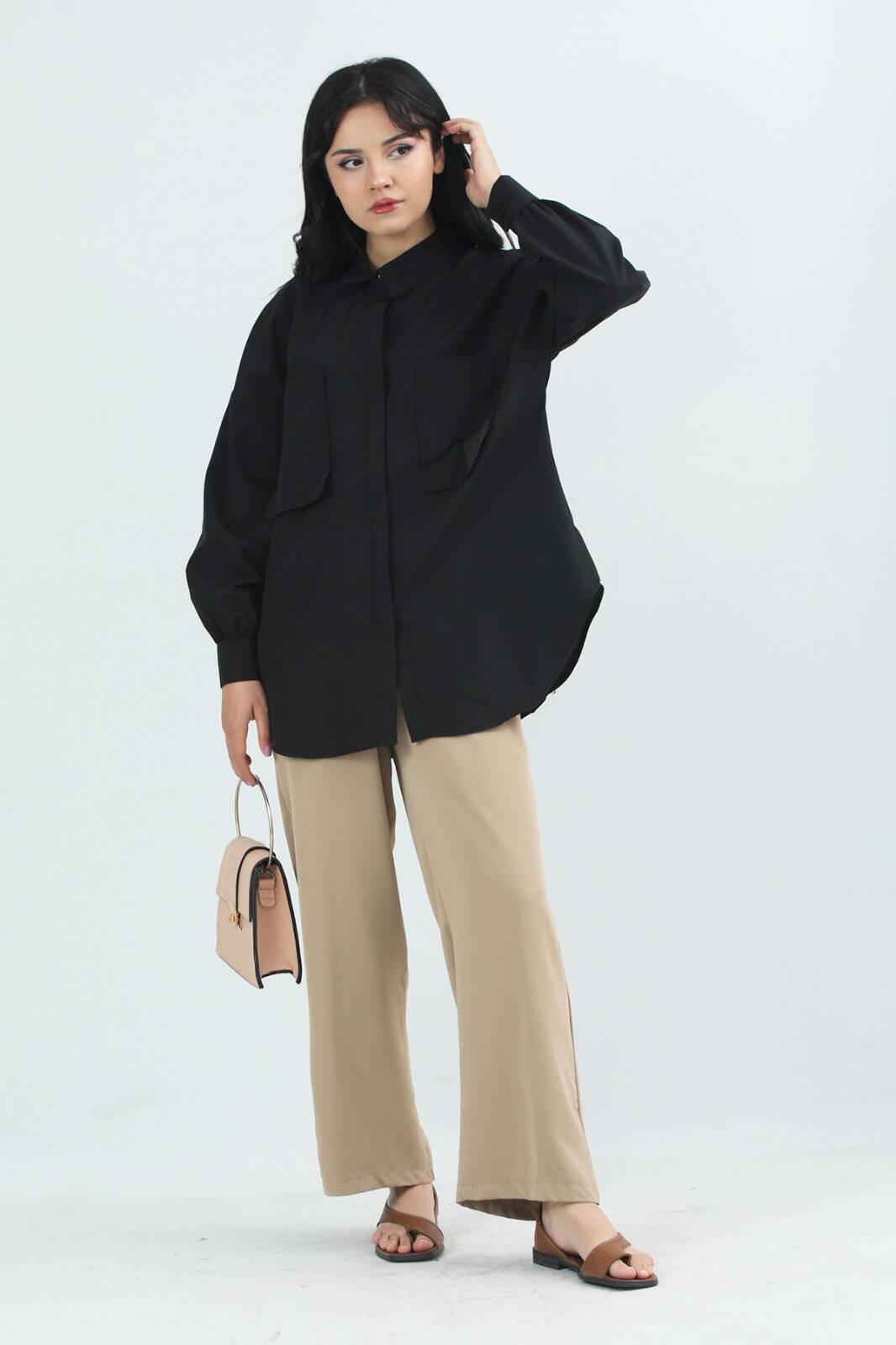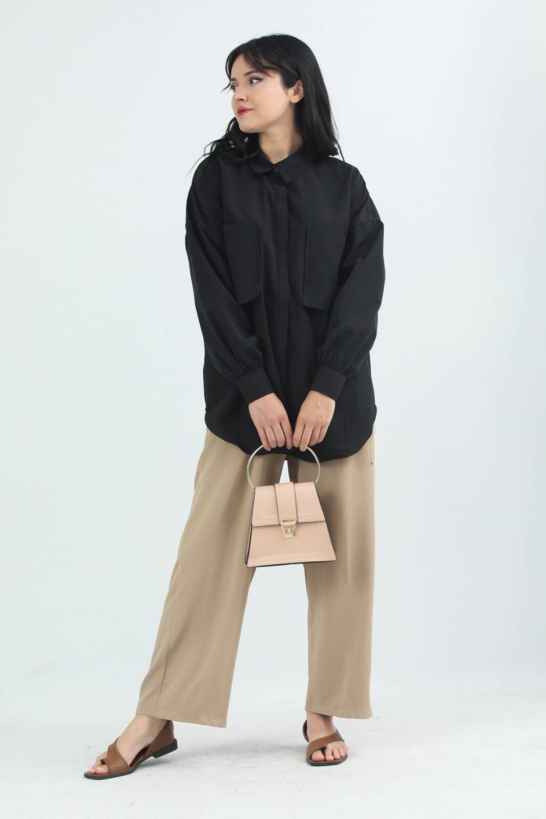Cepli Oversize Gömlek Siyah