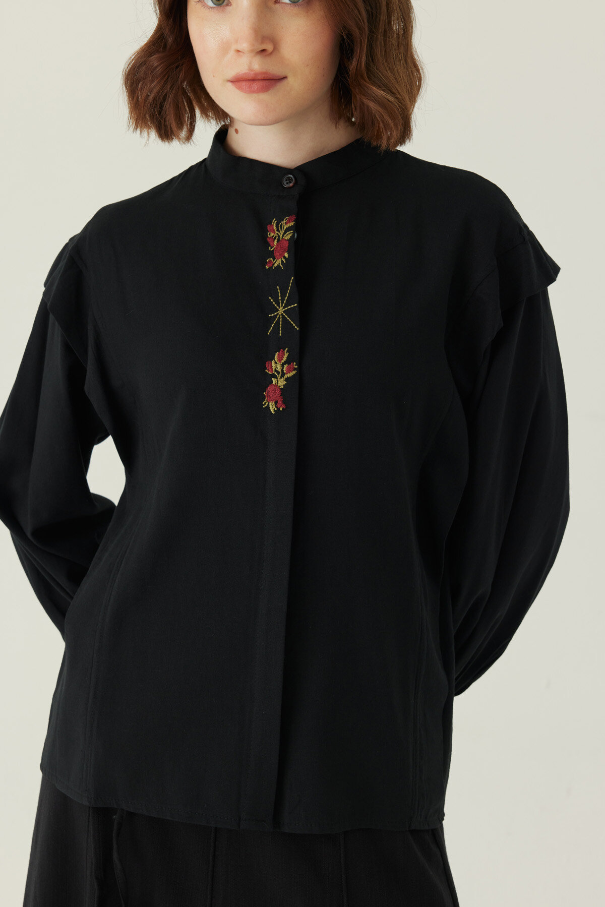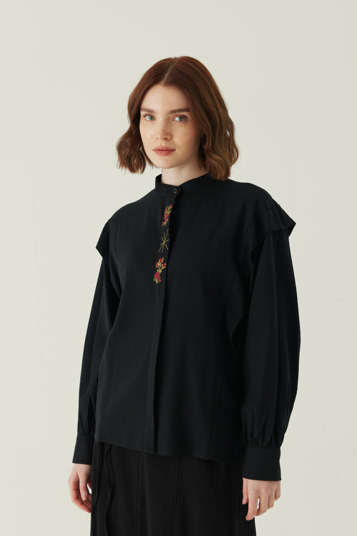 Doğal dokulu kumaşı ve zarif nakış detaylarıyla öne çıkan Çiçek Nakışlı Keten Gömlek, sade şıklığı karakterli bir tasarımla buluşturur. Pat kısmındaki çiçek nakışları modele ince bir zarafet katarken, omuzdaki ek detay tasarıma güçlü bir form kazandırır. Nefes alan keten pamuk içerikli yapısı sayesinde gün boyu konfor sunar; hem günlük hem de klasik kombinlerde rahatlıkla tercih edilebilir.