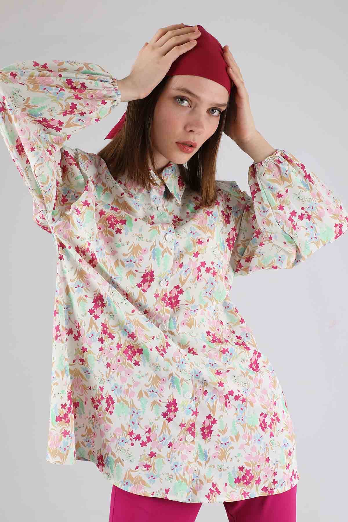 Çiçekli Gömlek İspanyol Paça Takım Fuşya