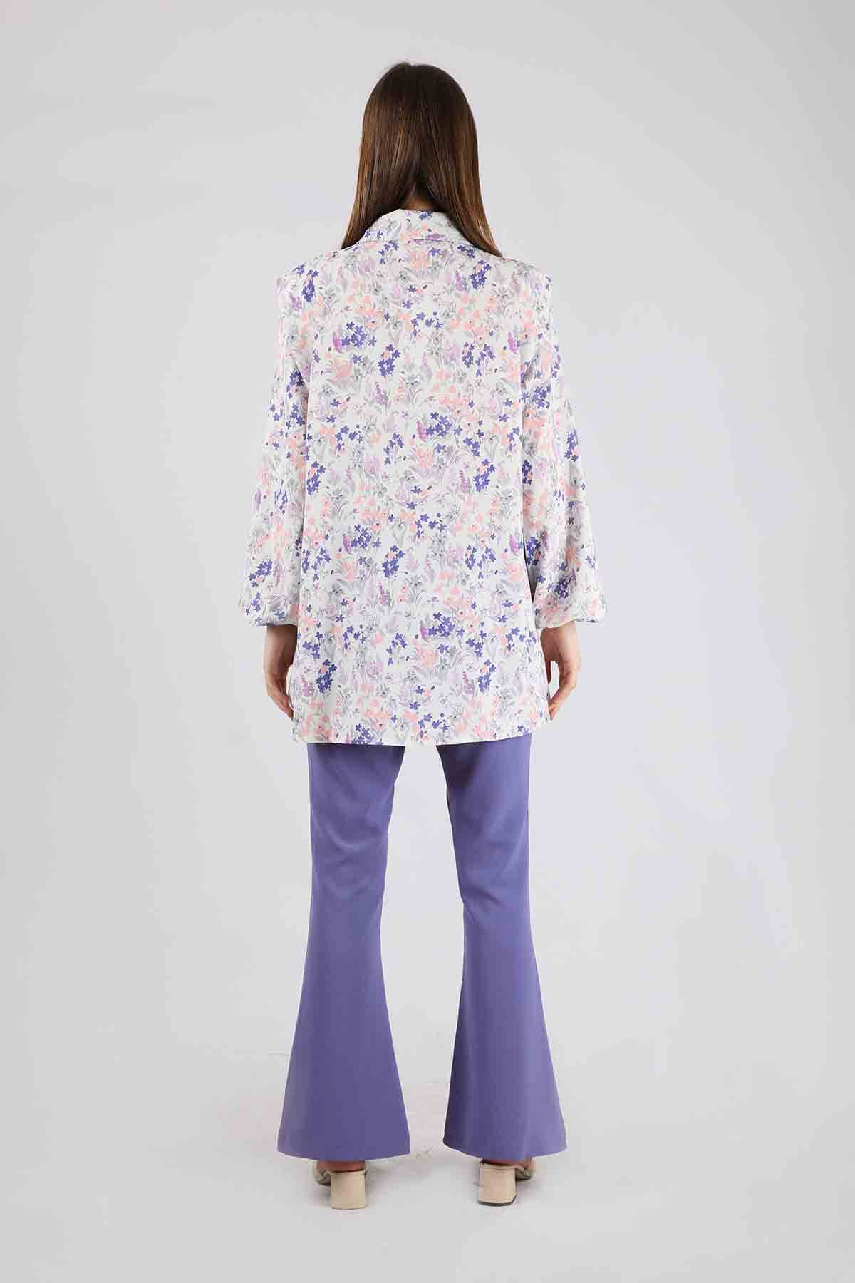 Çiçekli Gömlek İspanyol Paça Takım Mavimsi Lila