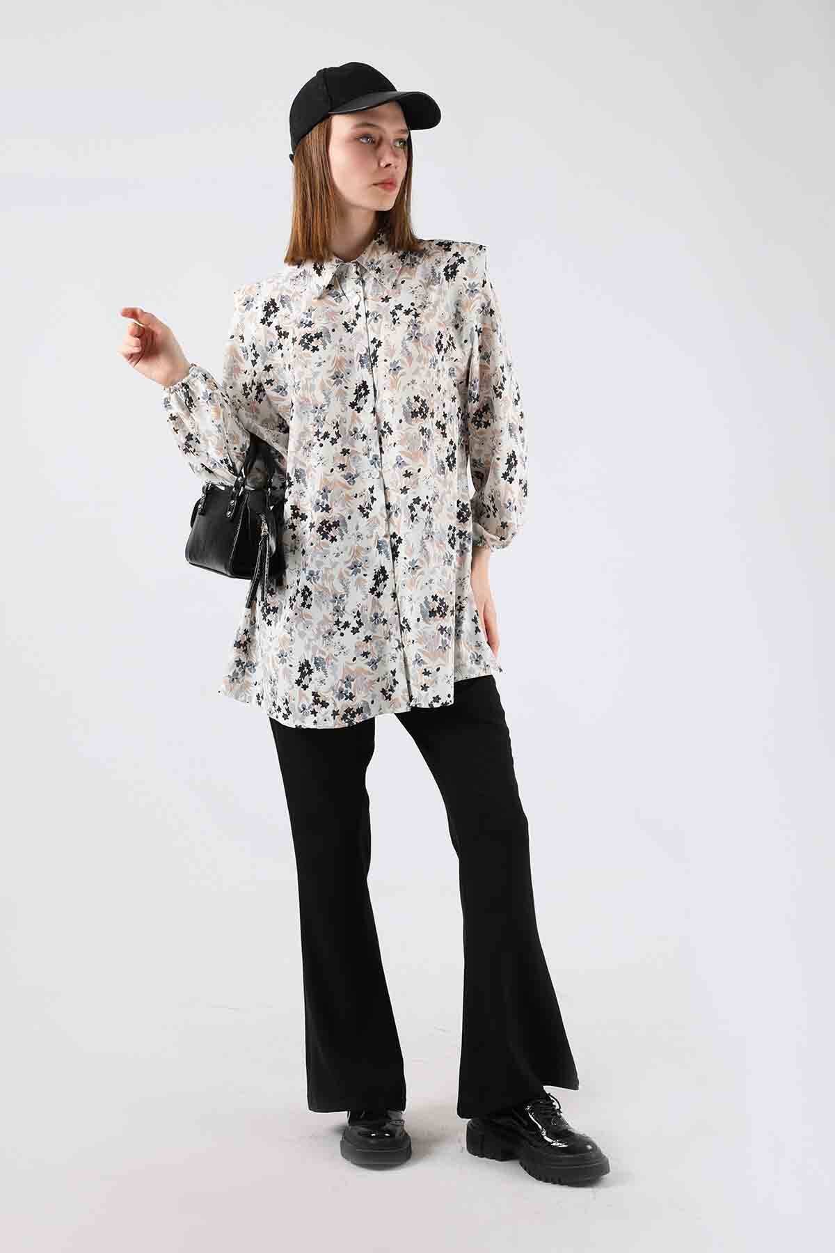 Çiçekli Gömlek İspanyol Paça Takım Siyah