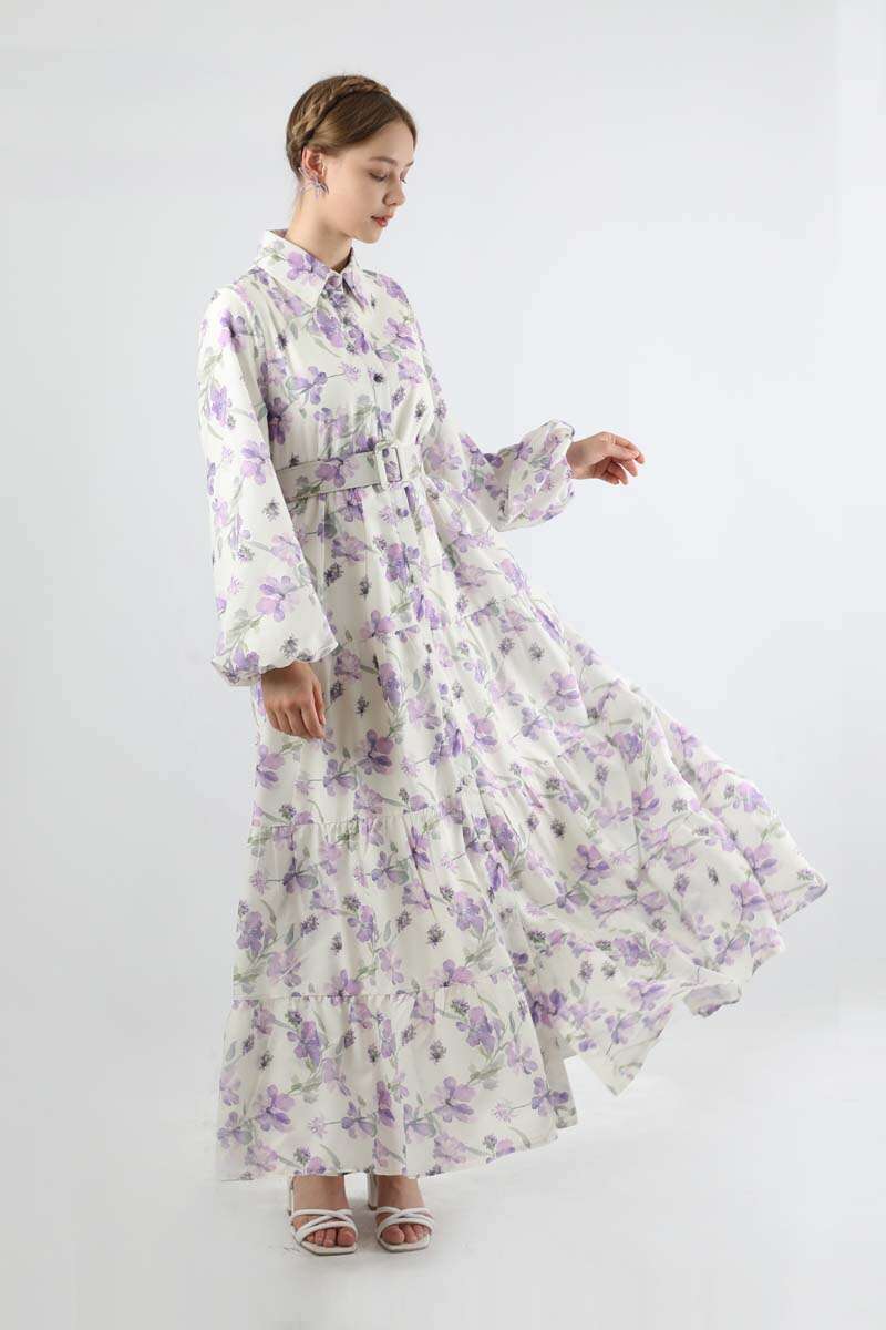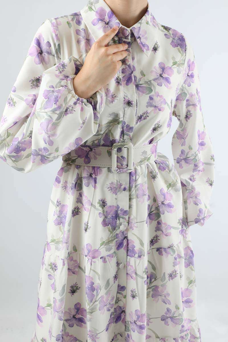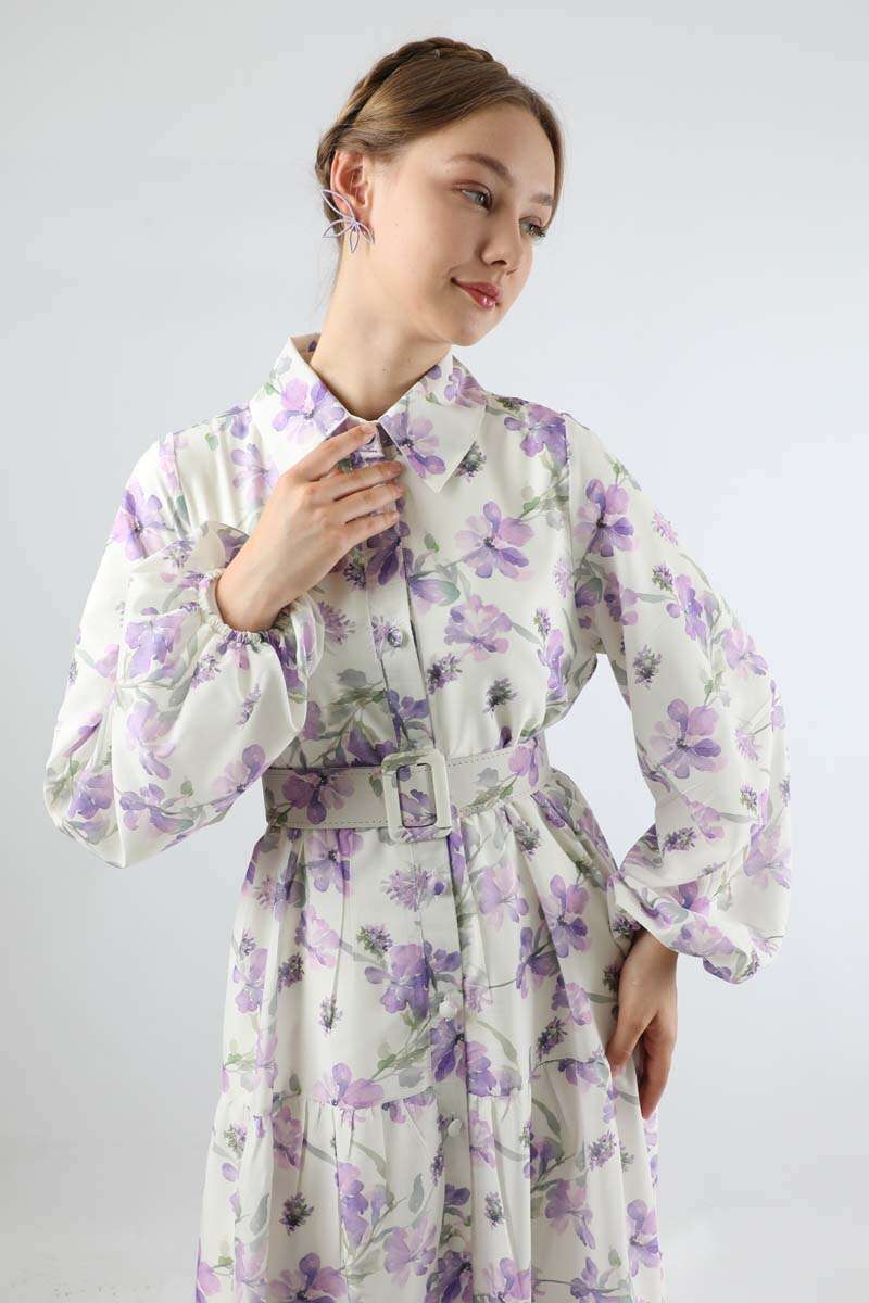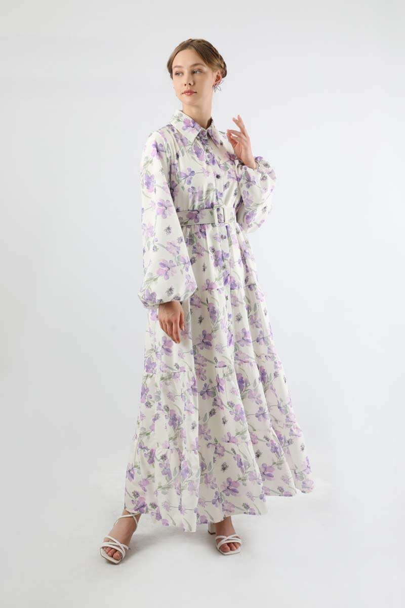 Çiçekli Kemerli Elbise Lila. Gömlek yakalıdır. Balon Kolludur. Eteği büzgülüdür. Manşeti lastiklidir. Önü düğmelidir (Kaplama düğmelidir). Astarlıdır. Şık olan ürüne özel günlerinizde tercih edebilirsiniz.