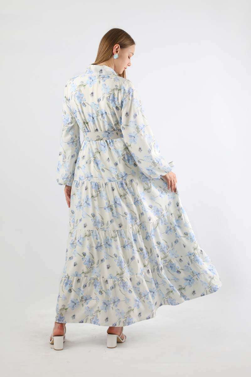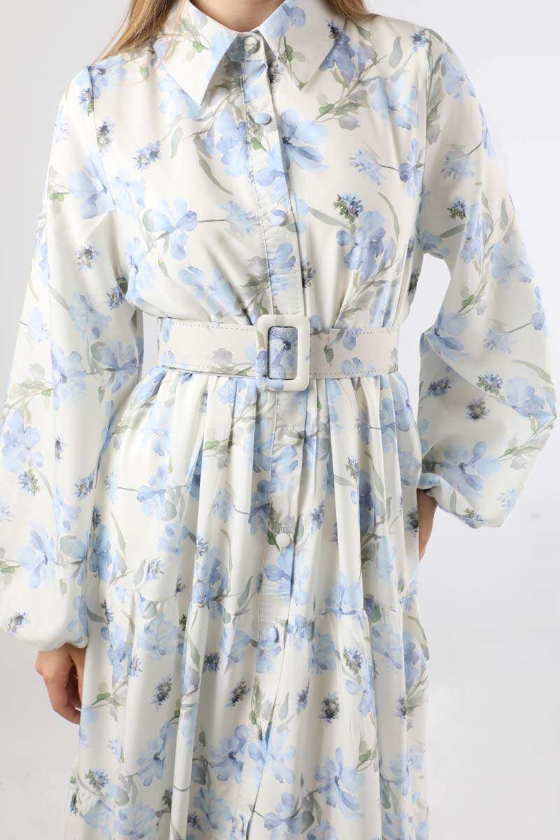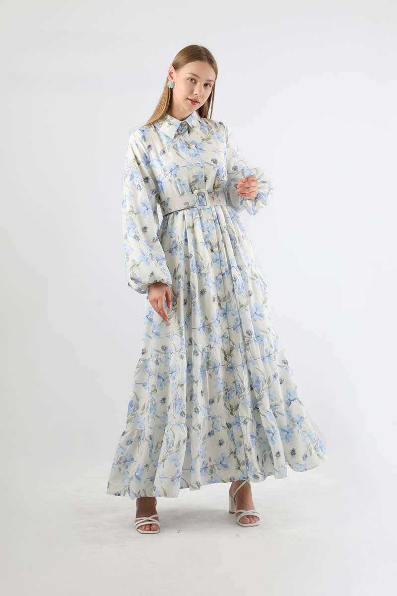 Çiçekli Kemerli Elbise Mavi. Gömlek yakalıdır. Balon Kolludur. Eteği büzgülüdür. Manşeti lastiklidir. Önü düğmelidir (Kaplama düğmelidir). Astarlıdır. Şık olan ürüne özel günlerinizde tercih edebilirsiniz.