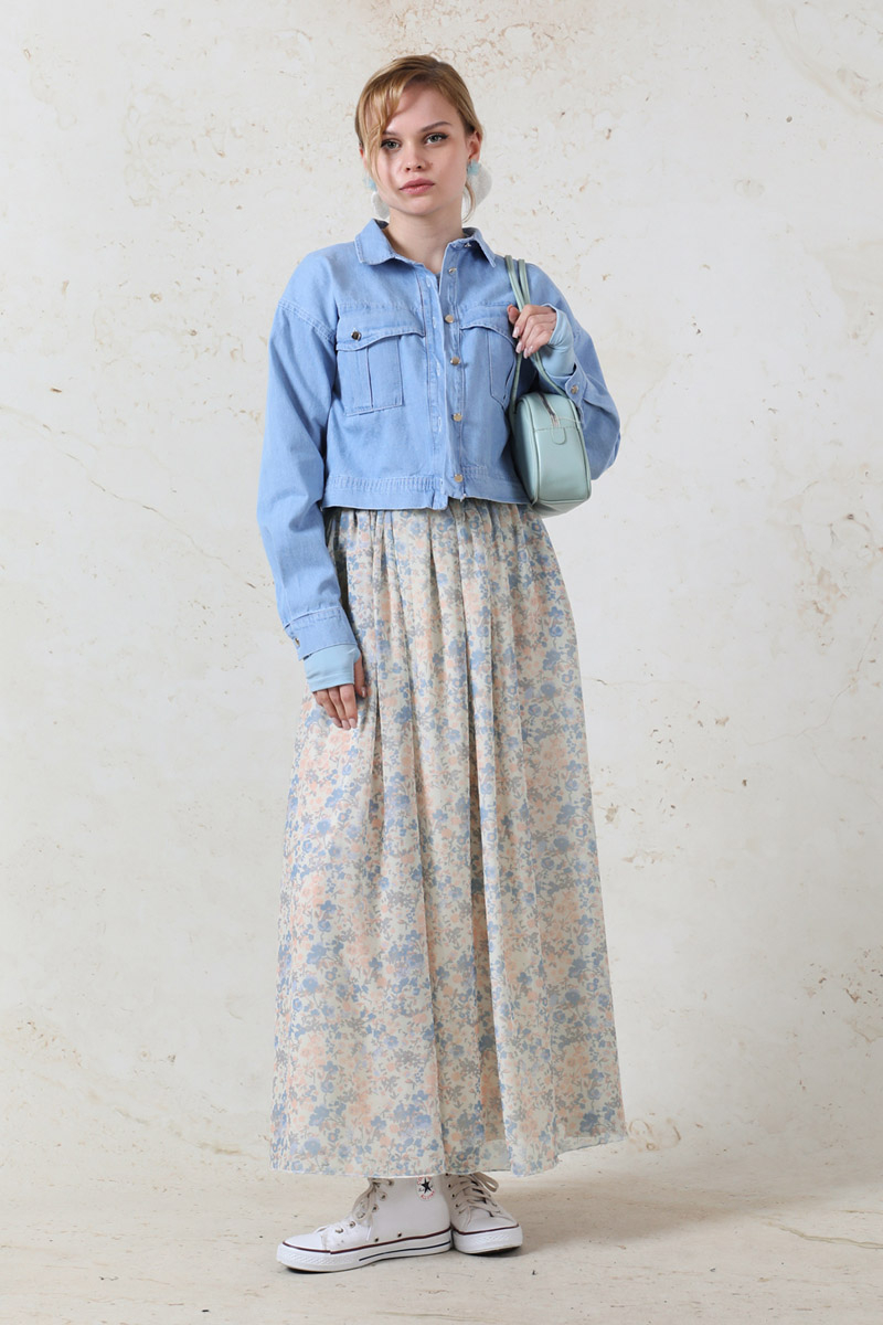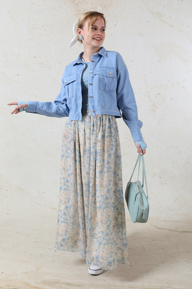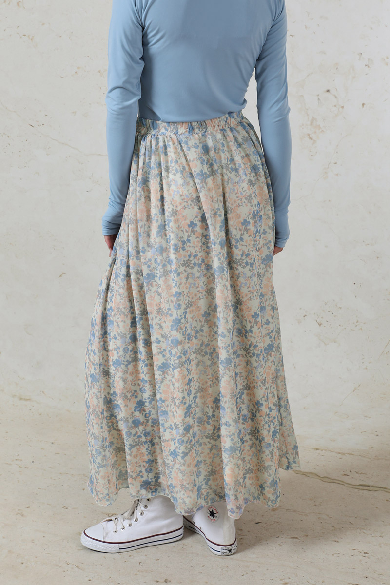 Çiçekli Şifon Etek Bebe Mavisi