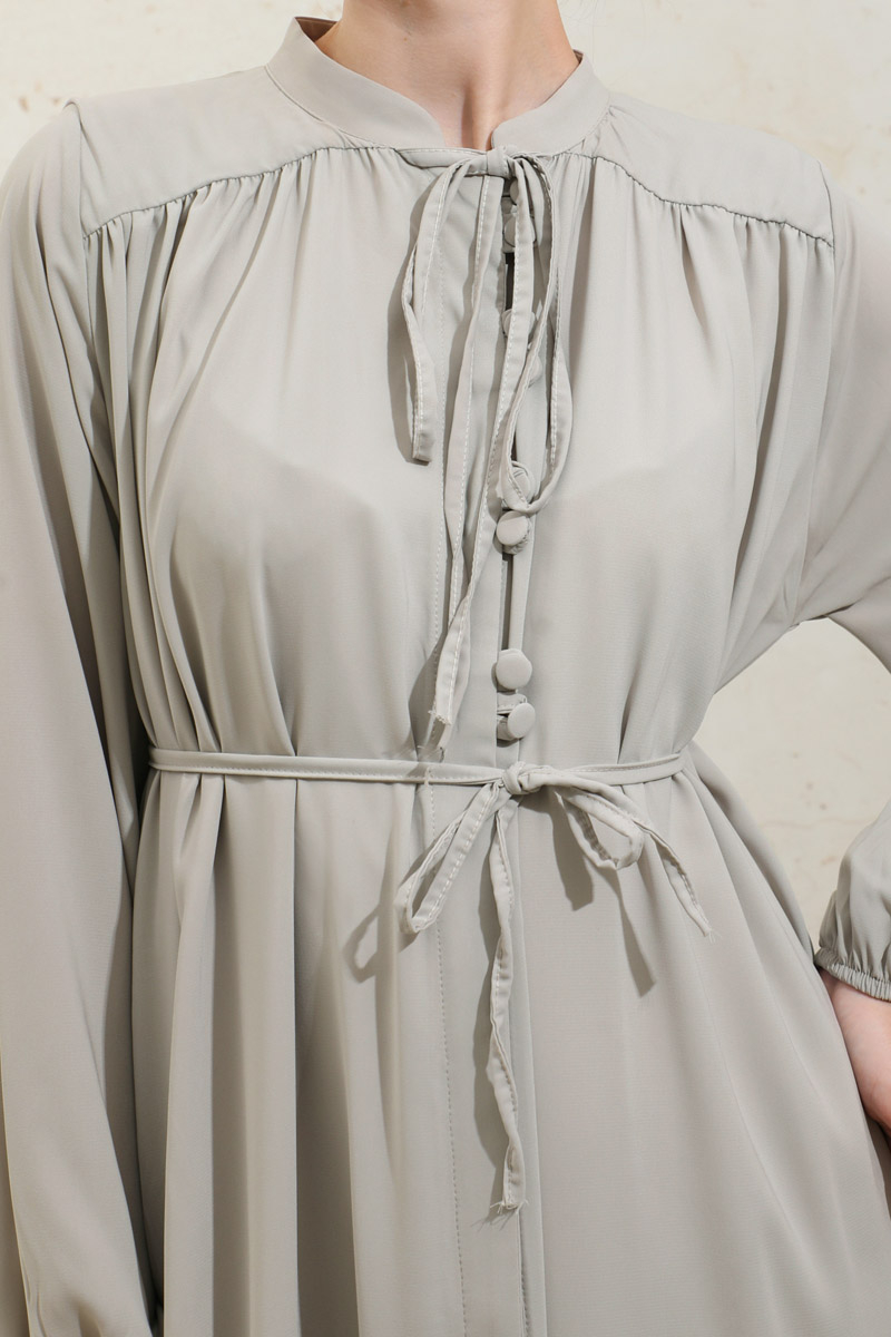 Çift Düğmeli Elbise Taş