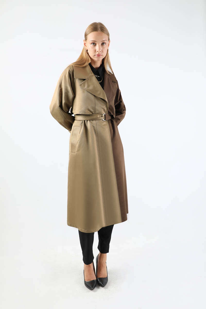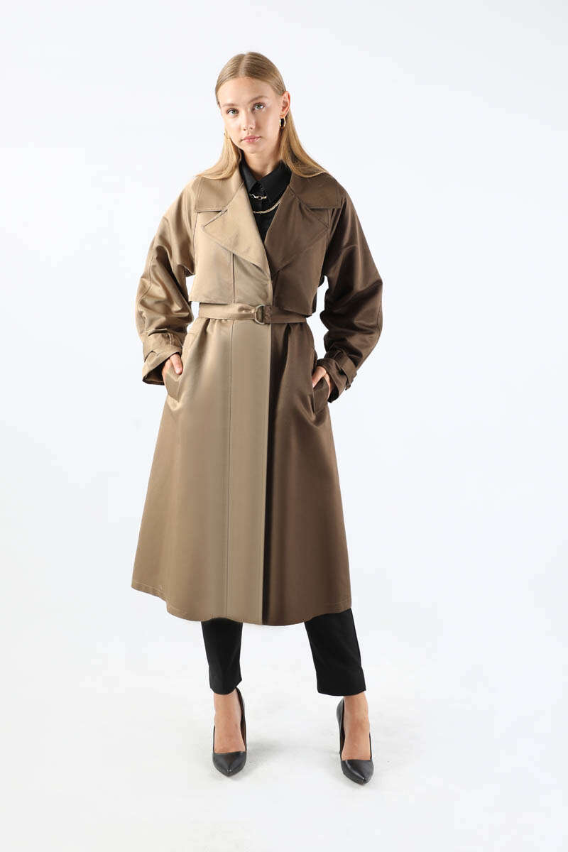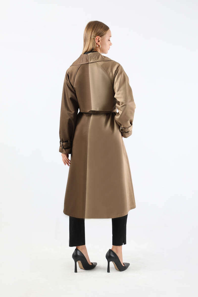 Çift Renk Apolet Detaylı Trençkot Kahve