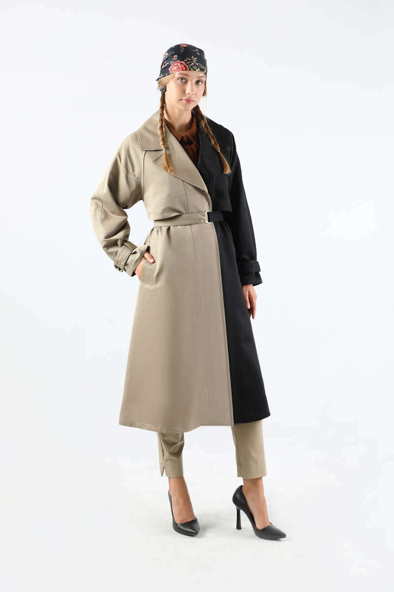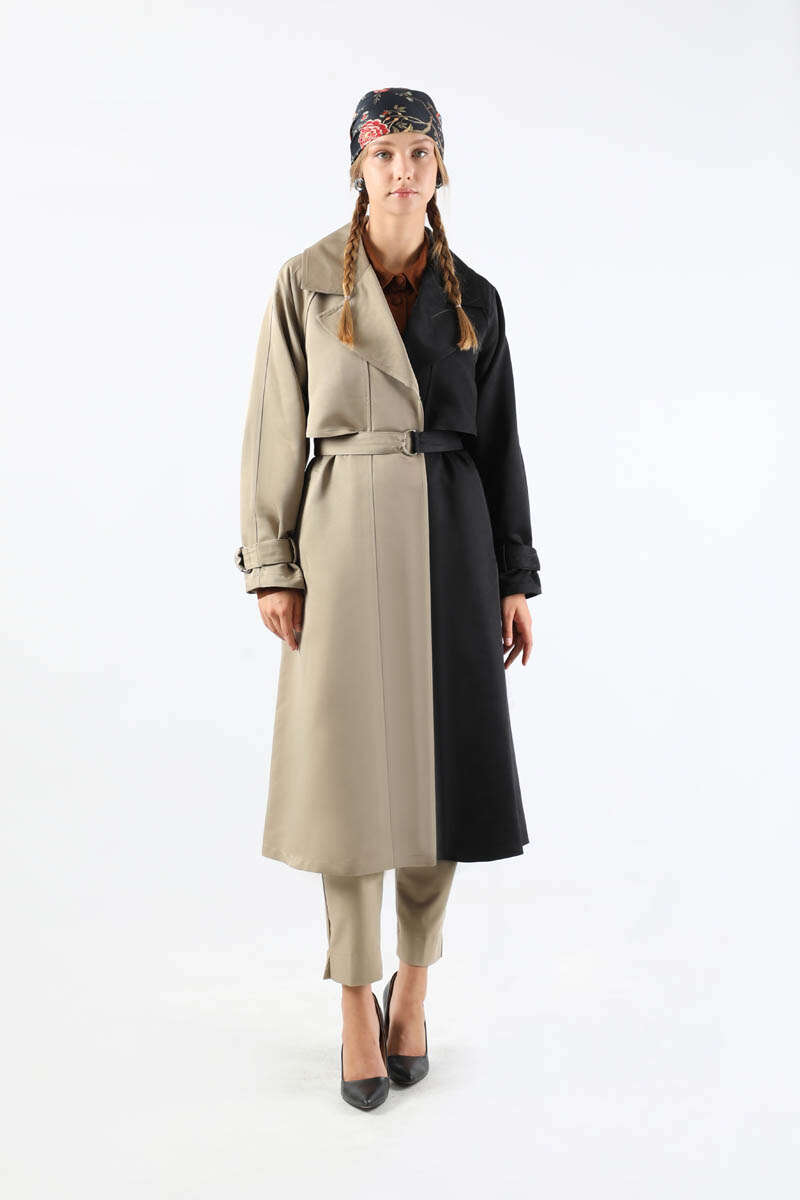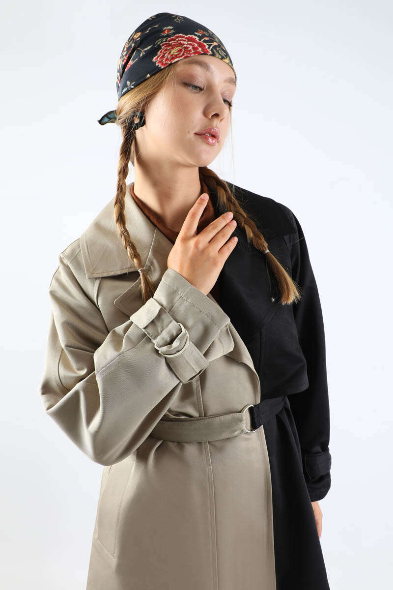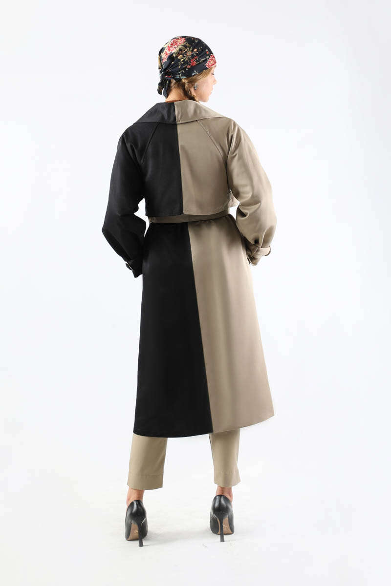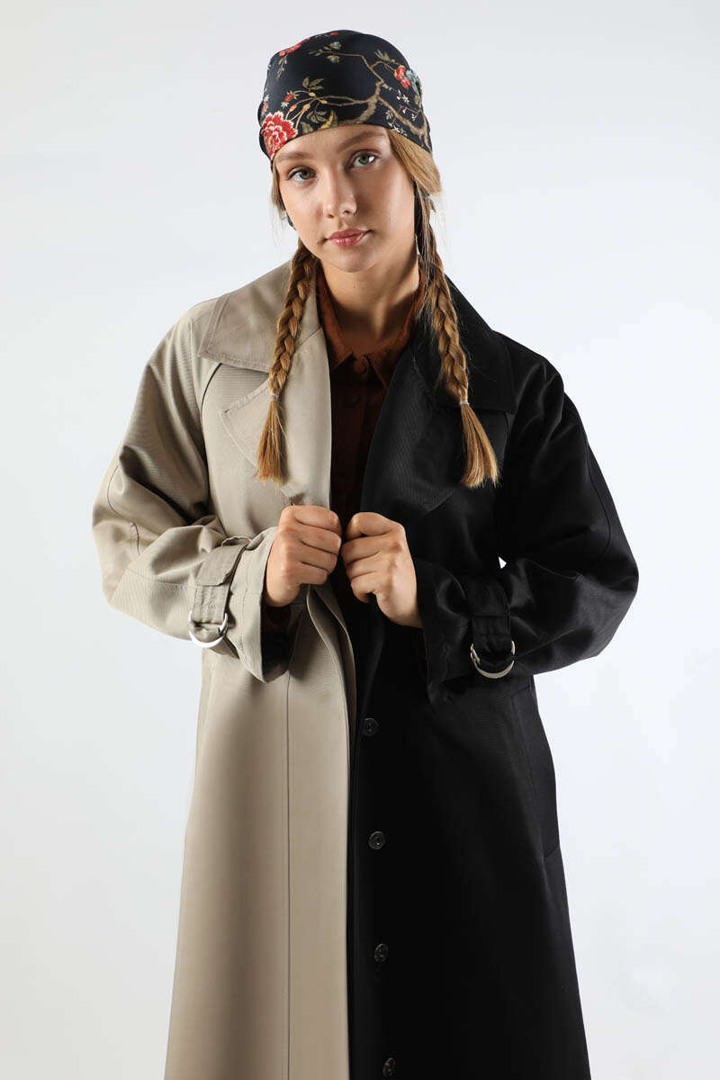Çift Renk Apolet Detaylı Trençkot Siyah