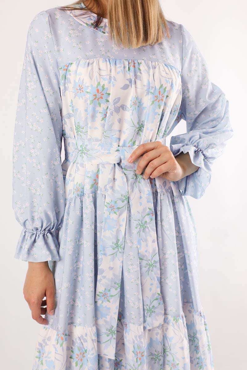 Çıtır Desenli Büzgülü Elbise Bebe Mavisi
