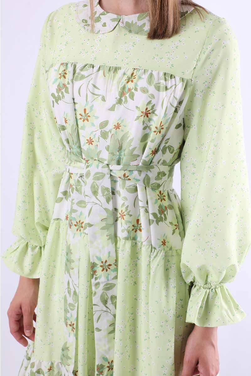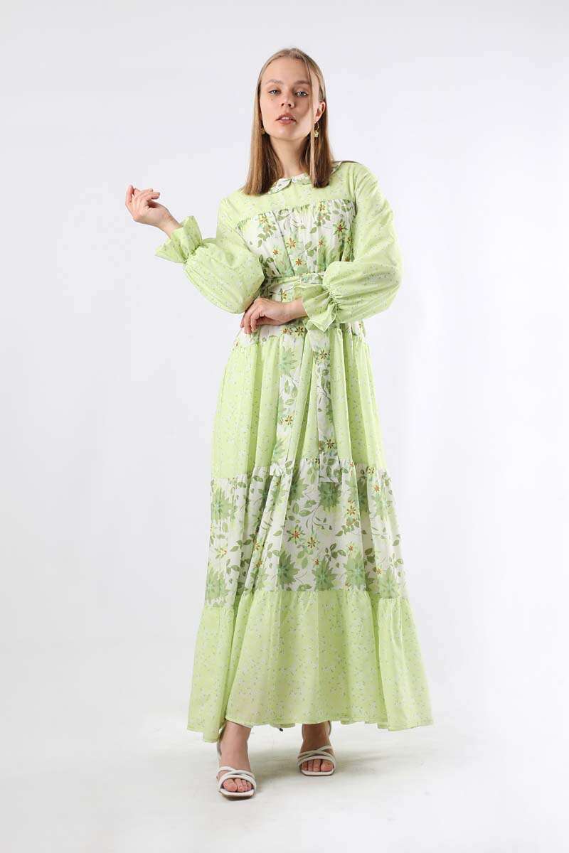 Çıtır Desenli Büzgülü Elbise Yeşil. Bebe yakalıdır. Manşeti lastik detaylıdır. Robadan katkat büzgülüdür. Çift garnilidir. Arkadan fermuarlıdır. Kuşaklıdır. Şık olan ürüne özel günlerinizde tercih edebilirsiniz.