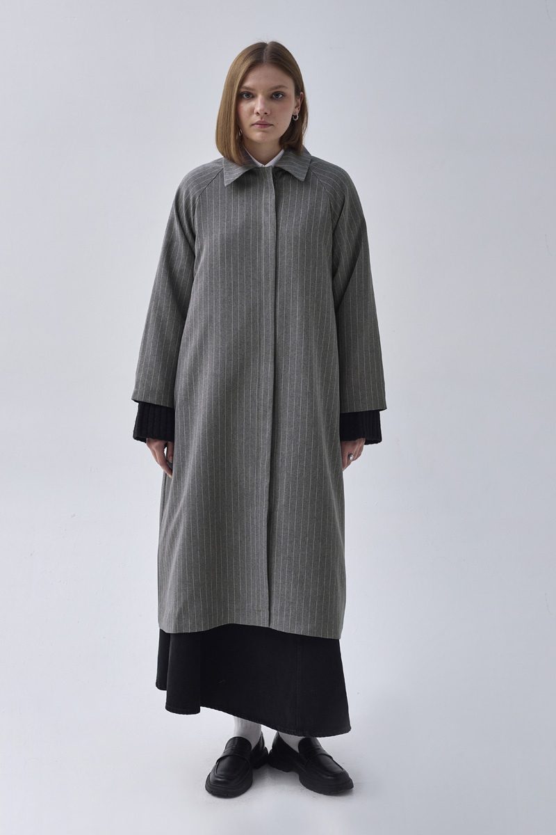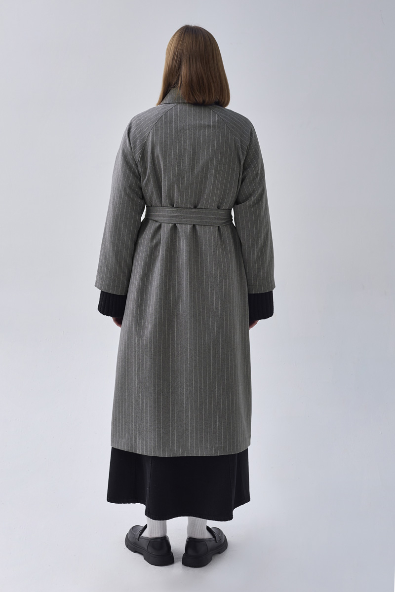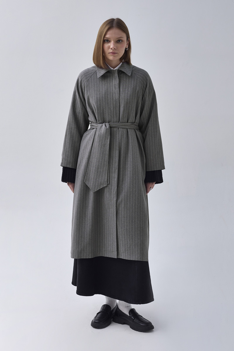 Çizgi Desenli Trençkot Gri