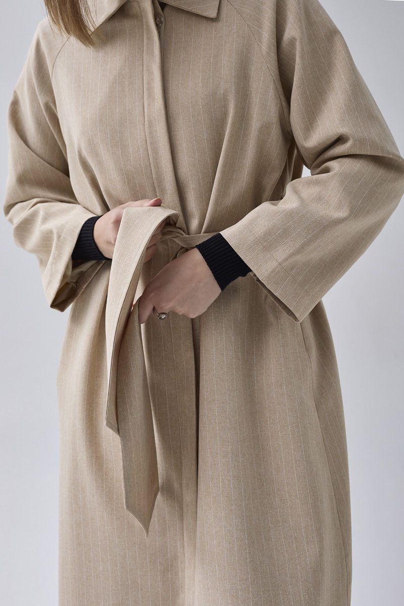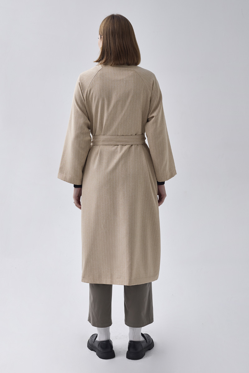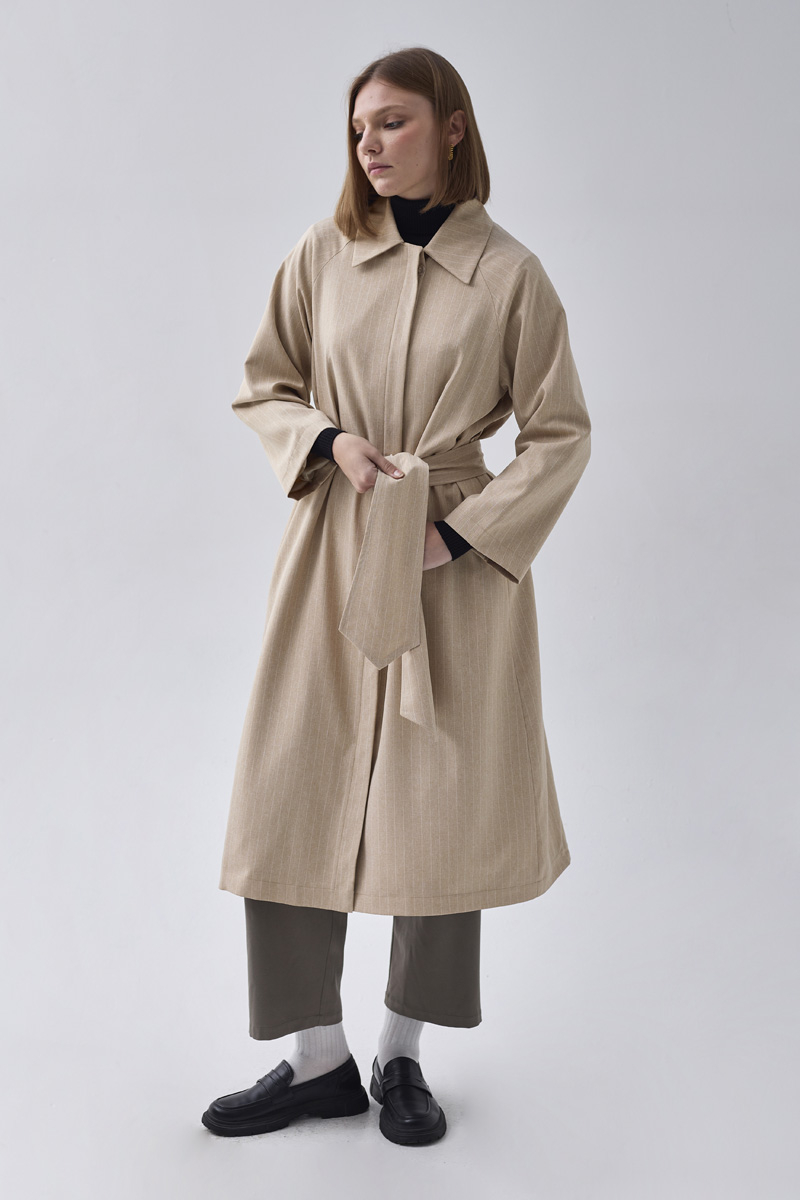 Çizgi Desenli Trençkot Taş