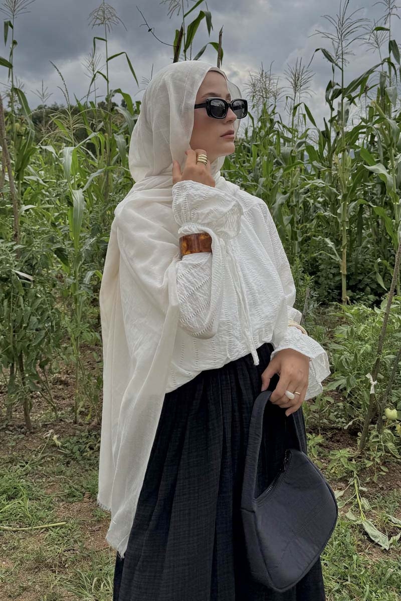 Çizgi Dokulu Gömlek Beyaz, Zarif bir stile sahip bu çizgi dokulu gömlek, gardırobunuza feminen ve havadar bir hava katıyor. Kumaşındaki özel çizgi dokusu ve hareketli fırfır detaylarıyla göz alıcı bir şıklık sunarken, rahat kesimiyle gün boyu konfor sağlar. Hem günlük kombinlerde hem de daha özel anlarda tercih edilebilir.