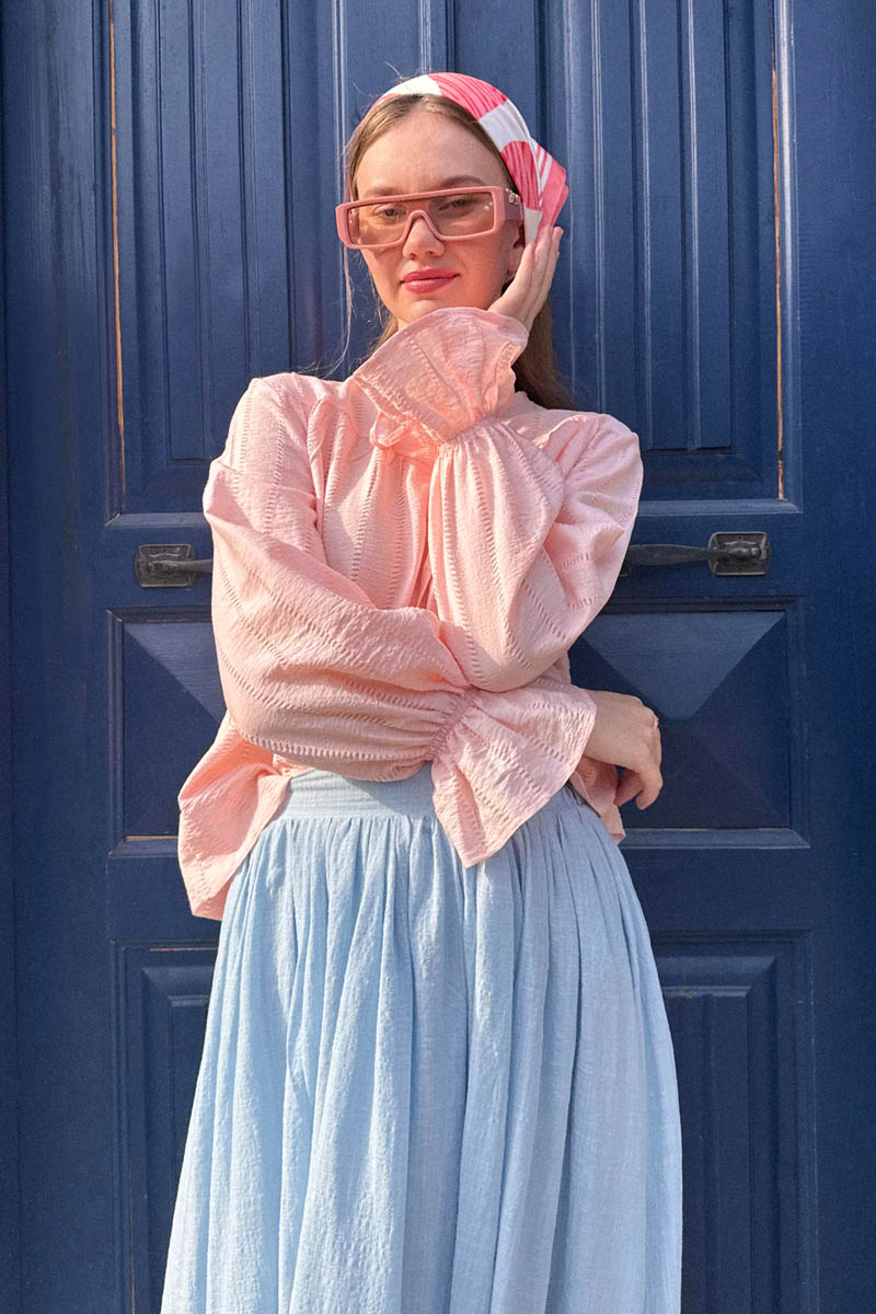 Çizgi Dokulu Gömlek Pudra