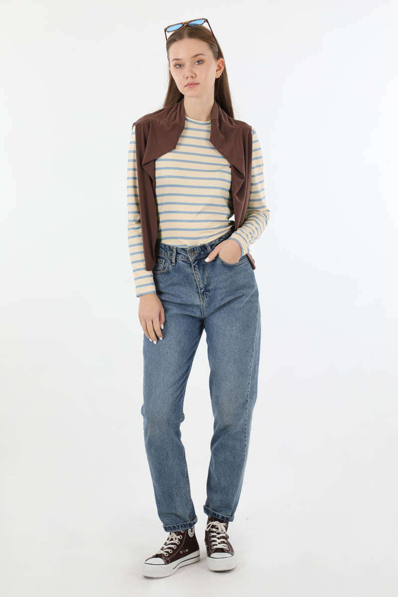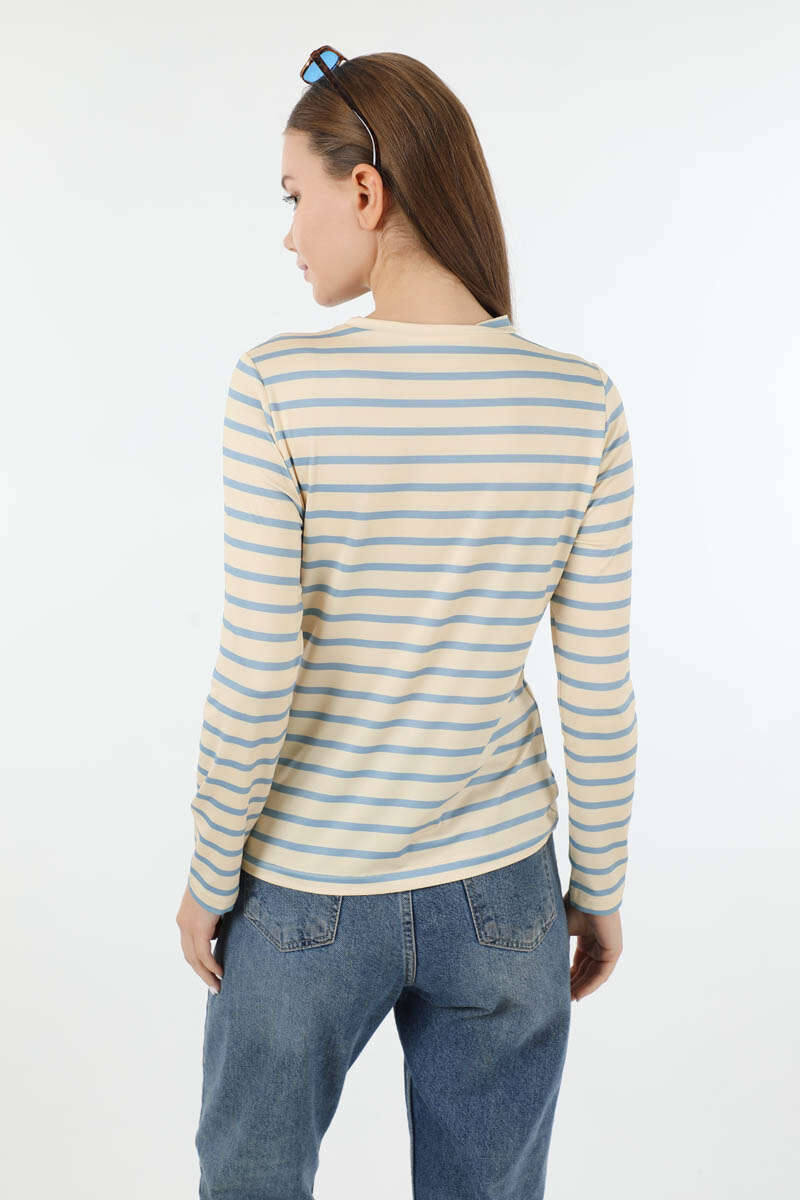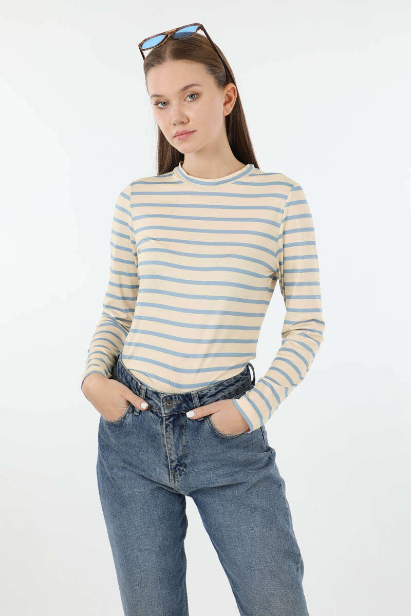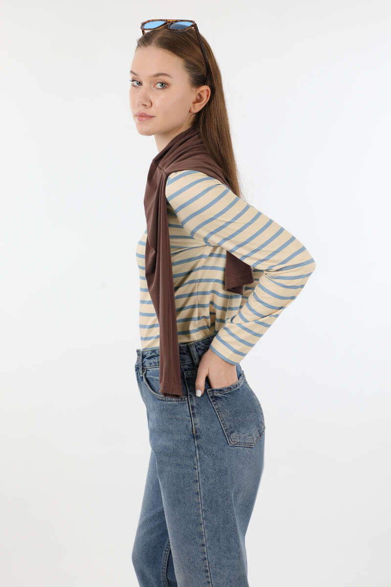Çizgili Body Bebe Mavisi. Bisiklet yakalıdır. Uzun kolludur. Yumuşak ve esnek kumaşlıdır. Günlük kullanım ve özel günlerinizde tercih edebilirsiniz.