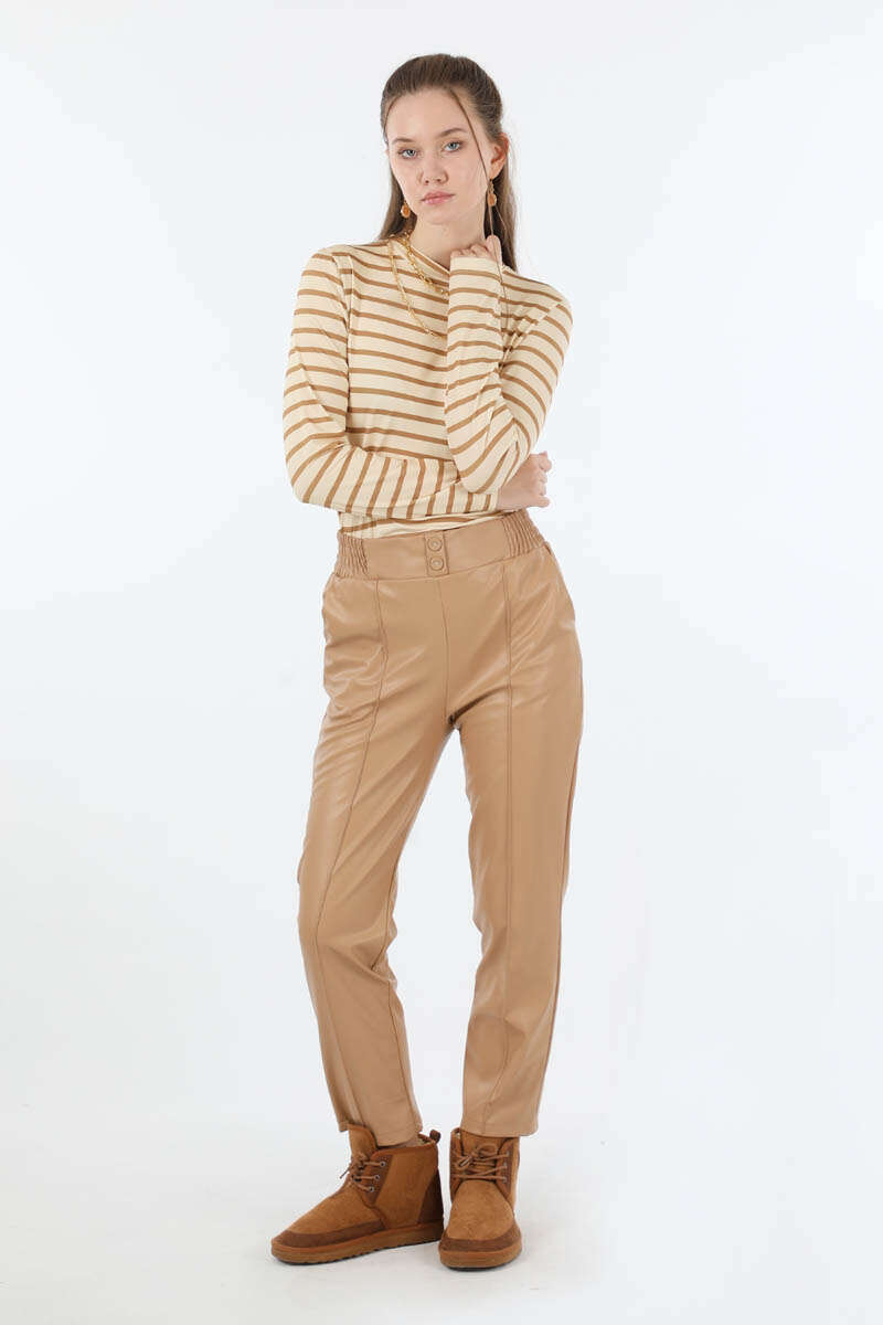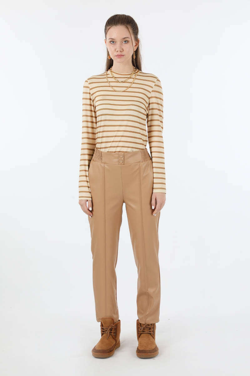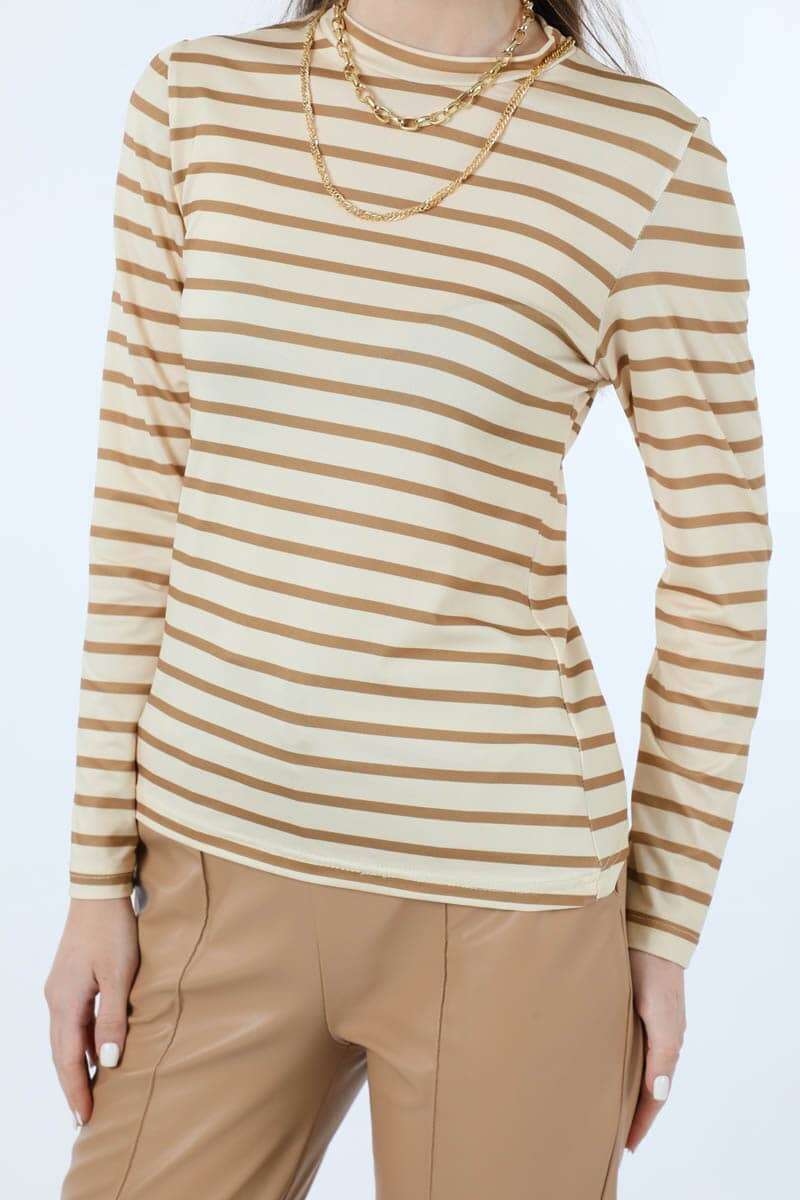 Çizgili Body Camel. Bisiklet yakalıdır. Uzun kolludur. Yumuşak ve esnek kumaşlıdır. Günlük kullanım ve özel günlerinizde tercih edebilirsiniz.