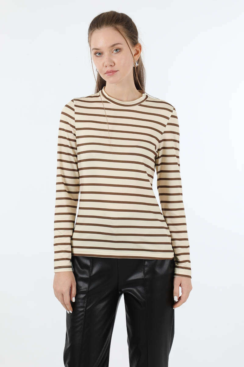 Çizgili Body Kahverengi. Bisiklet yakalıdır. Uzun kolludur. Yumuşak ve esnek kumaşlıdır. Günlük kullanım ve özel günlerinizde tercih edebilirsiniz.