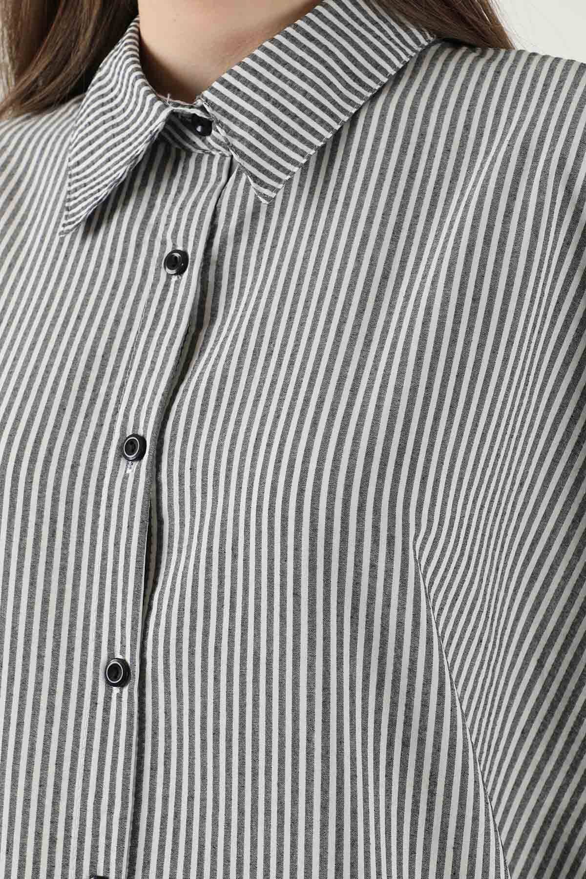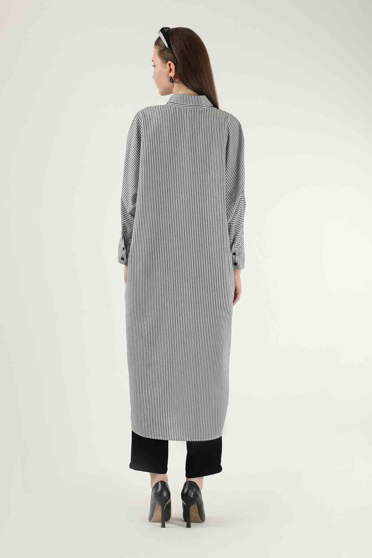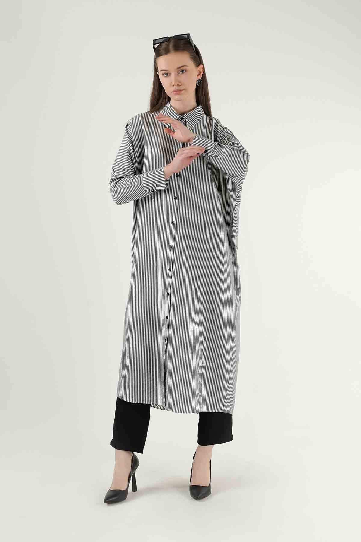 Çizgili Uzun Tunik Gömlek Gri