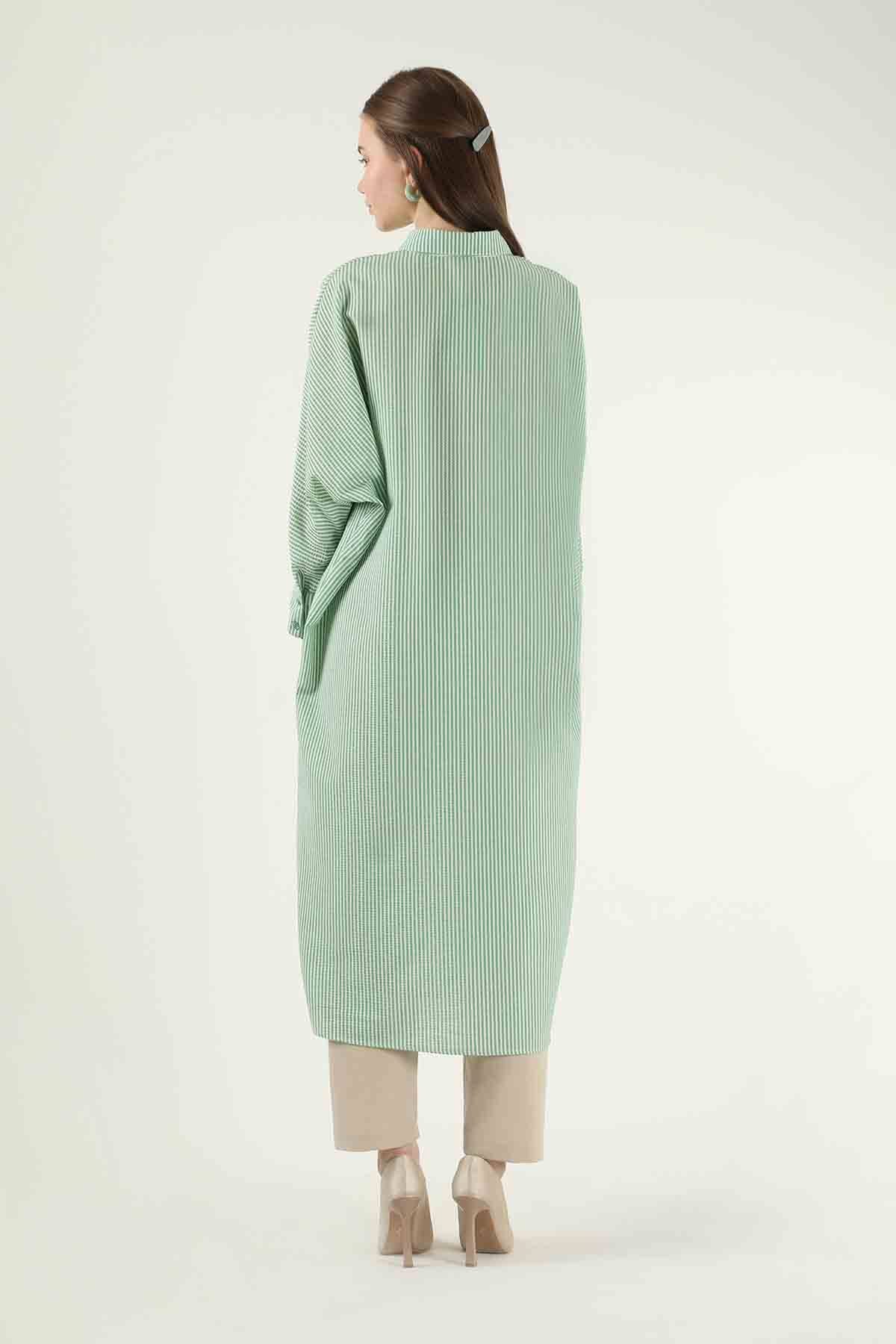 Çizgili Uzun Tunik Gömlek Yeşil