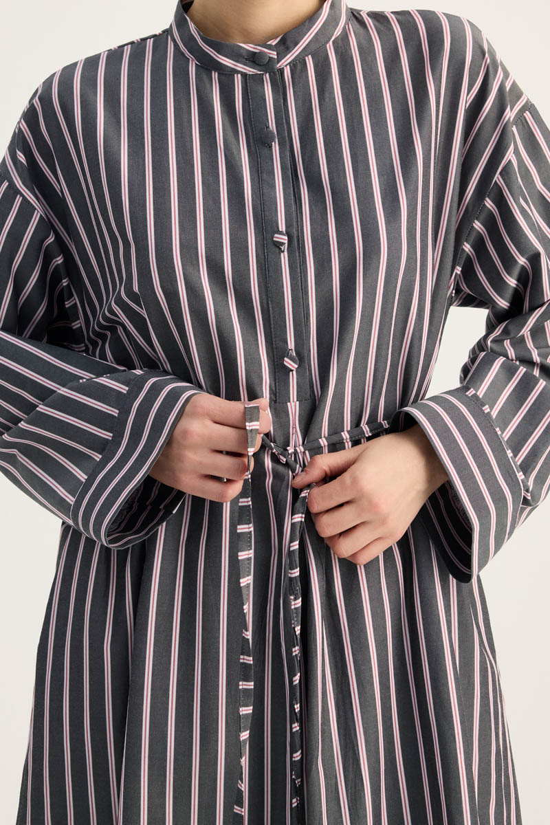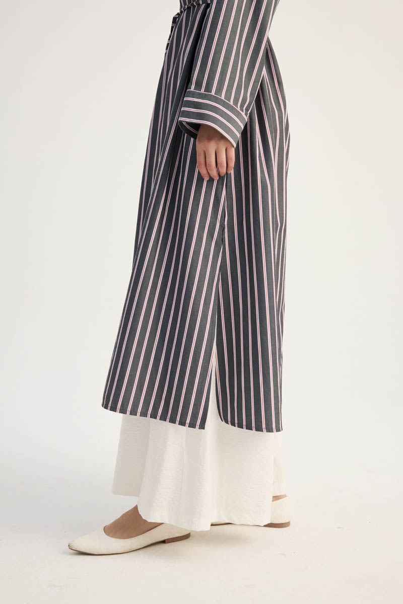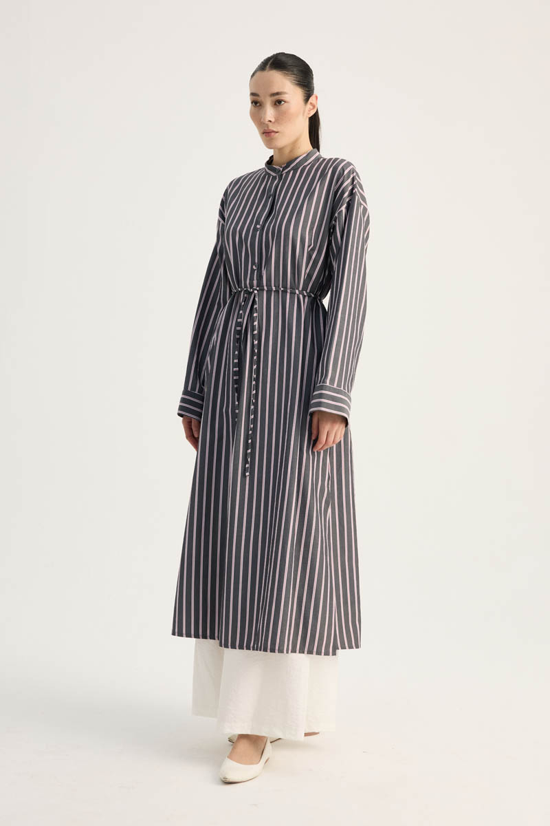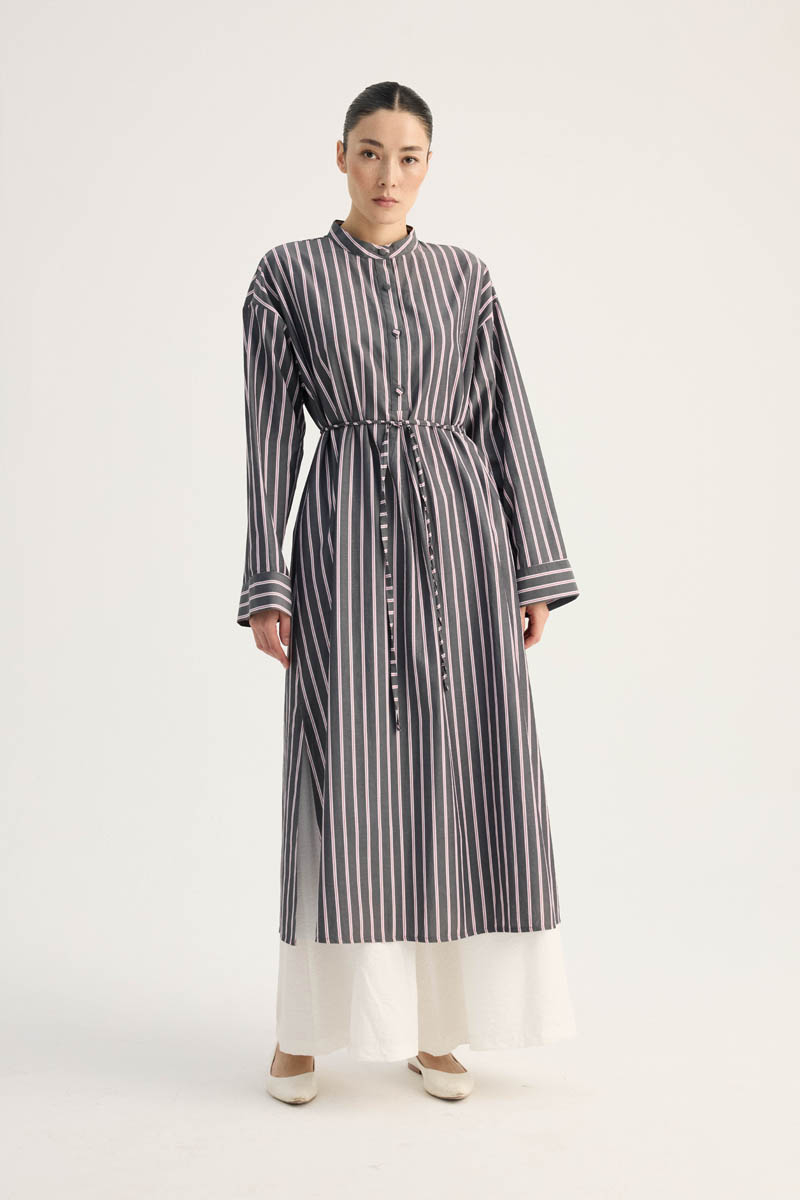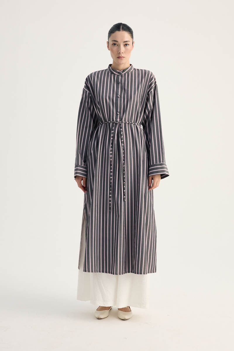 Çizgili Hakim Yaka Tunik Siyah