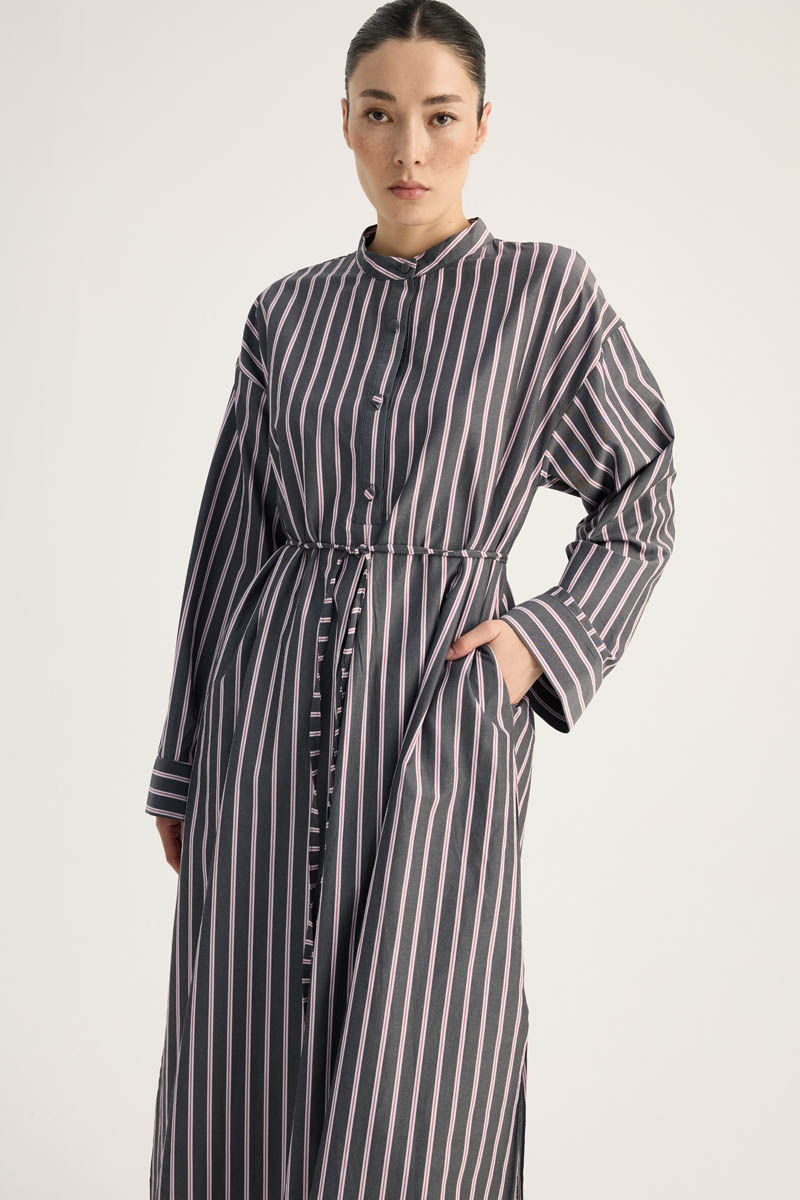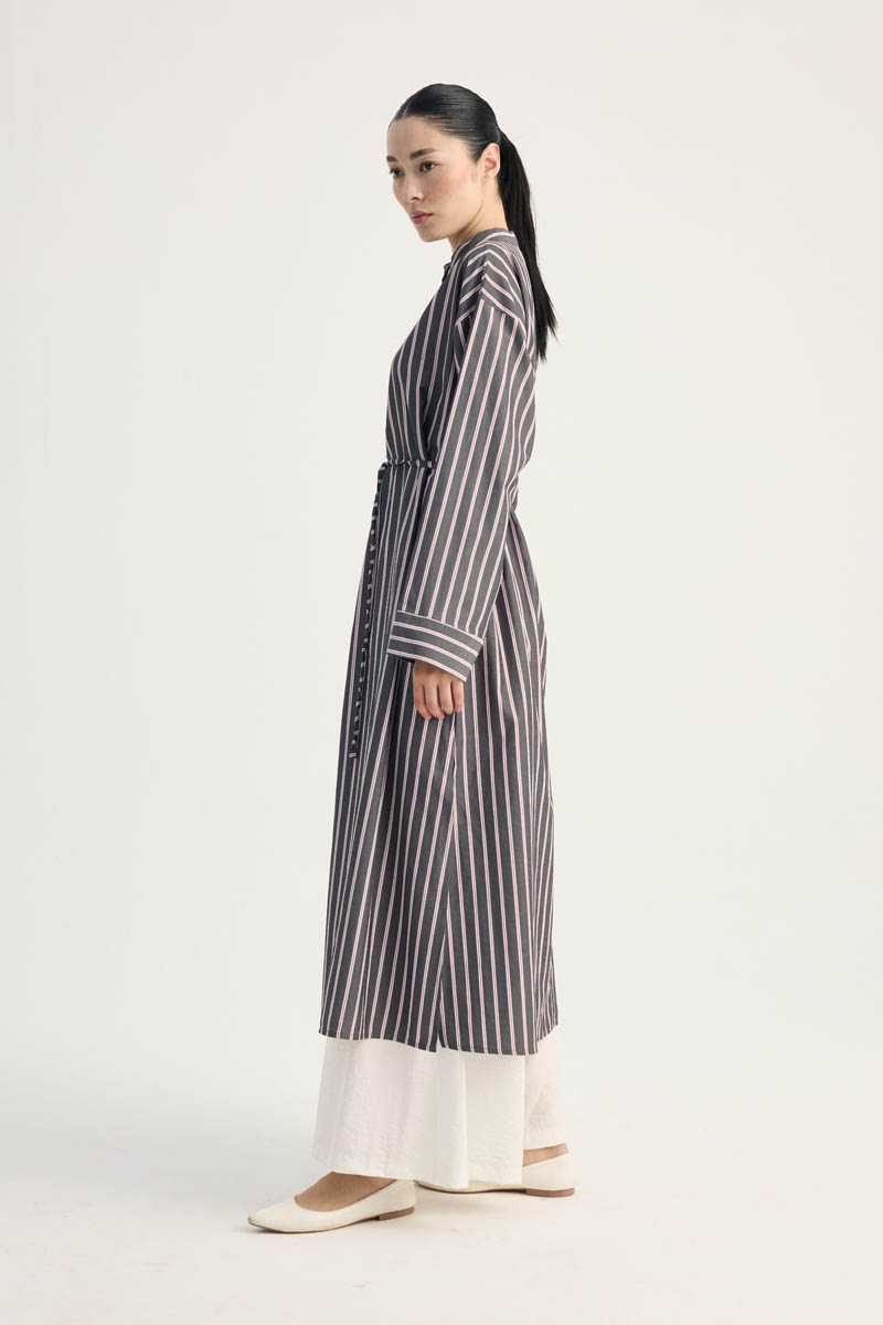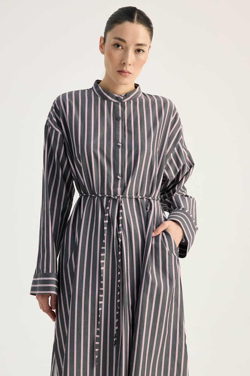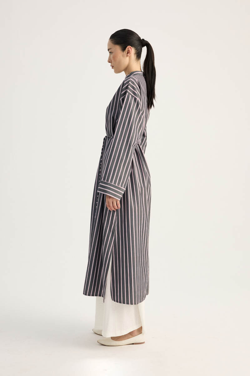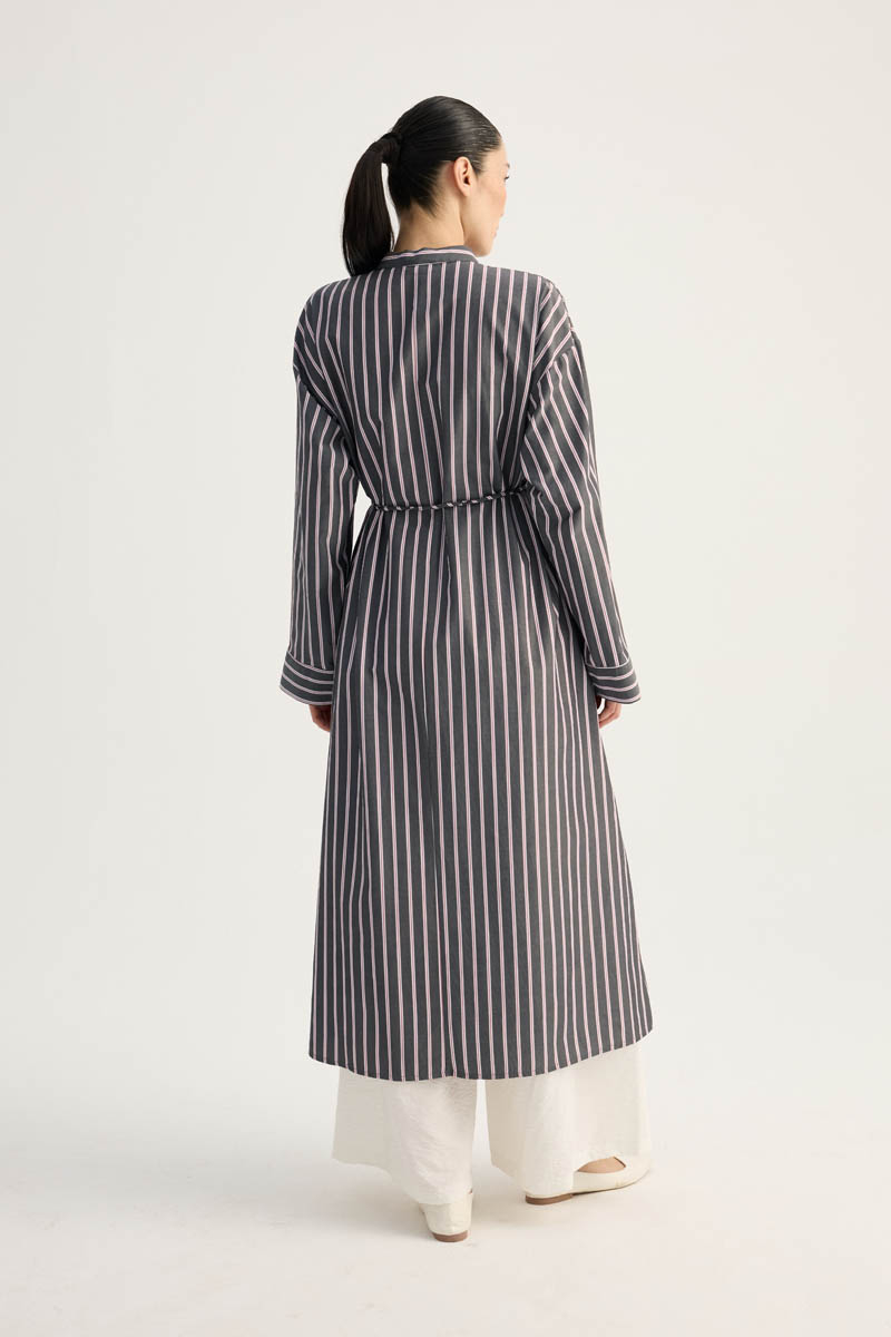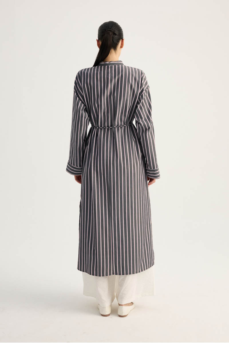 Çizgili Hakim Yaka Tunik Siyah