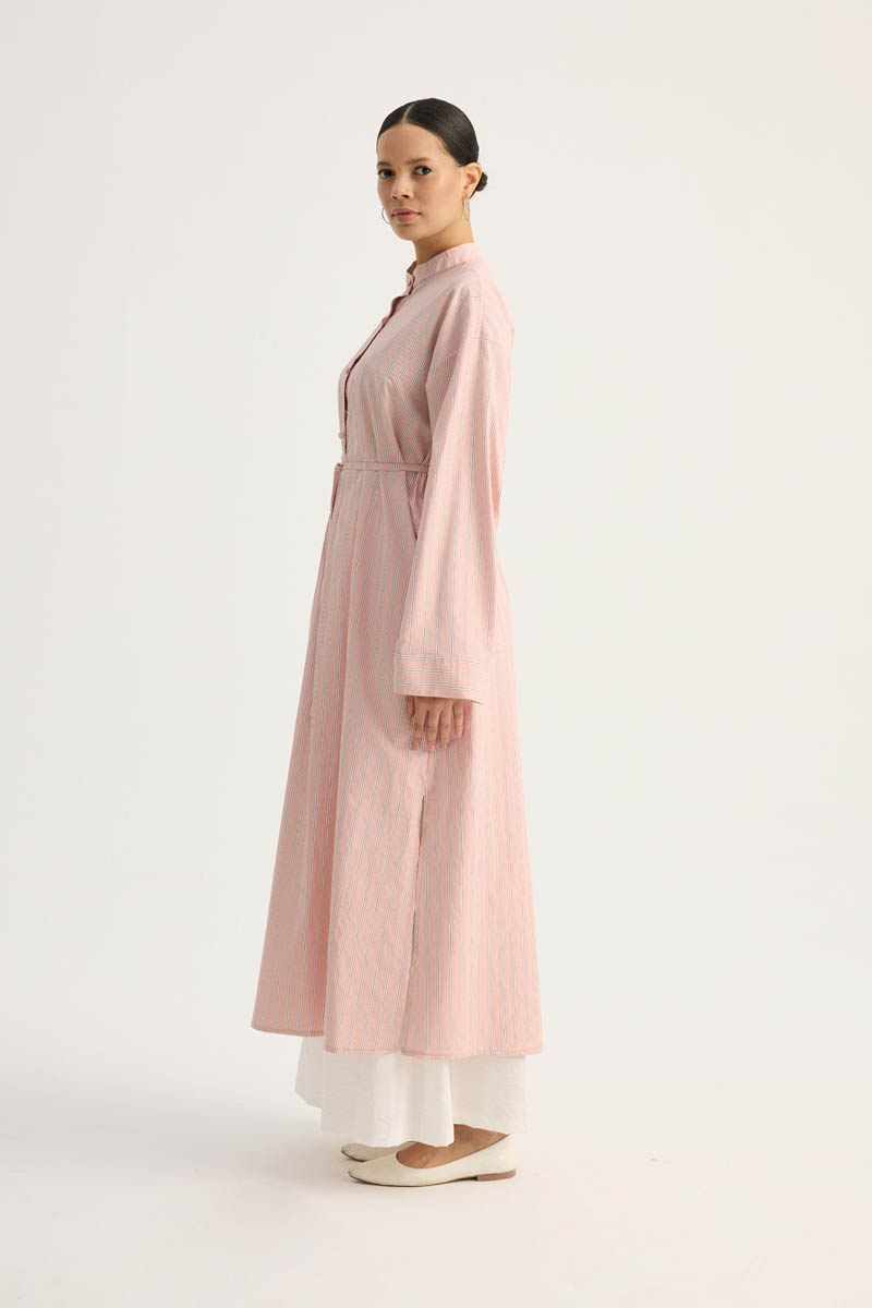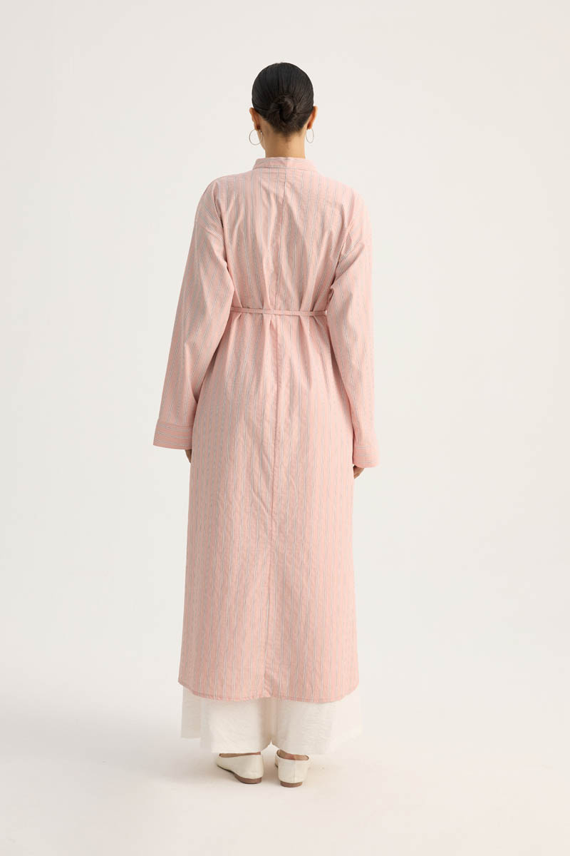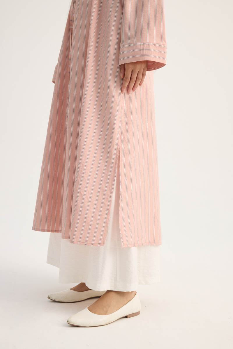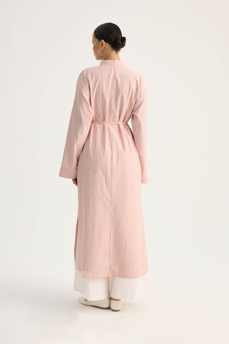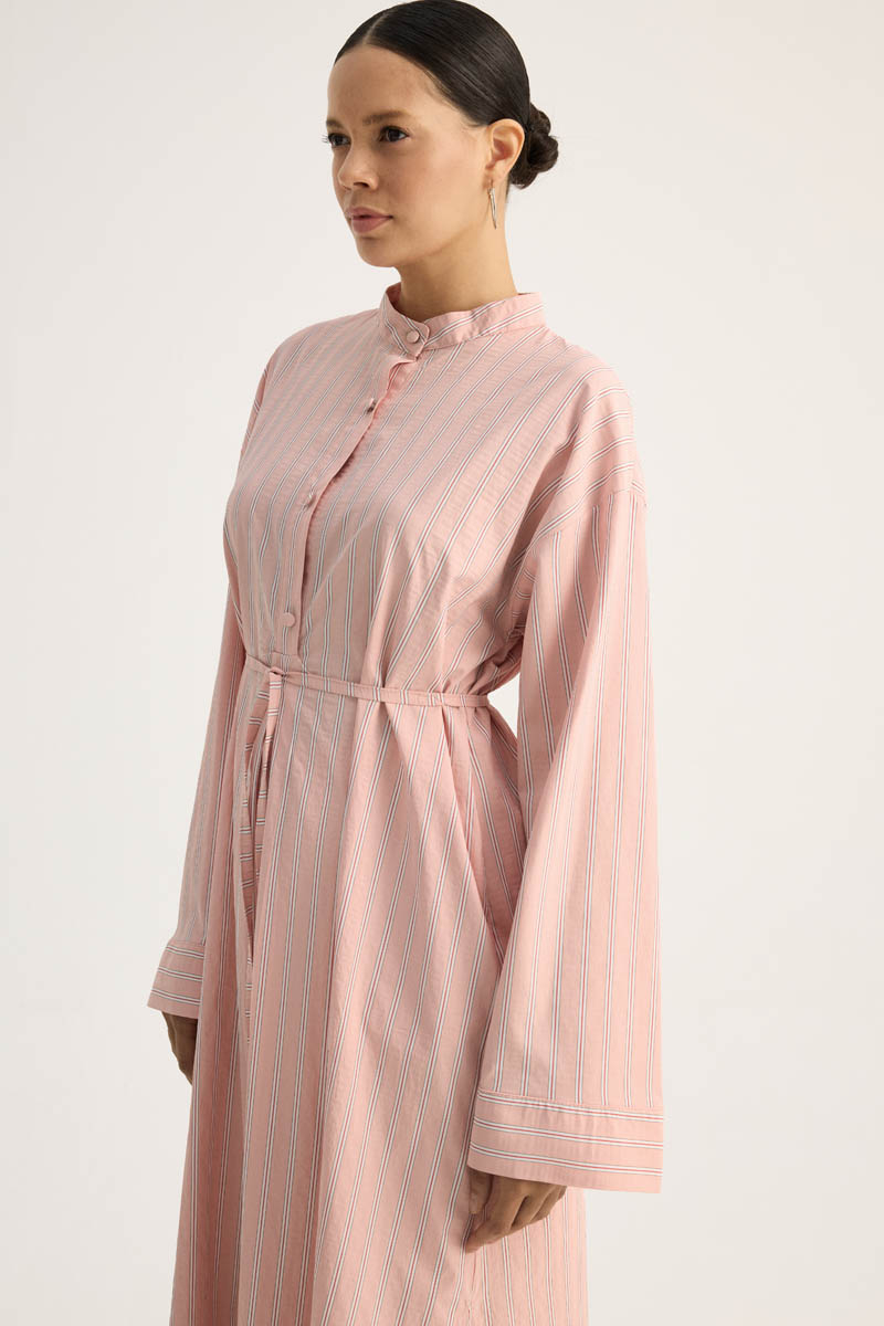Çizgili Hakim Yaka Tunik Toz Pembe