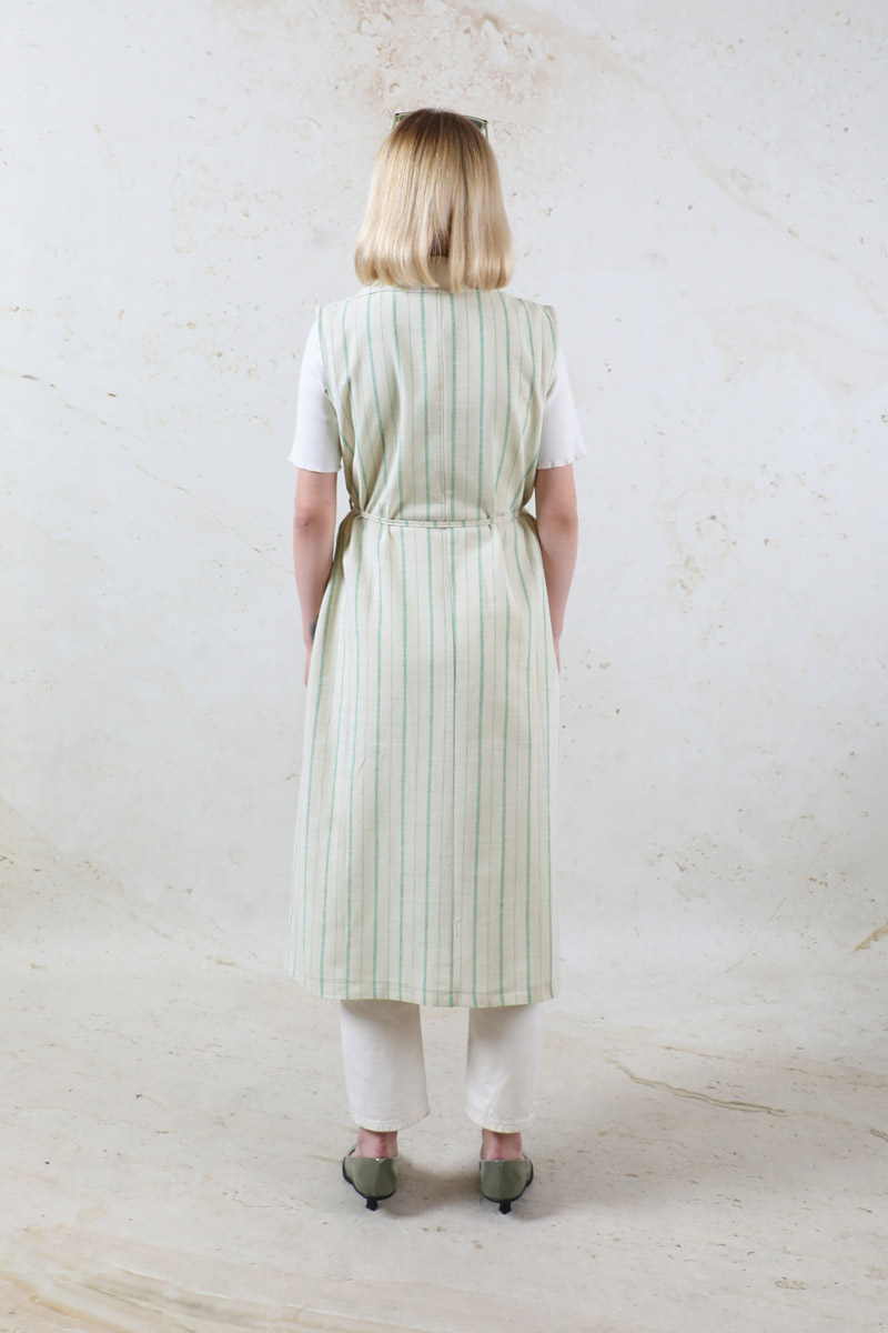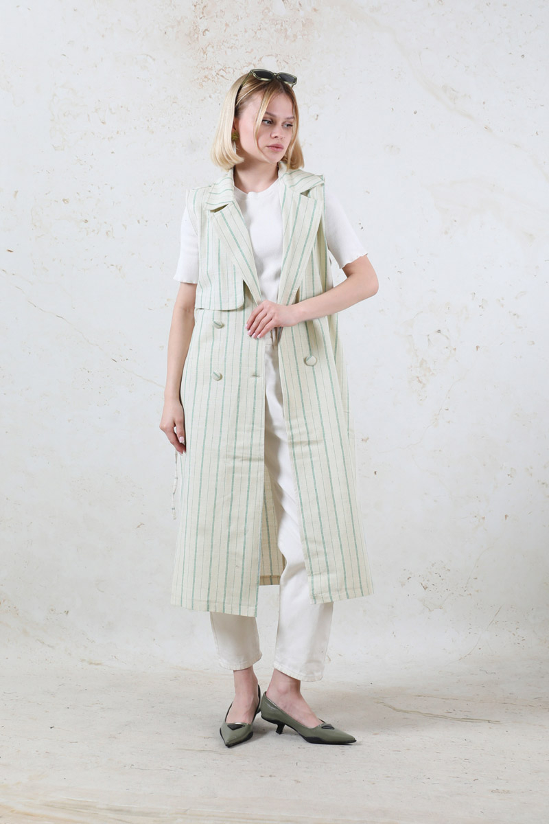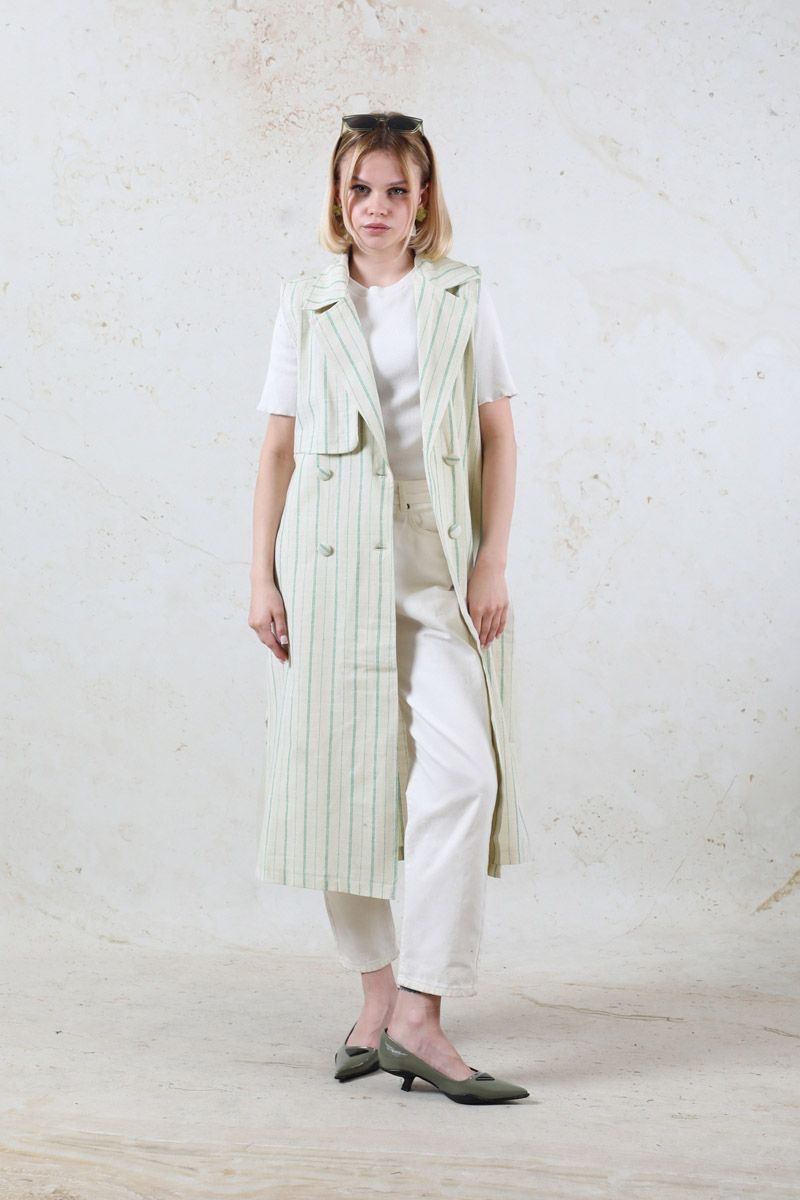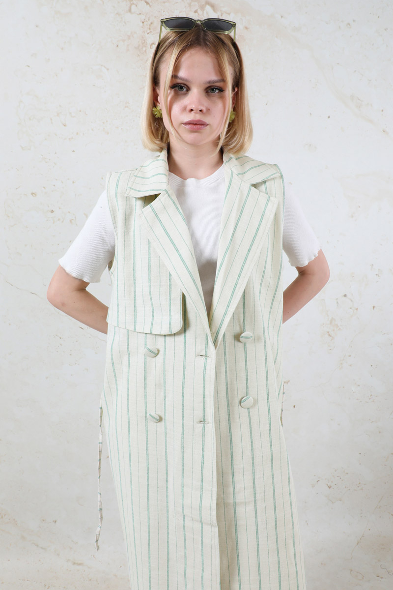 Çizgili Keten Yelek Mint