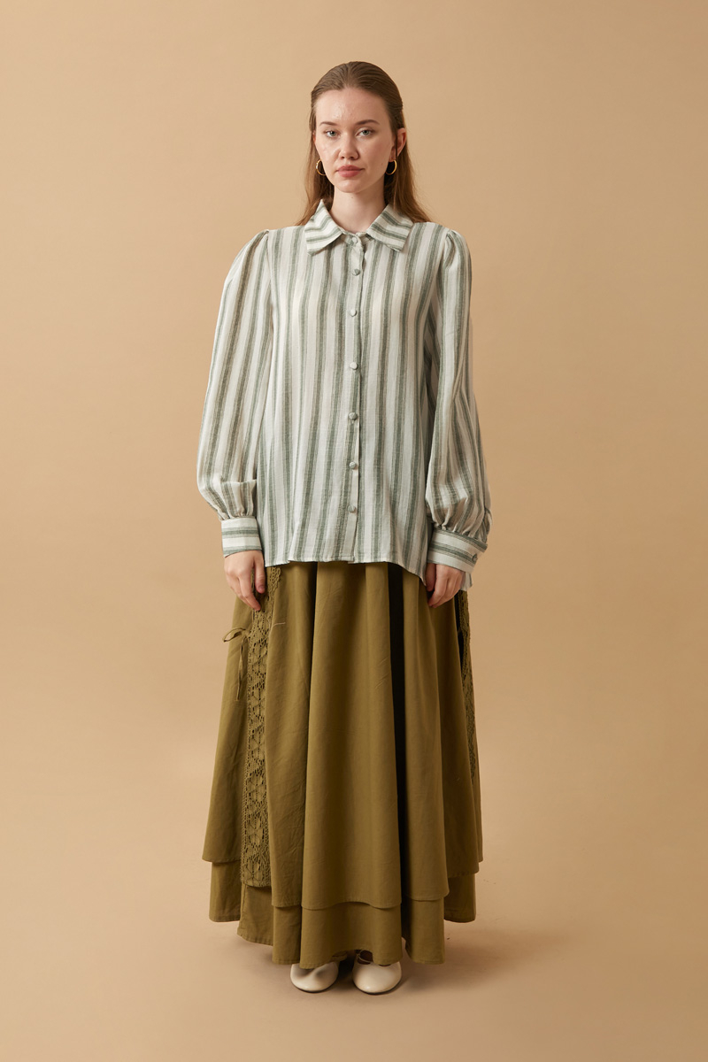 Çizgili Müslin Gömlek Haki