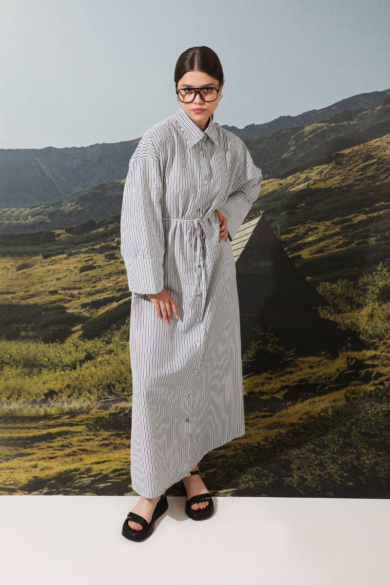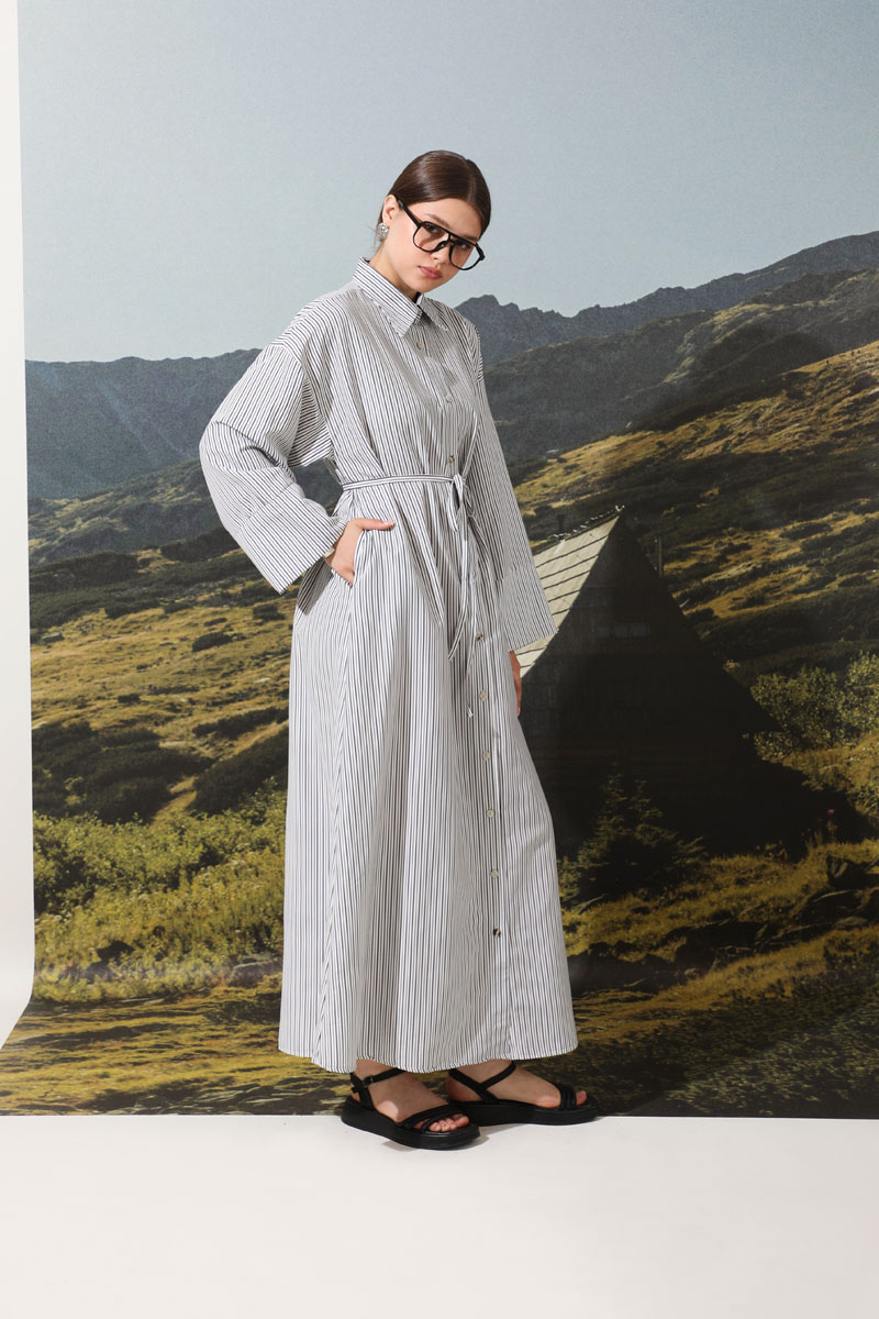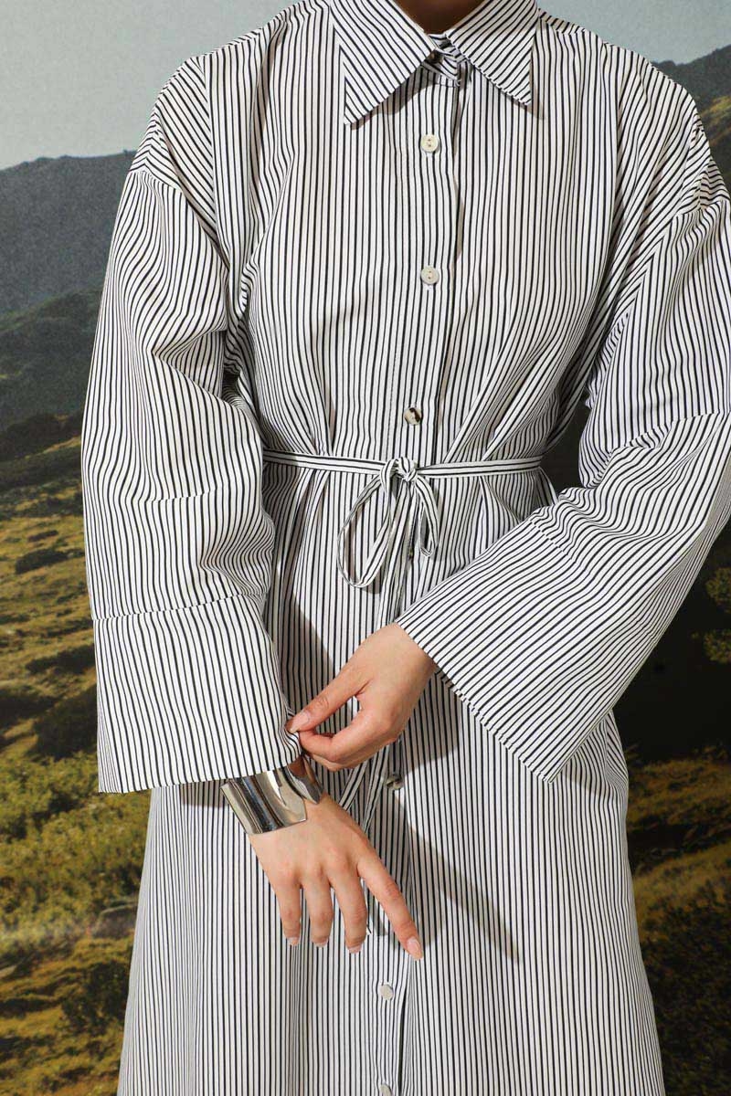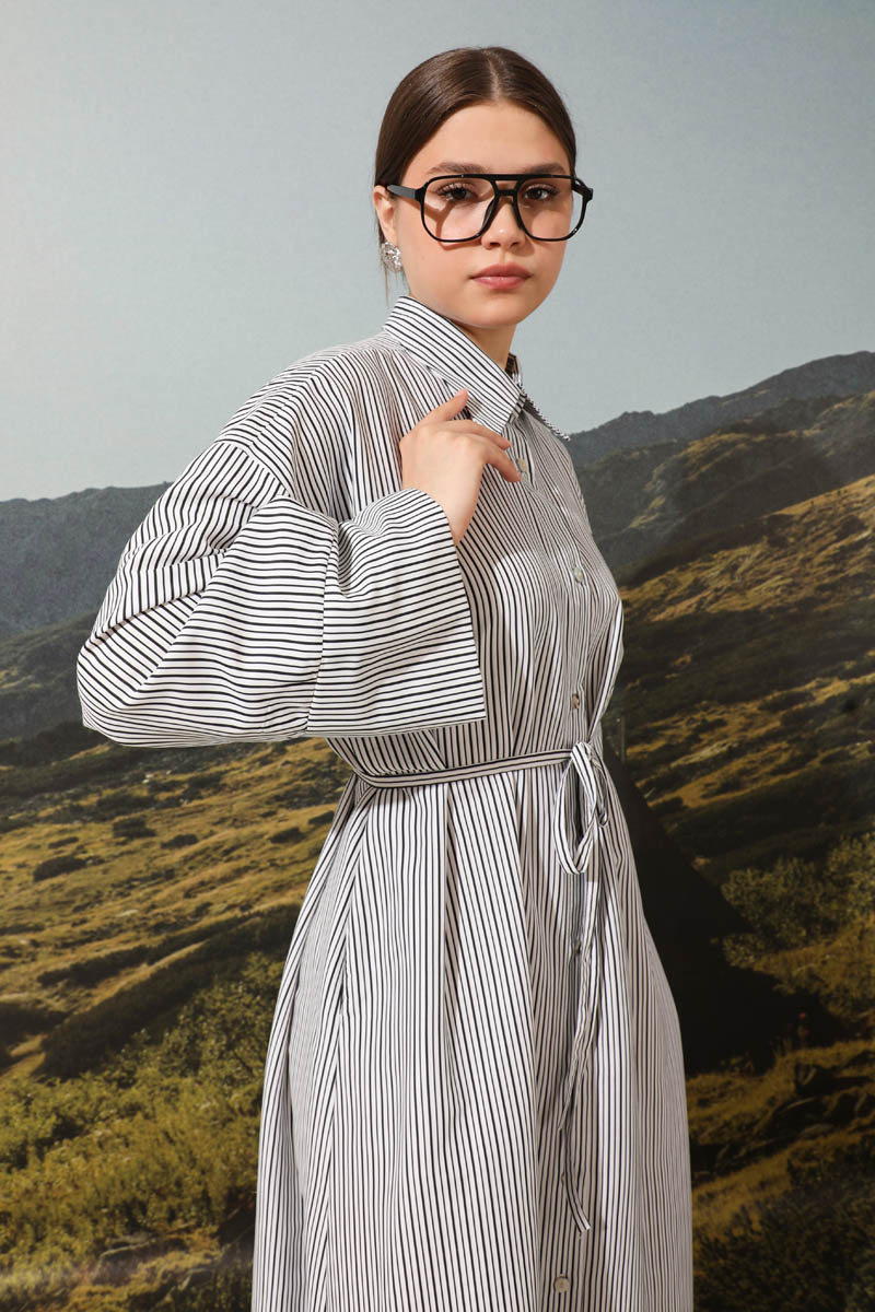 Çizgili Poplin Gömlek Elbise Siyah. Önden düğme detaylıdır. Günlük kullanım ve özel günlerinizde tercih edebilirsiniz.