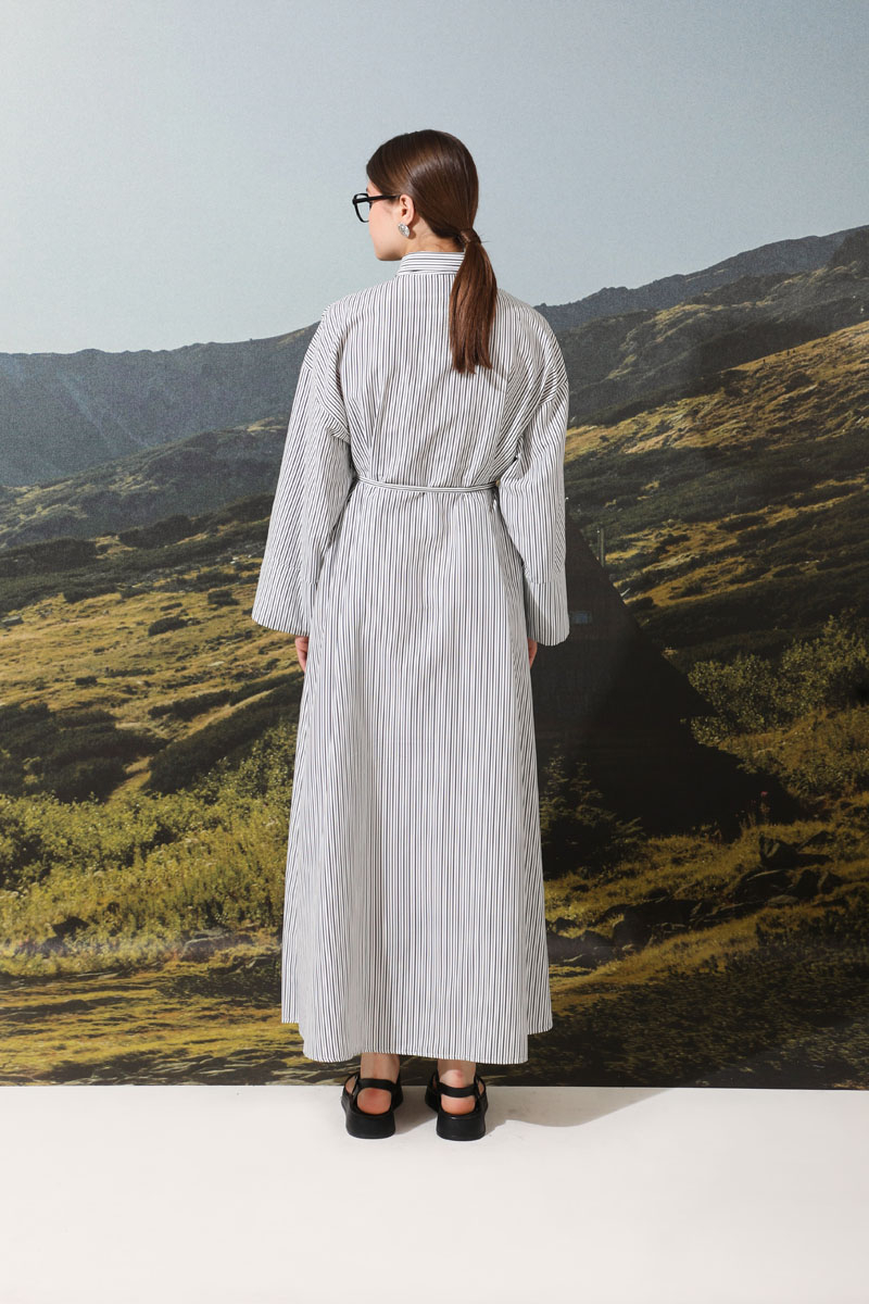 Çizgili Poplin Gömlek Elbise Siyah