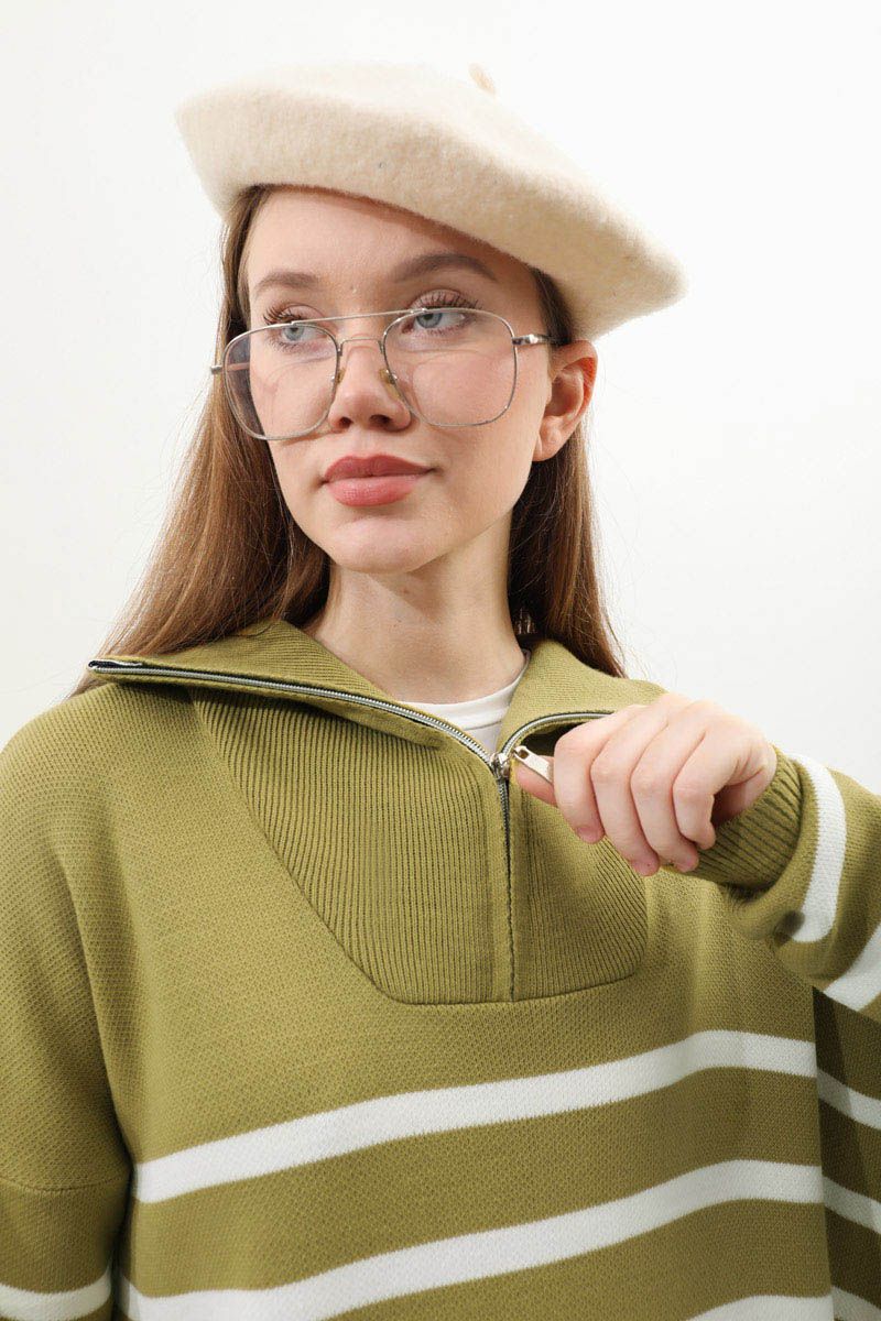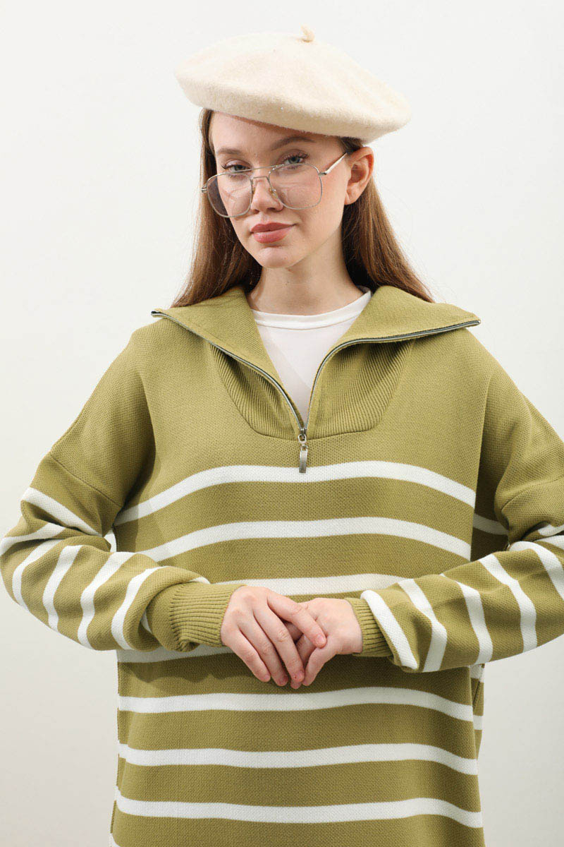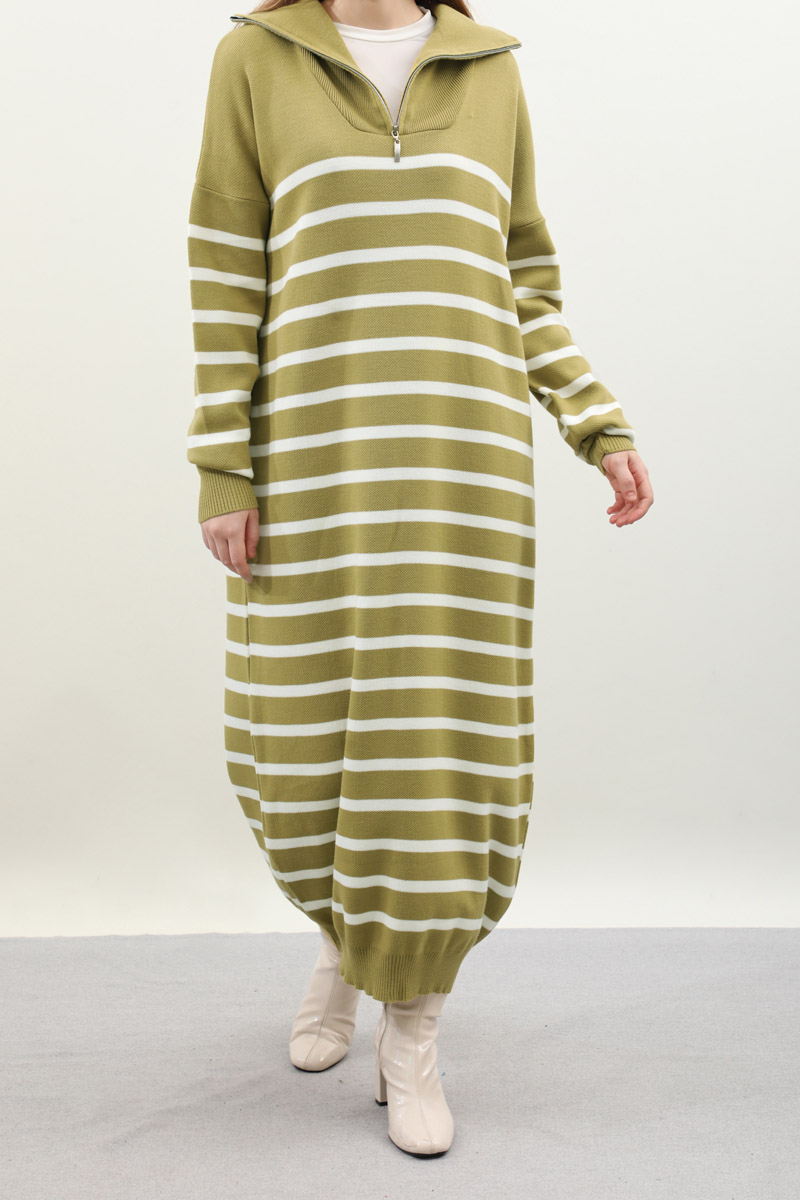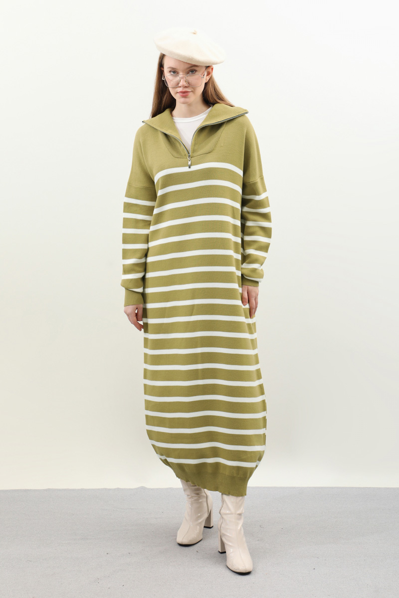 Çizgili Uzun Elbise Yağ Yeşili. Fermuar detaylı balıkçı yakadır, düşük kolludur, manşet ve etek ucu ribanalıdır. kollar ve bedeninde cizgi detaylıdır, cepsizdir, astarsızdır. Günlük kullanım ve özel günlerinizde tercih edebilirsiniz.
