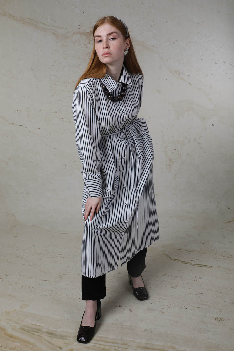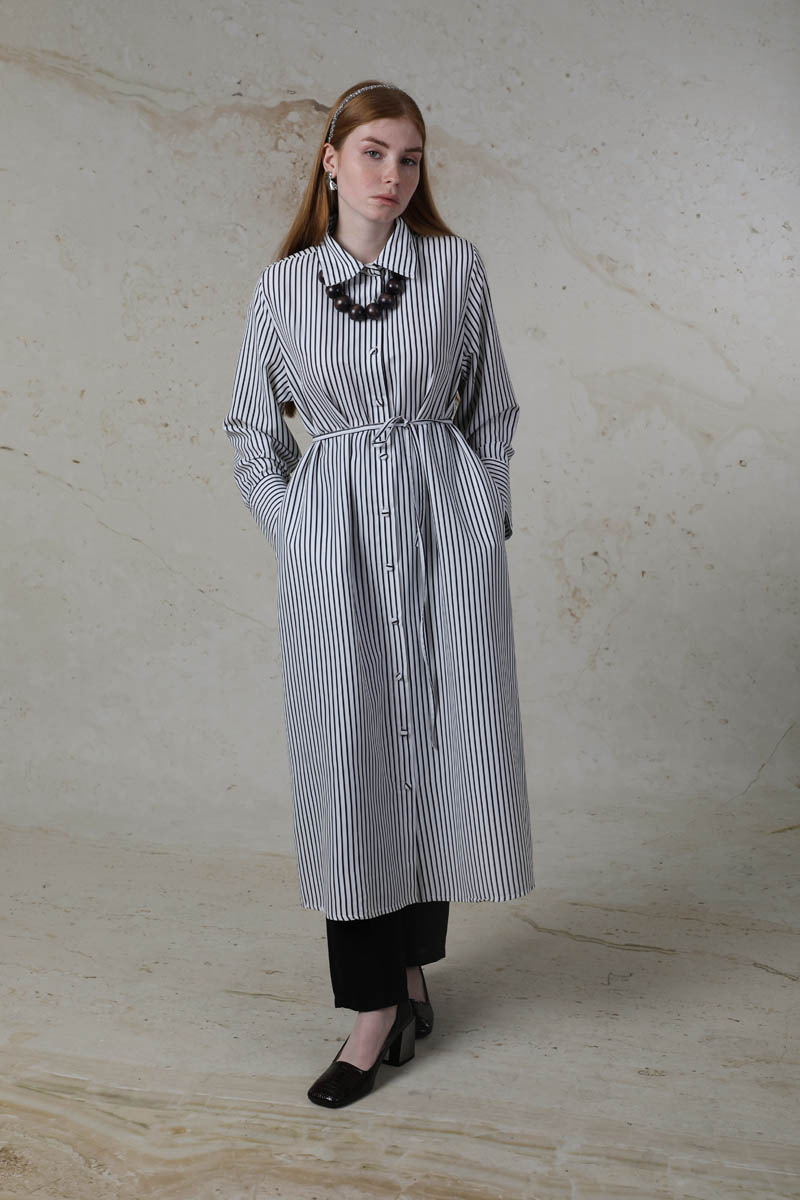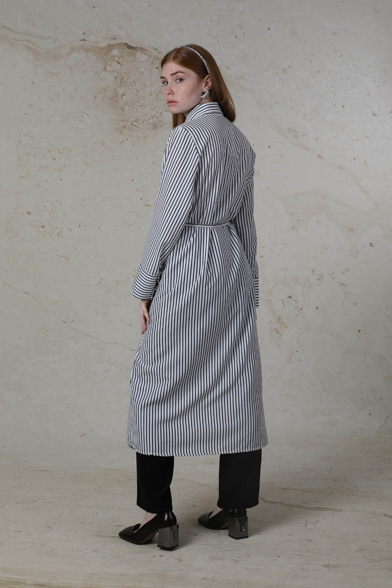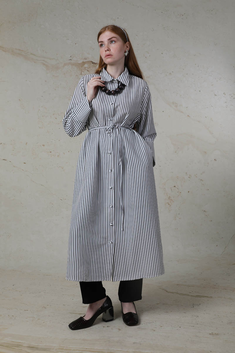 Çizgili Uzun Gömlek Tunik Siyah. Gömlek yakalıdır. Ceplidir. Geniş manşet detaylıdır. Kaplama düğmelidir. Belden bağlanılabilir biye detaylıdır. Günlük kullanım ve özel günlerinizde tercih edebilirsiniz.