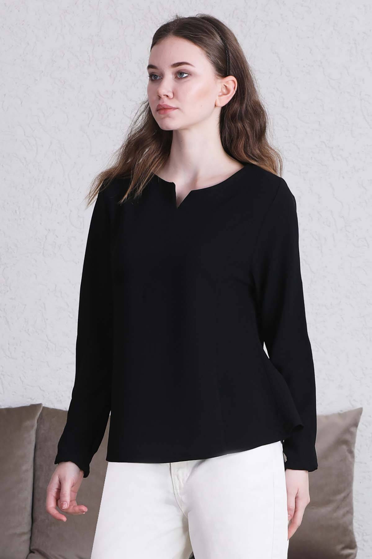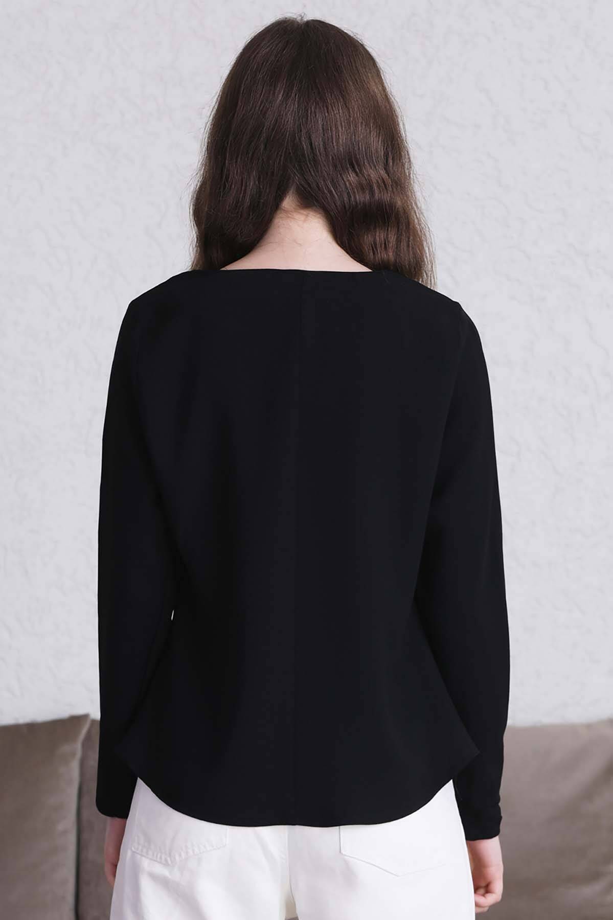 Classic Blouse Black. It has a drop detail stitching on the collar. You can choose it over skirts and trousers. Comfortable Mold.