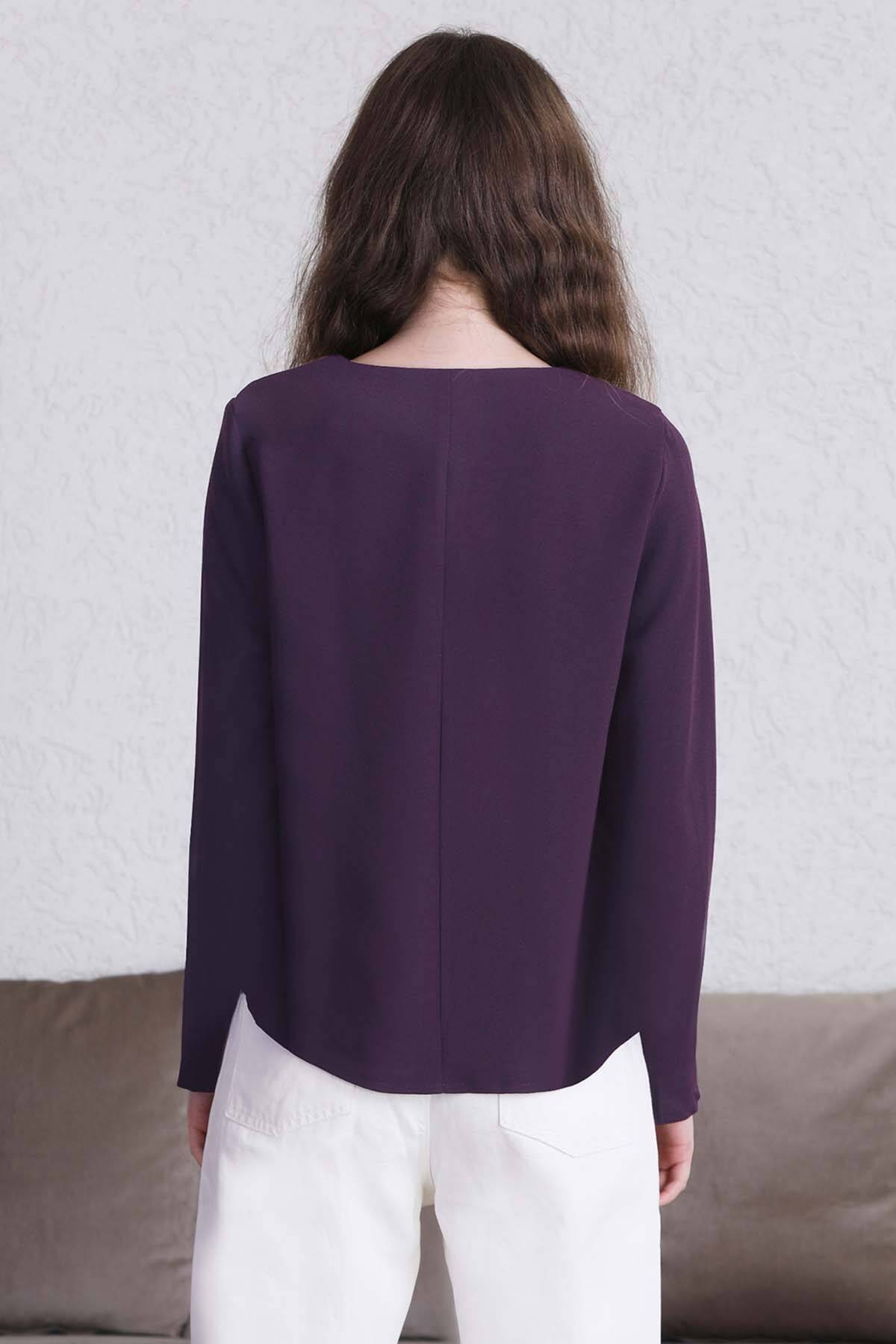Classic Blouse Purple. It has a drop detail stitching on the collar. You can choose it over skirts and trousers. Comfortable Mold.