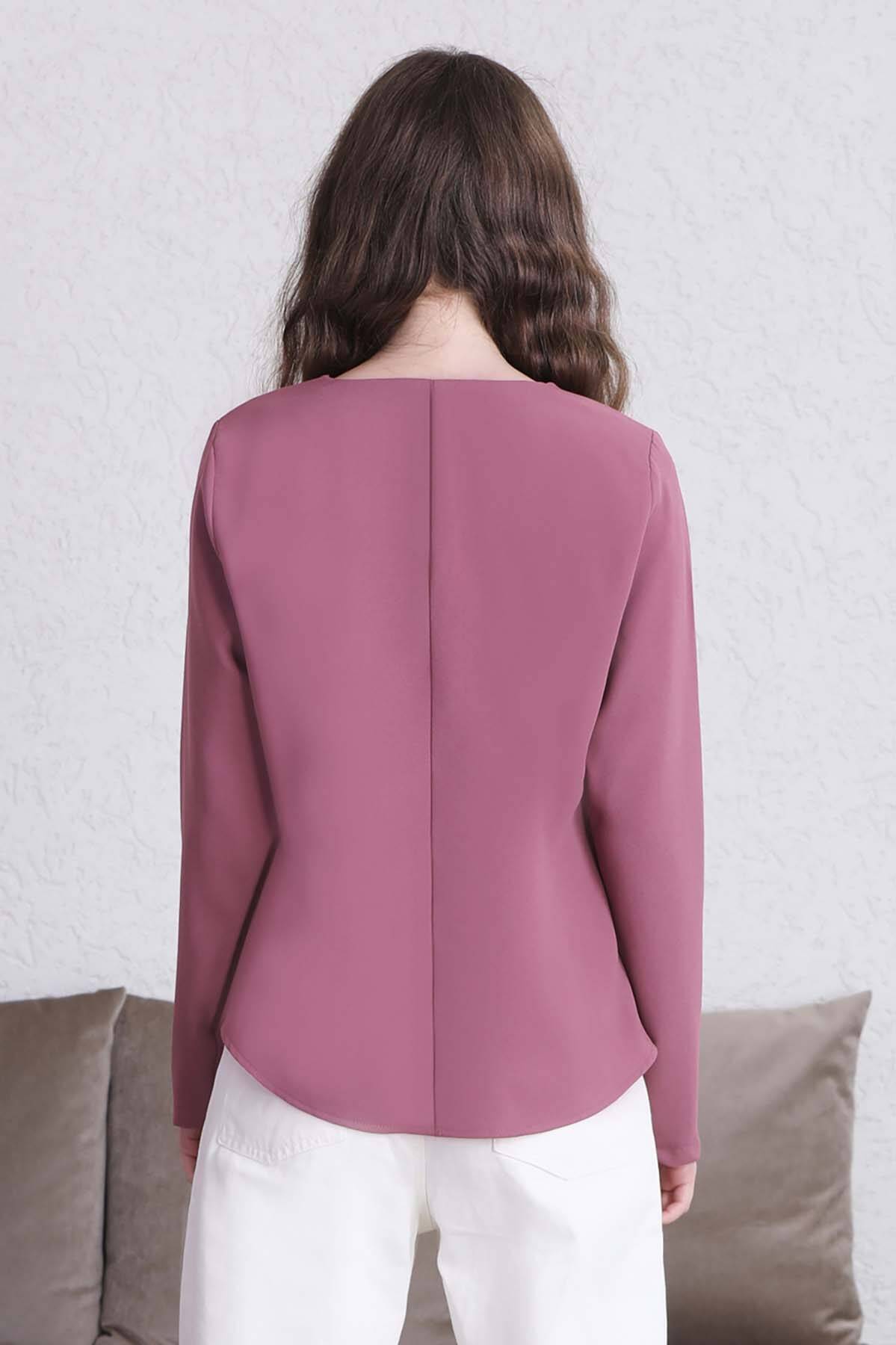 Classic Blouse Dried Rose. It has a drop detail stitching on the collar. You can choose it over skirts and trousers. Comfortable Mold.