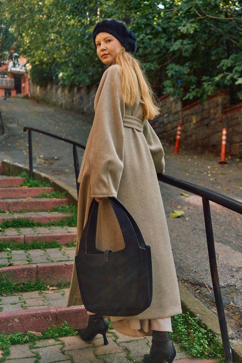 Coat with Dart Detail Stone reflects a refined urban elegance with its clean lines and structured silhouette. The raglan sleeve form and high collar add a modern touch, while the front dart seams subtly shape the body. Made from a dense yet soft-textured fabric, it provides warmth throughout the winter. With its classic cut, it easily complements both casual and formal looks.