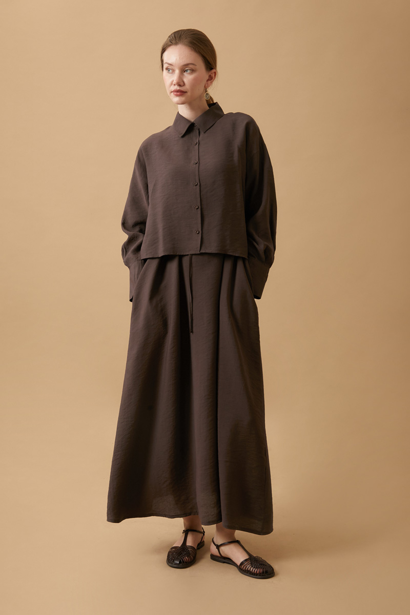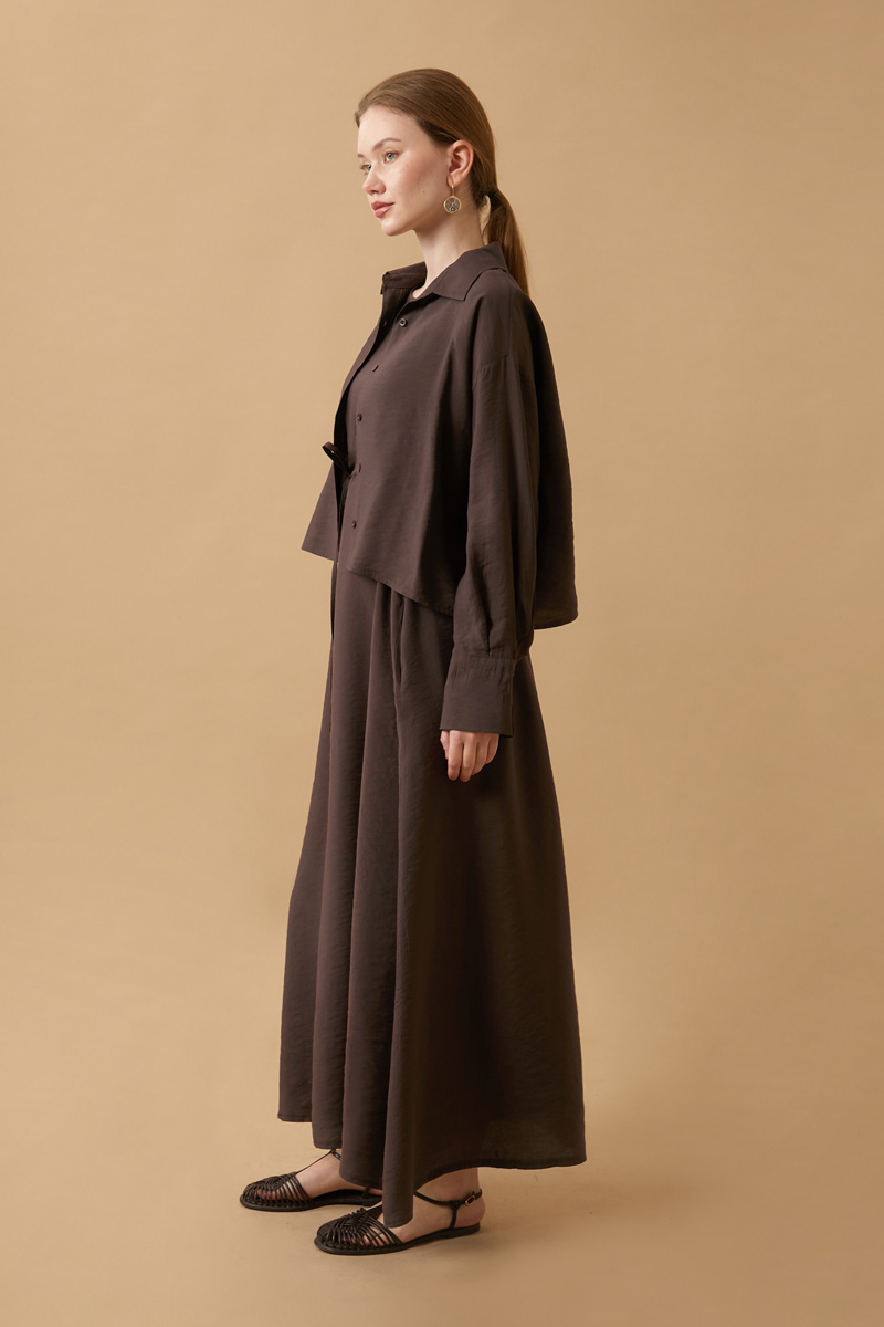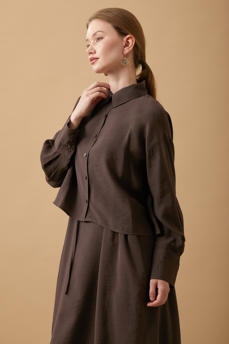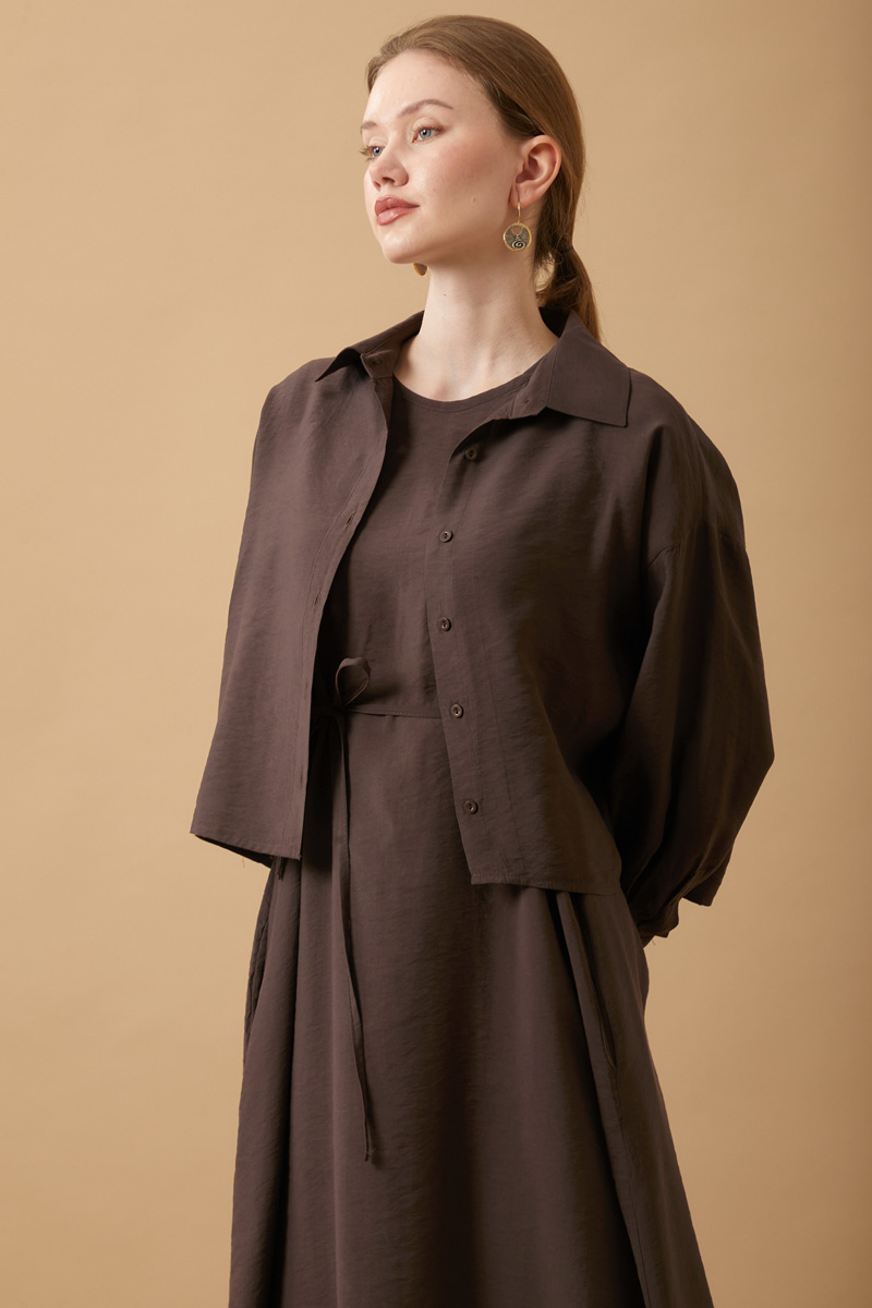 Crop Gömlekli Elbise Kahverengi