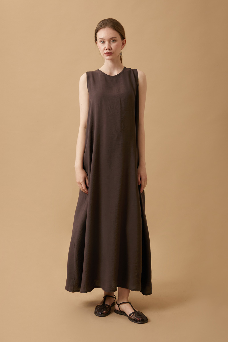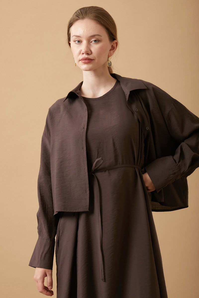 Crop Gömlekli Elbise Kahverengi