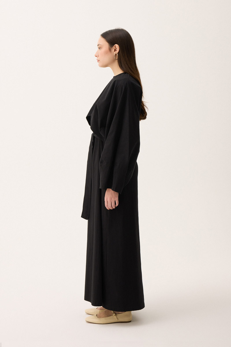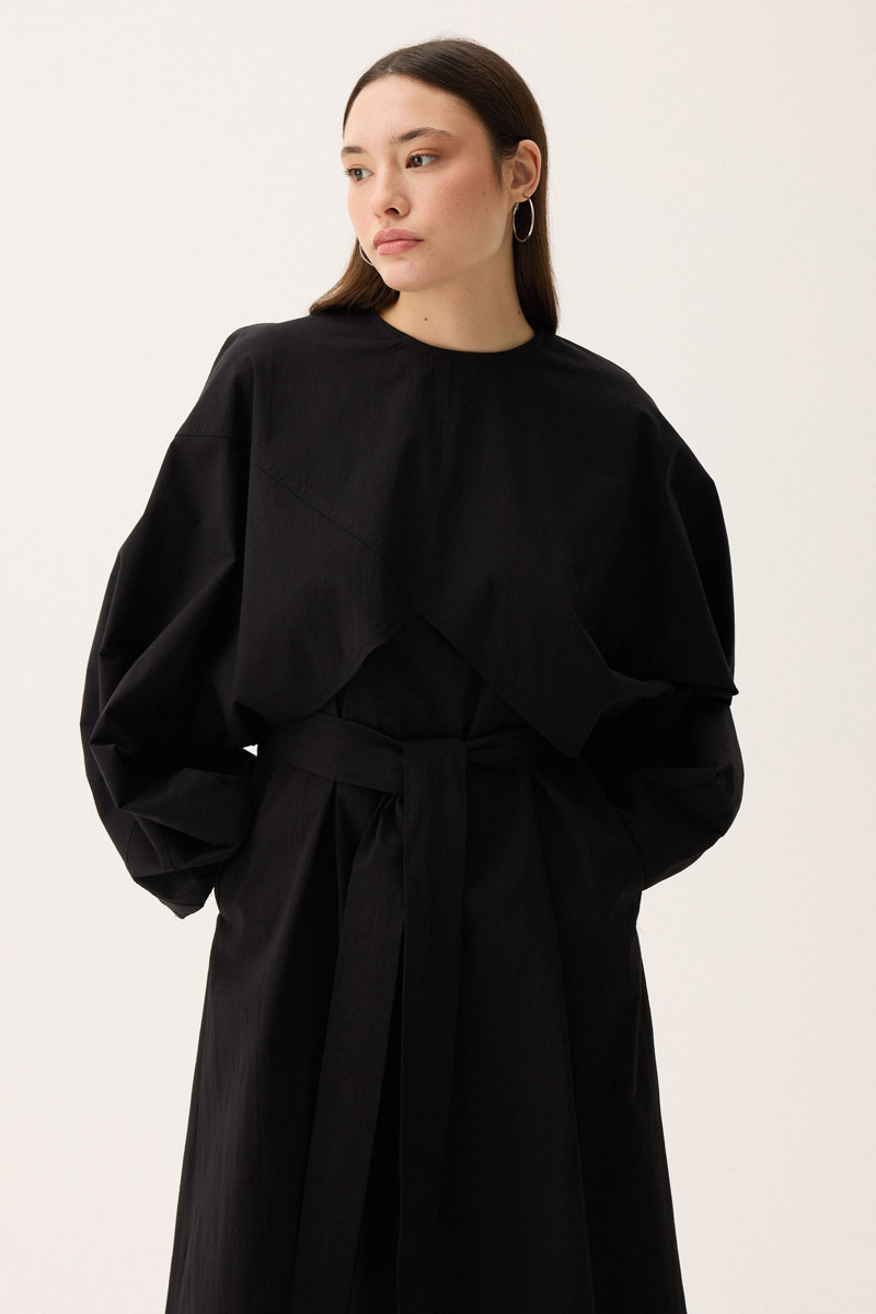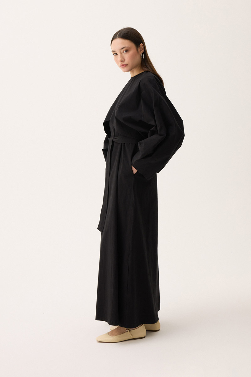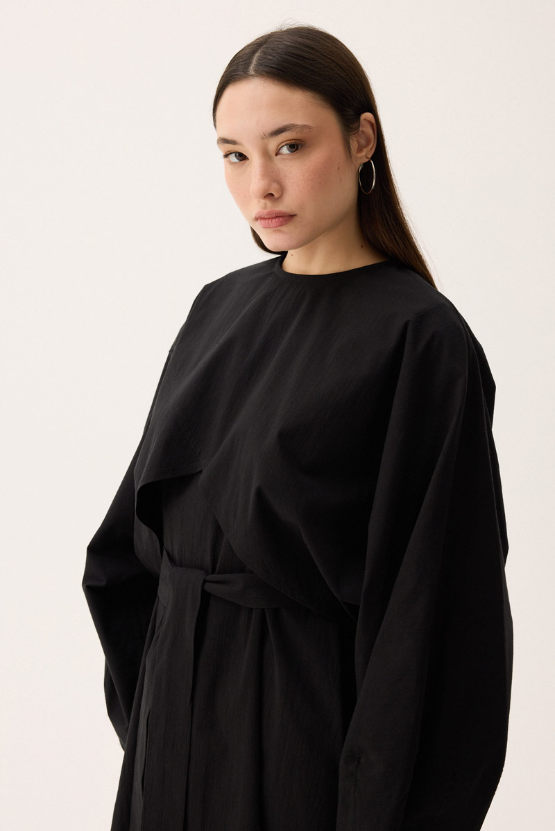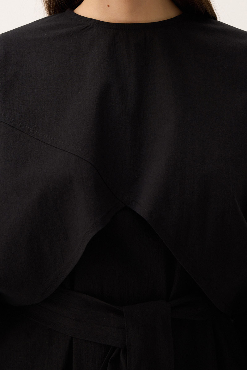 Croplu Elbise Takım Siyah. Crop bisiklet yakadır, düşük omuzludur, yandan cepli ve astarsızdır, iç jiledir, dış crop elbise takım kol ucu pens detaylı beli kusakli bol kalıptır, Günlük kullanım için uygundur.
