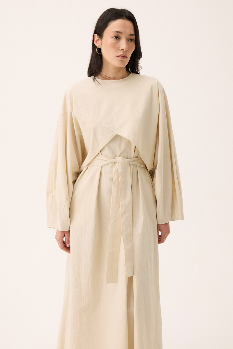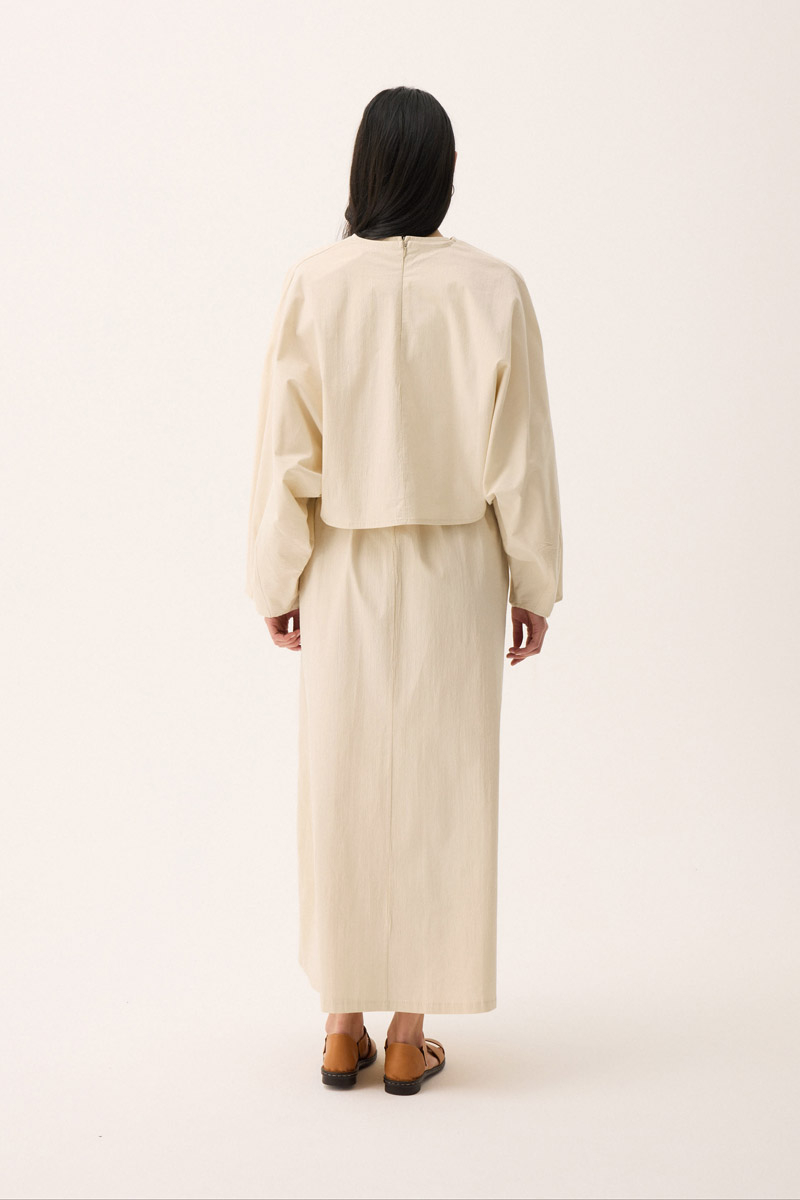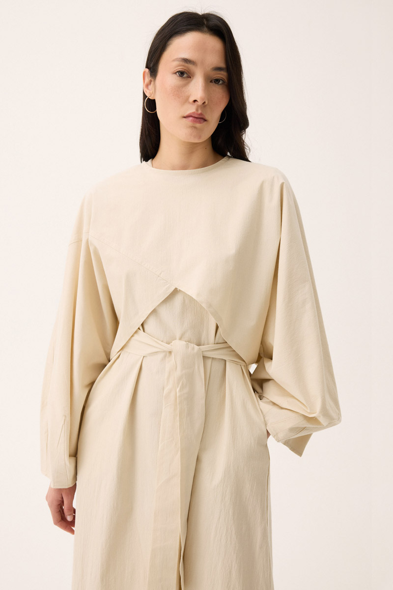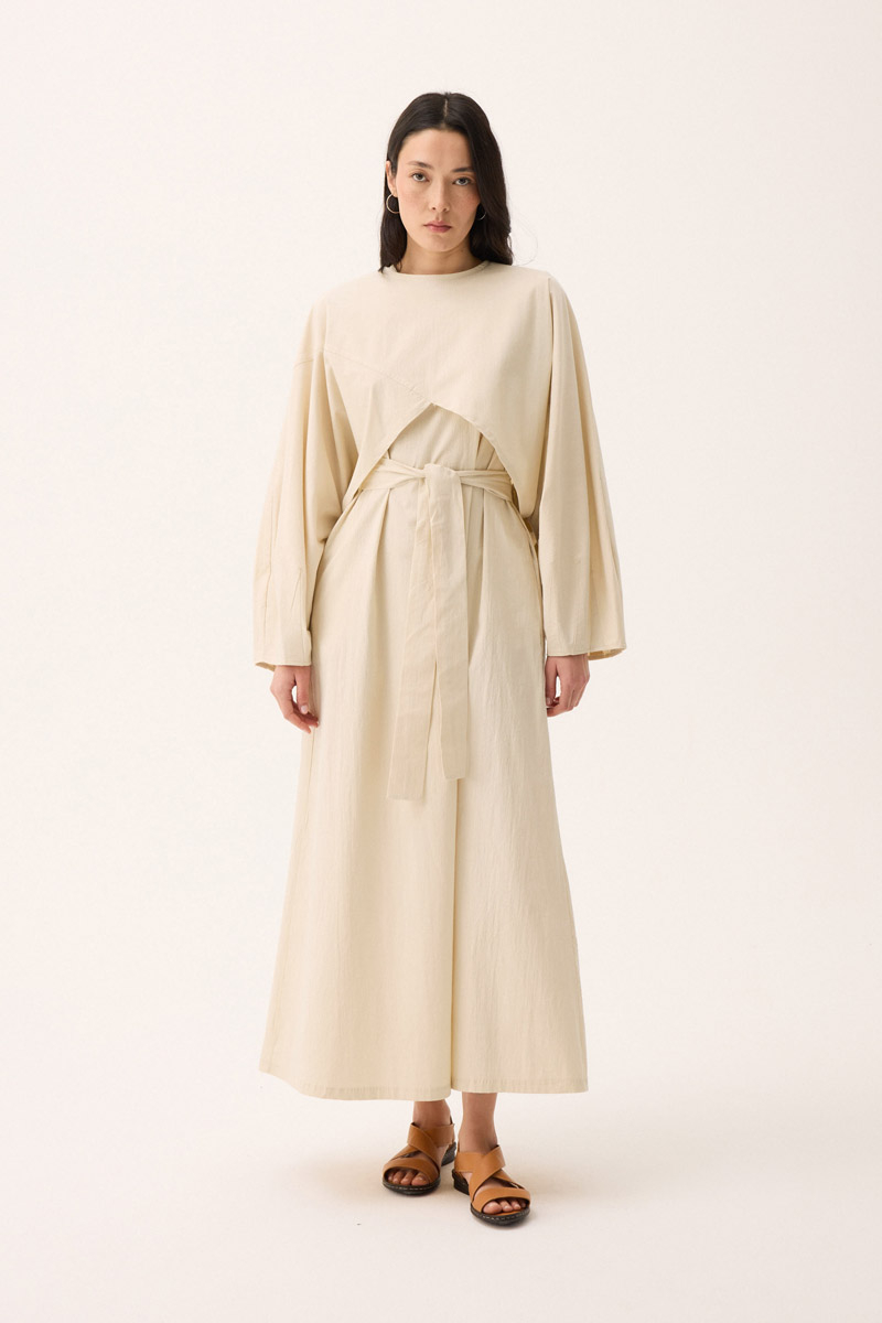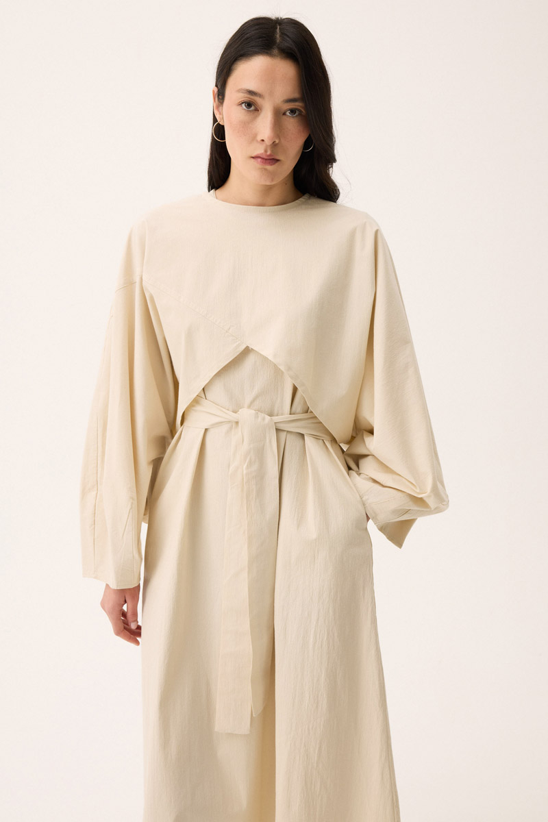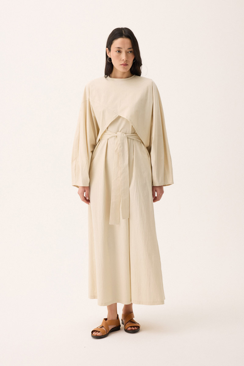 Croplu Elbise Takım Taş. Crop bisiklet yakadır, düşük omuzludur, yandan cepli ve astarsızdır, iç jiledir, dış crop elbise takım kol ucu pens detaylı beli kusakli bol kalıptır, Günlük kullanım için uygundur.