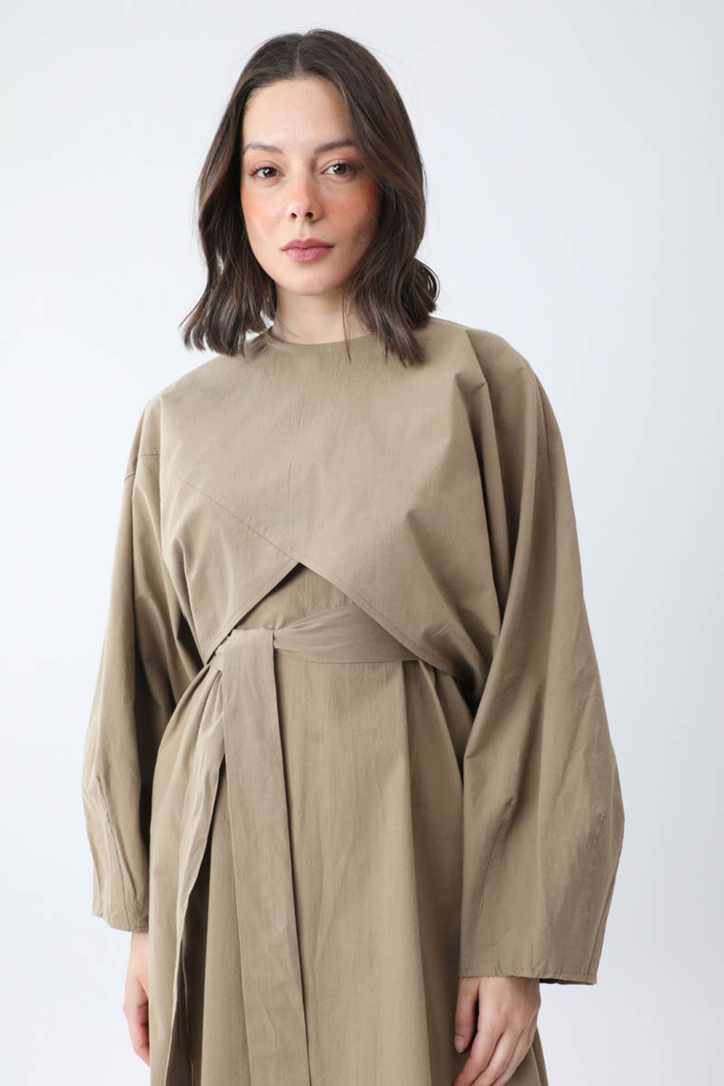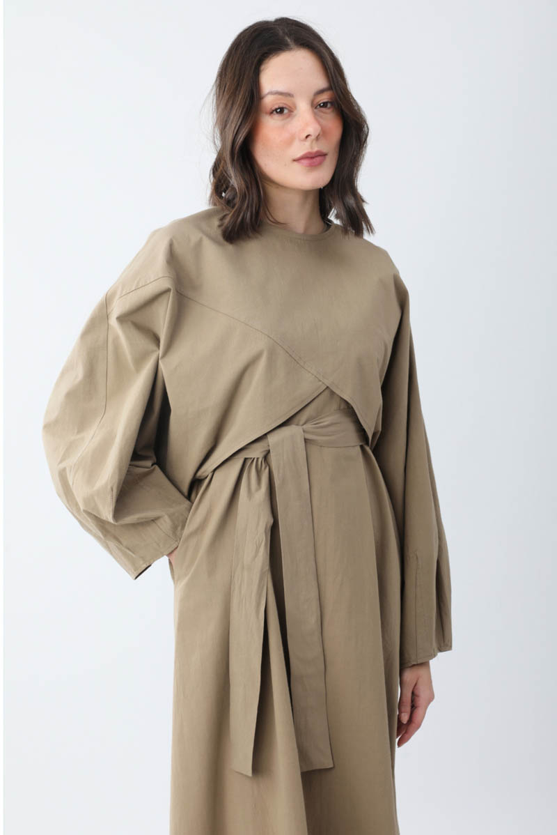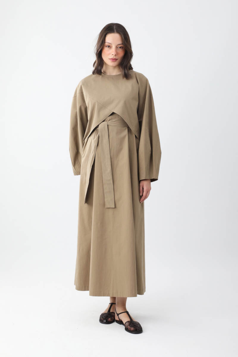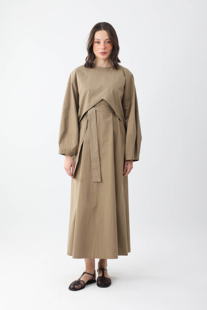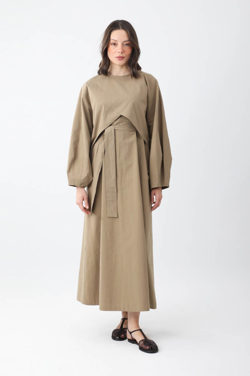 Croplu Elbise Takım Vizon