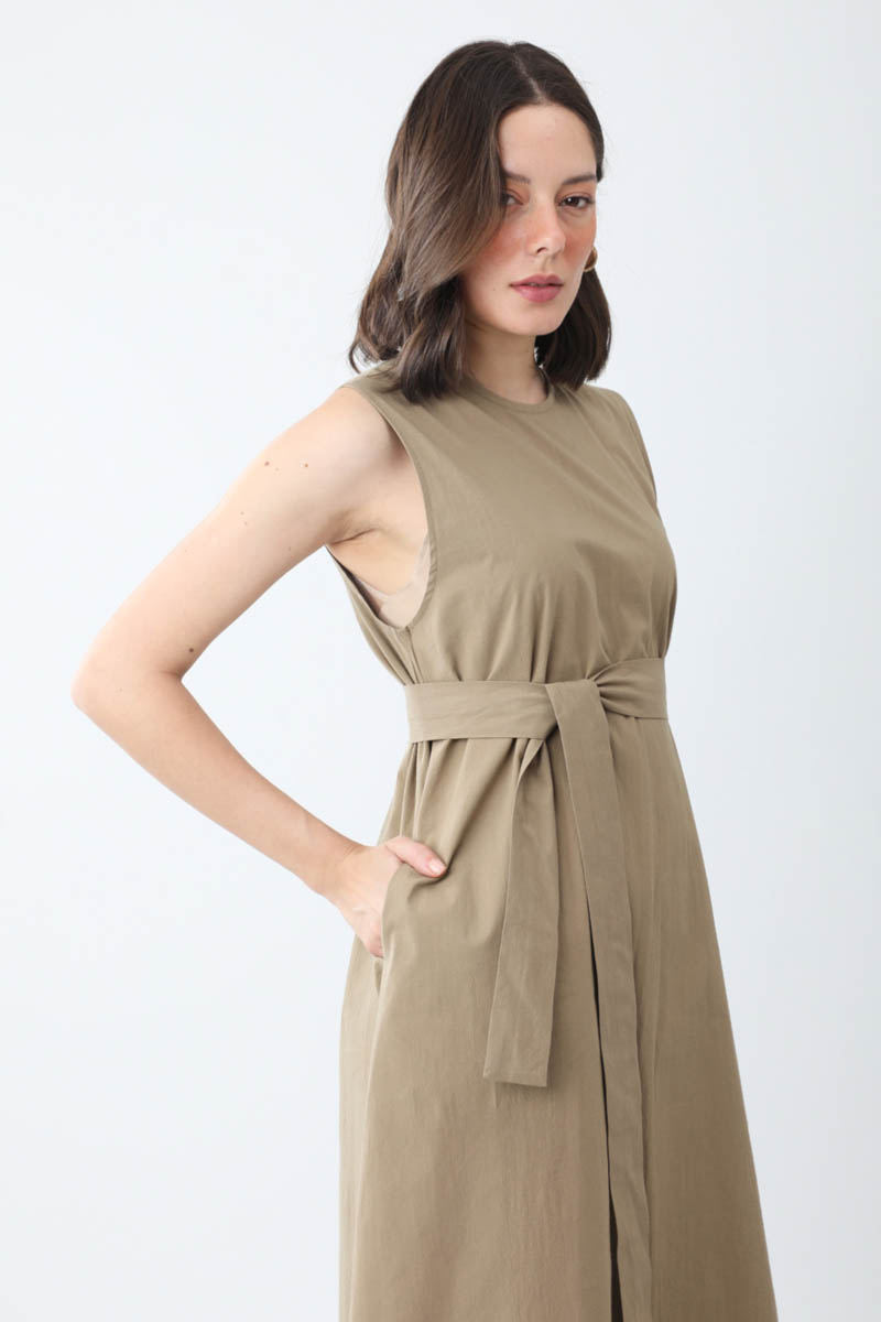 Croplu Elbise Takım Vizon. Crop bisiklet yakadır, düşük omuzludur, yandan cepli ve astarsızdır, iç jiledir, dış crop elbise takım kol ucu pens detaylı beli kusakli bol kalıptır, Günlük kullanım için uygundur.